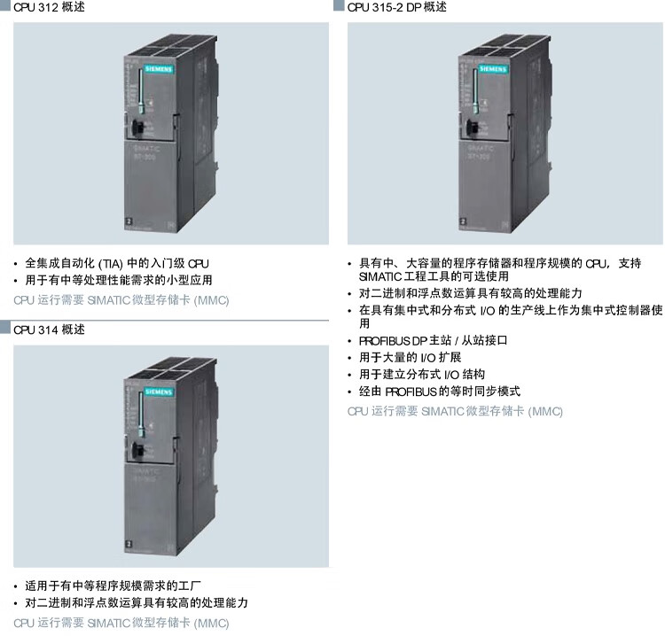 Siemens SIMATIC S7-300 CPU 312/313/314/315/317C-2PtP/DP CPU 313C 6ES7313-5BG04-2