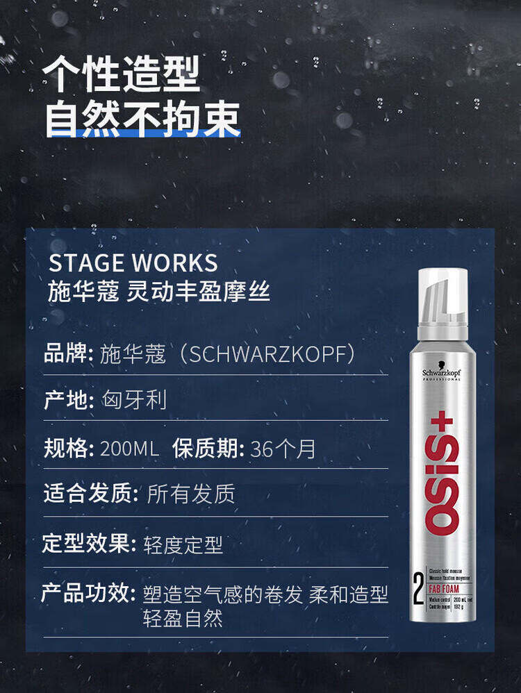 Schwarzkopf Professional Schwarzkopf Foam Hair Wax No. 4 Mousse Men and women favor curly hair elastin wet hair care Schwarzkopf No. 4 Mousse 200ml