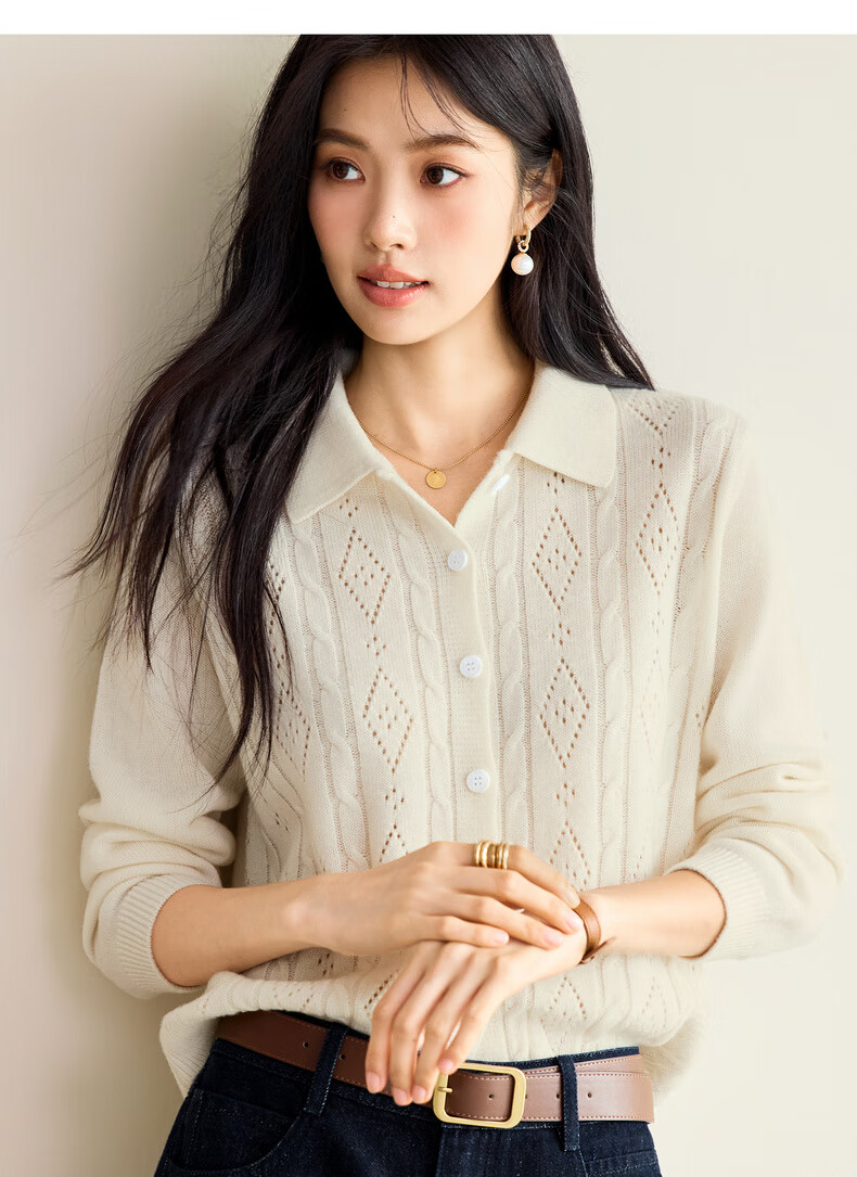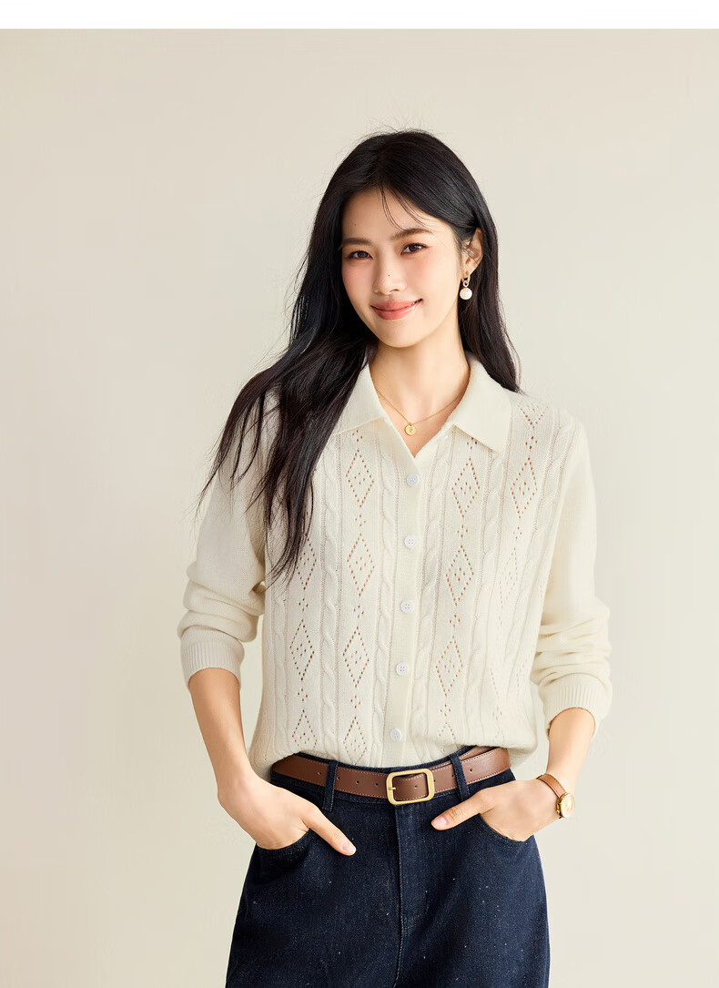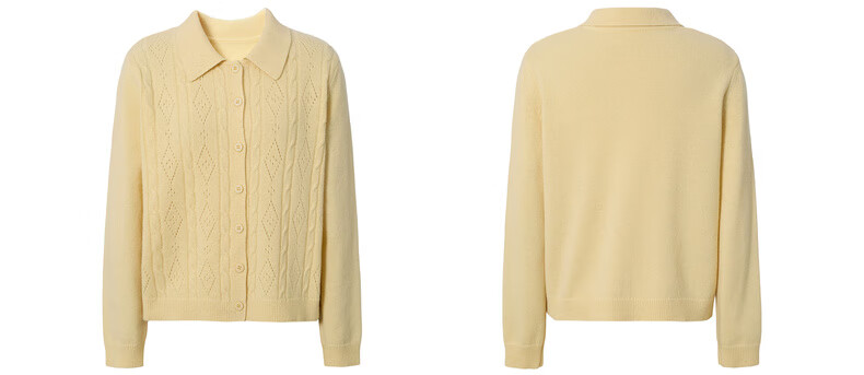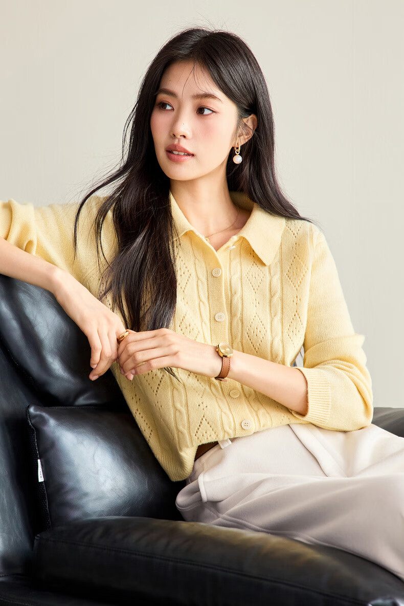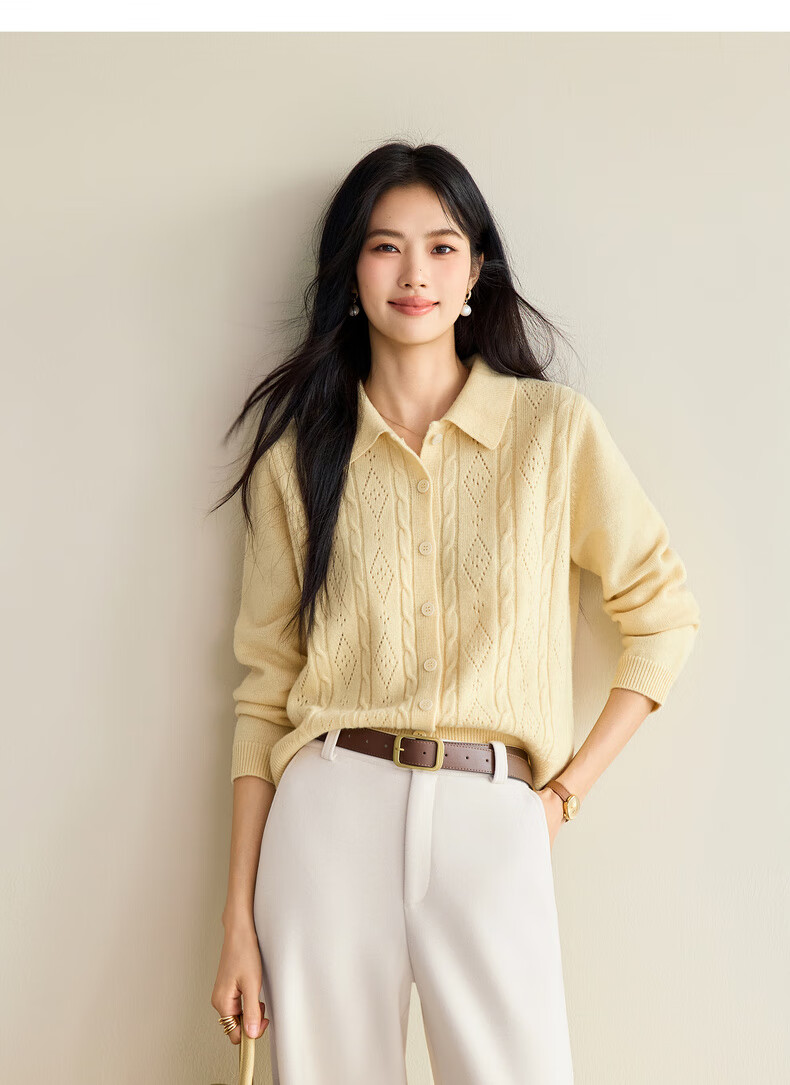 Eveli (eifini) Jiang Xin endorses Eveli fashion cable hollow knitted cardigan women's 25th autumn new commuter versatile yellow M 105-115Jin Jin equals 0.5 kg