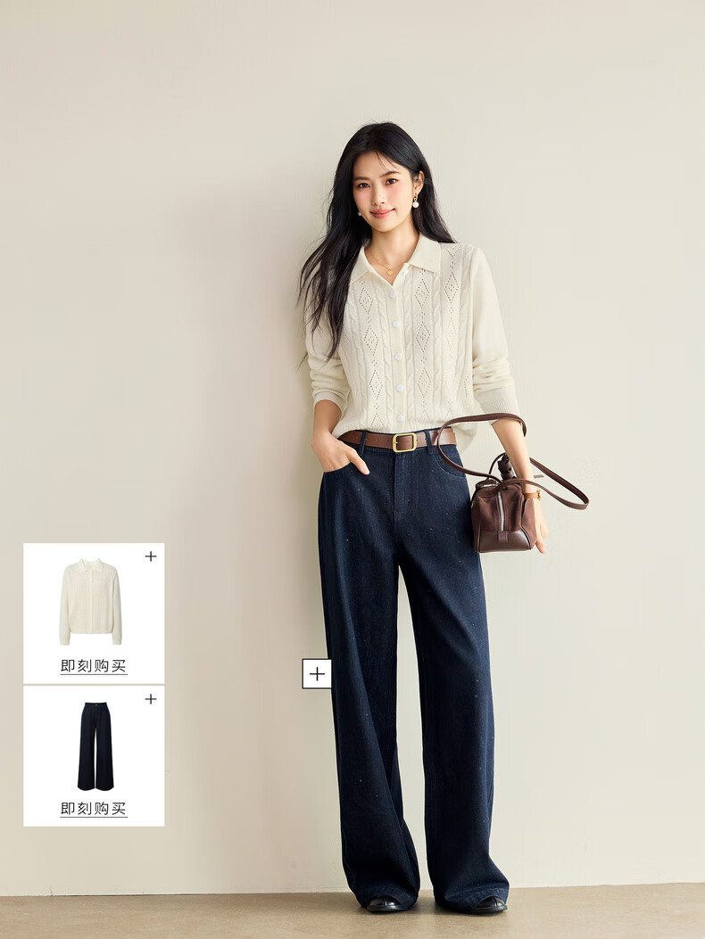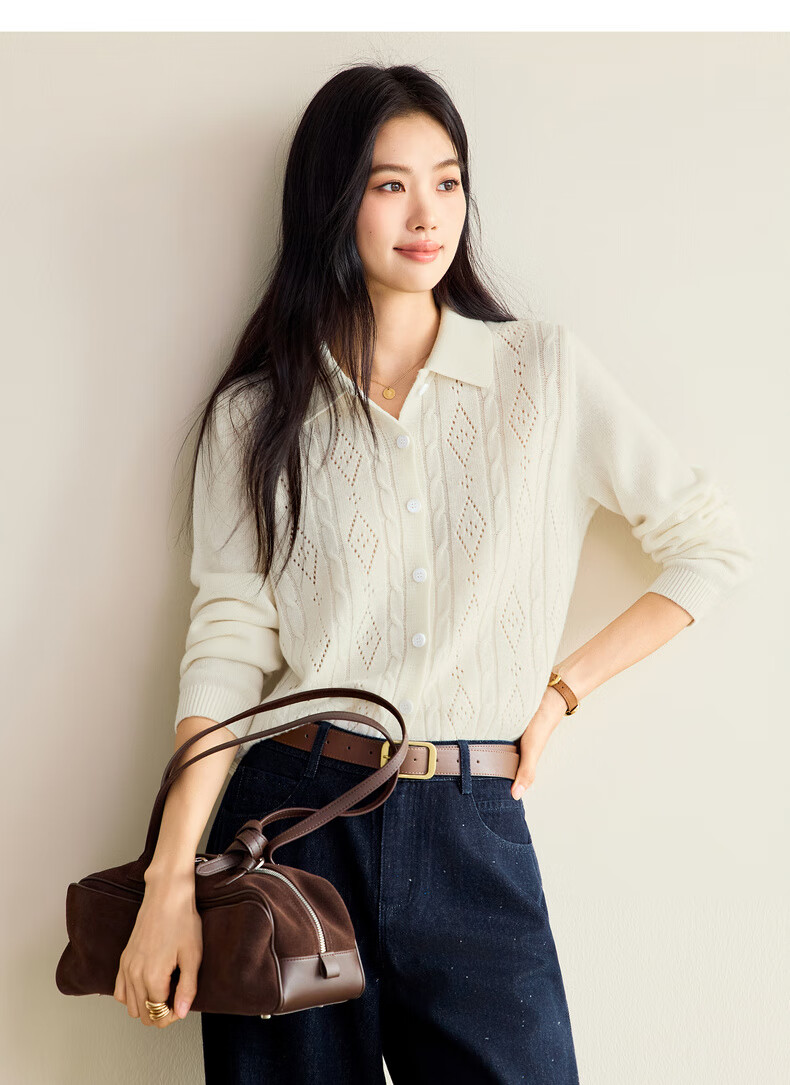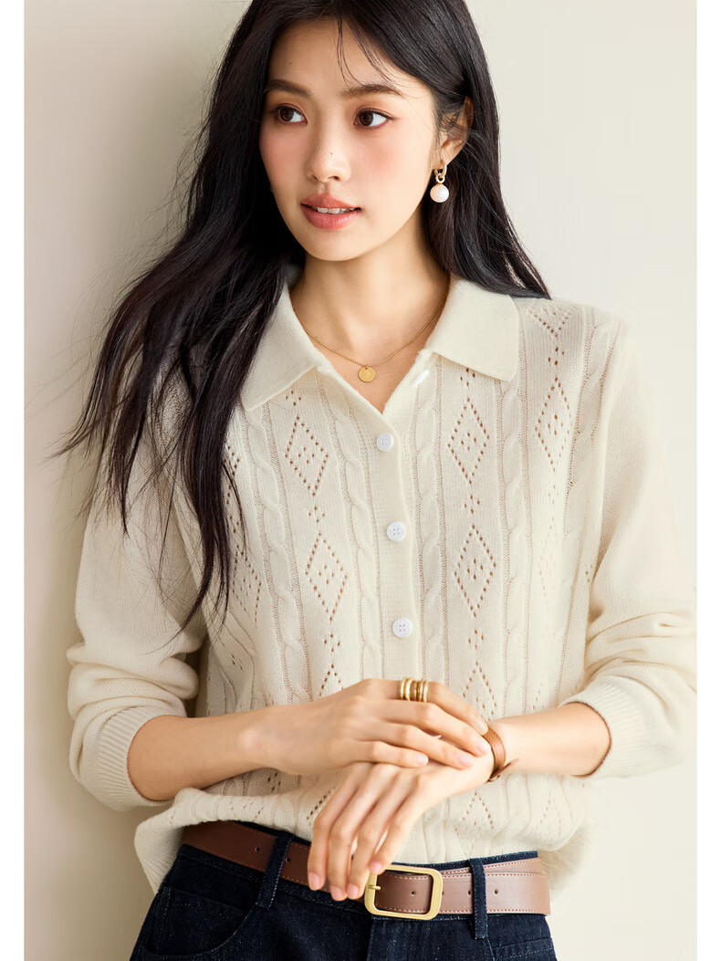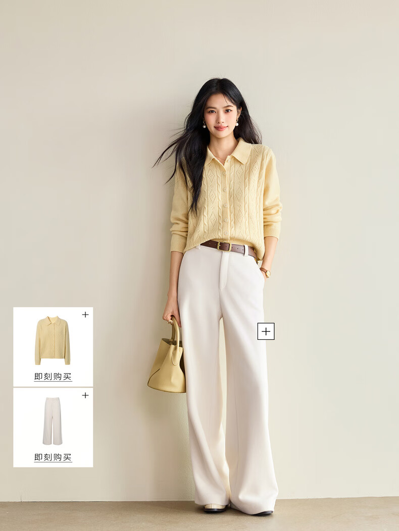 Eveli (eifini) Jiang Xin endorses Eveli fashion cable hollow knitted cardigan women's 25th autumn new commuter versatile yellow M 105-115Jin Jin equals 0.5 kg