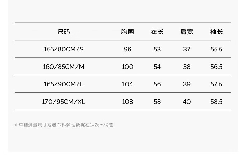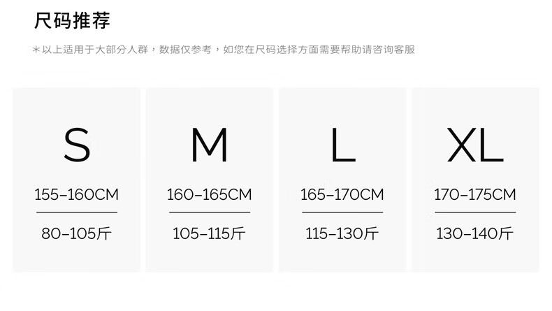 China (cm) 160-165/84-86 165-170 / 88-90 167-172 / 92-96 168-173 / 98-102 170-176 / 106-110