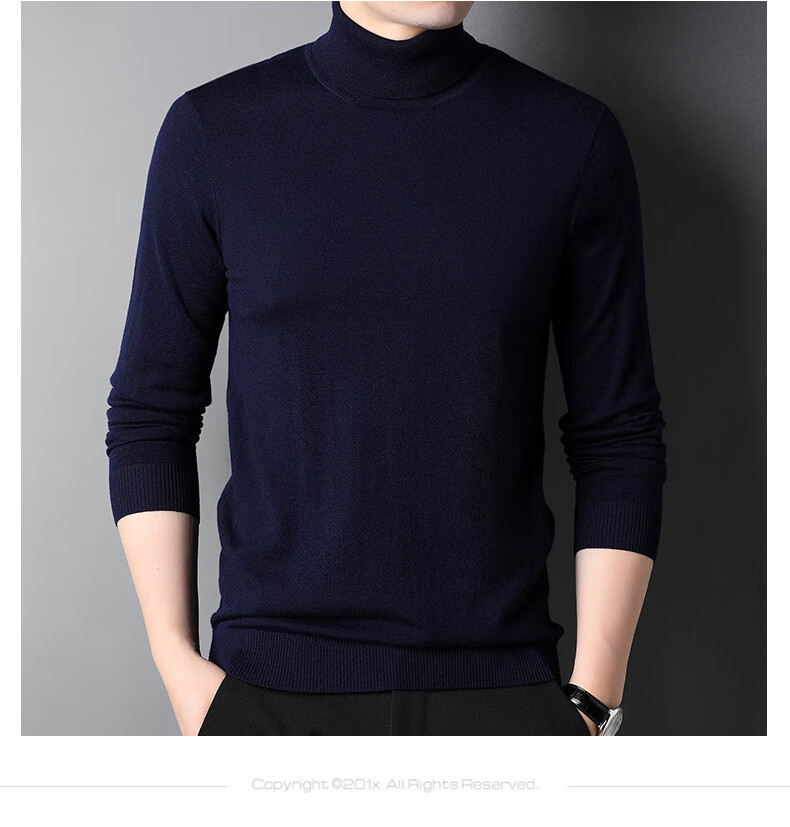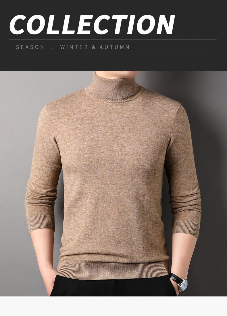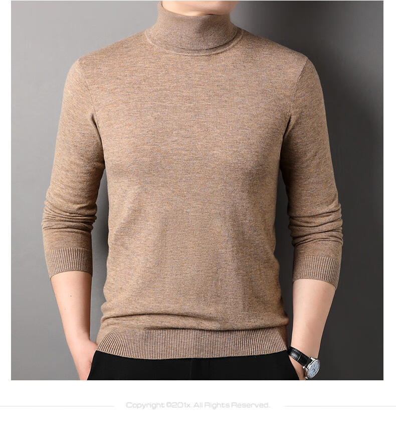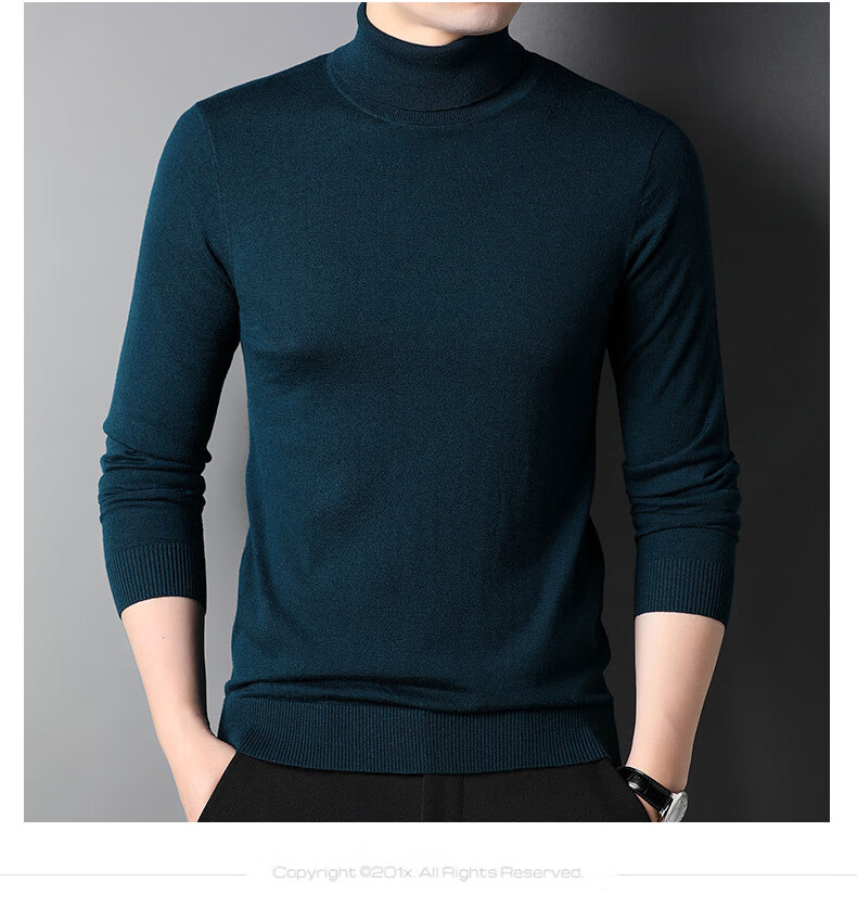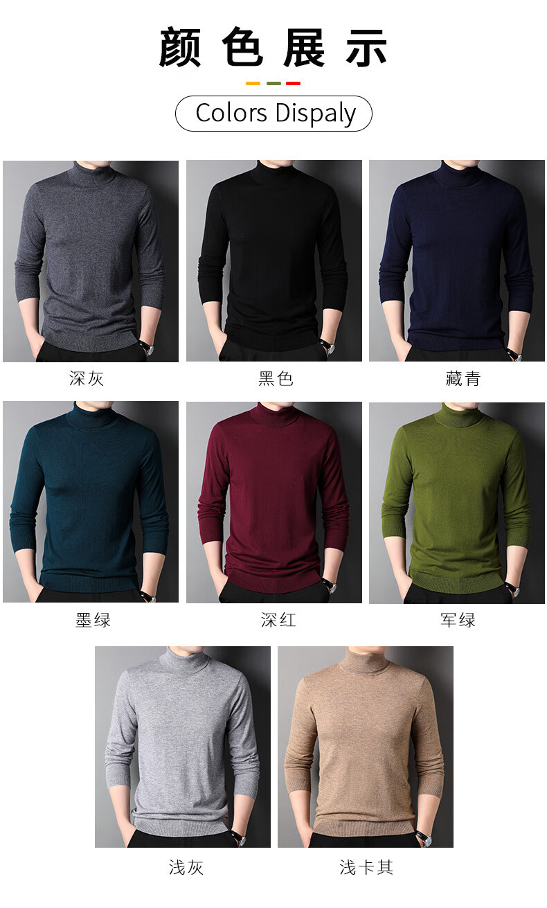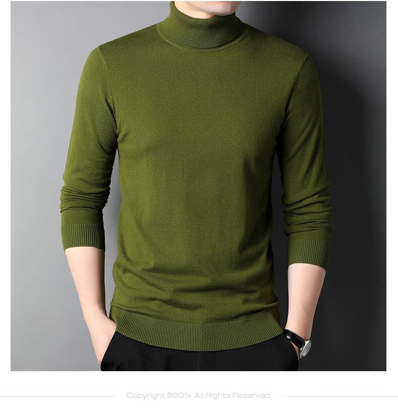 100% pure wool sweater men's turtleneck sweater new Puyuan sweater versatile warm knitted bottoming shirt military green M 170/88A