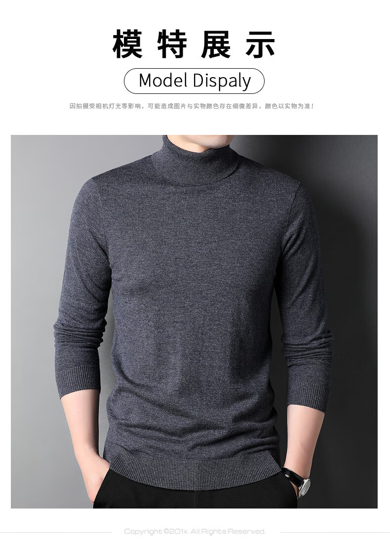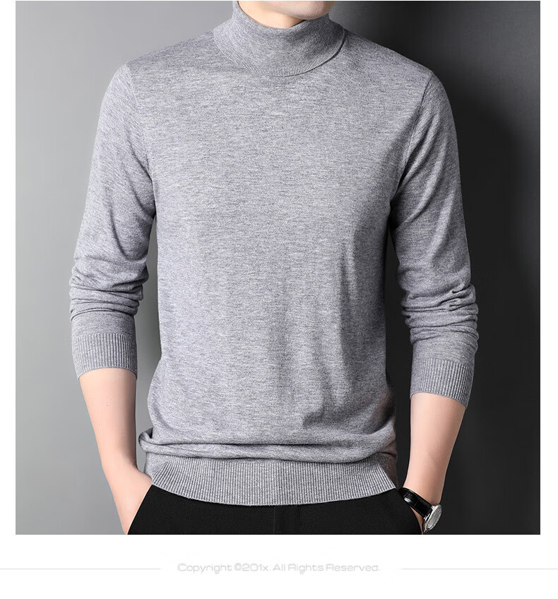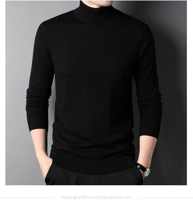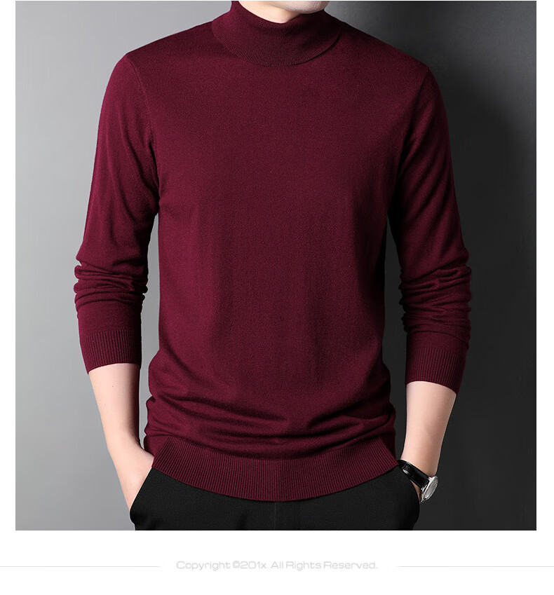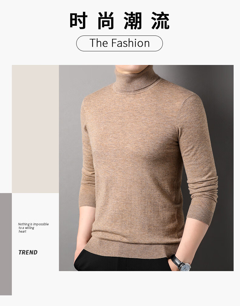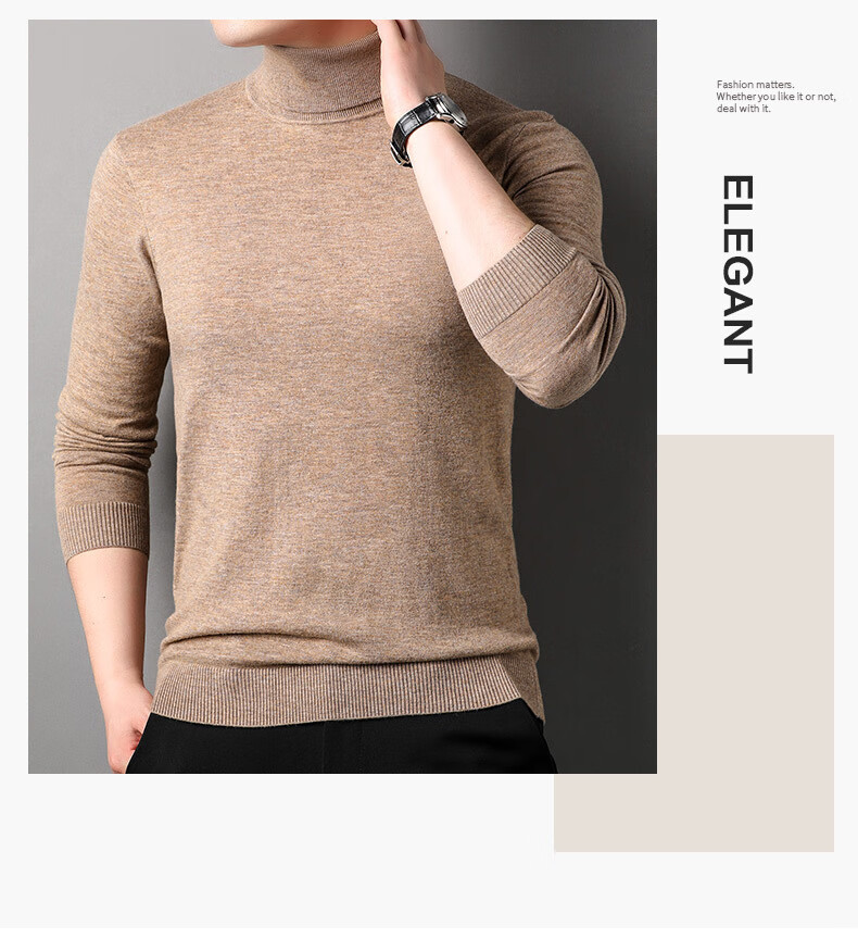 100% pure wool sweater men's turtleneck sweater new Puyuan sweater versatile warm knitted bottoming shirt military green M 170/88A