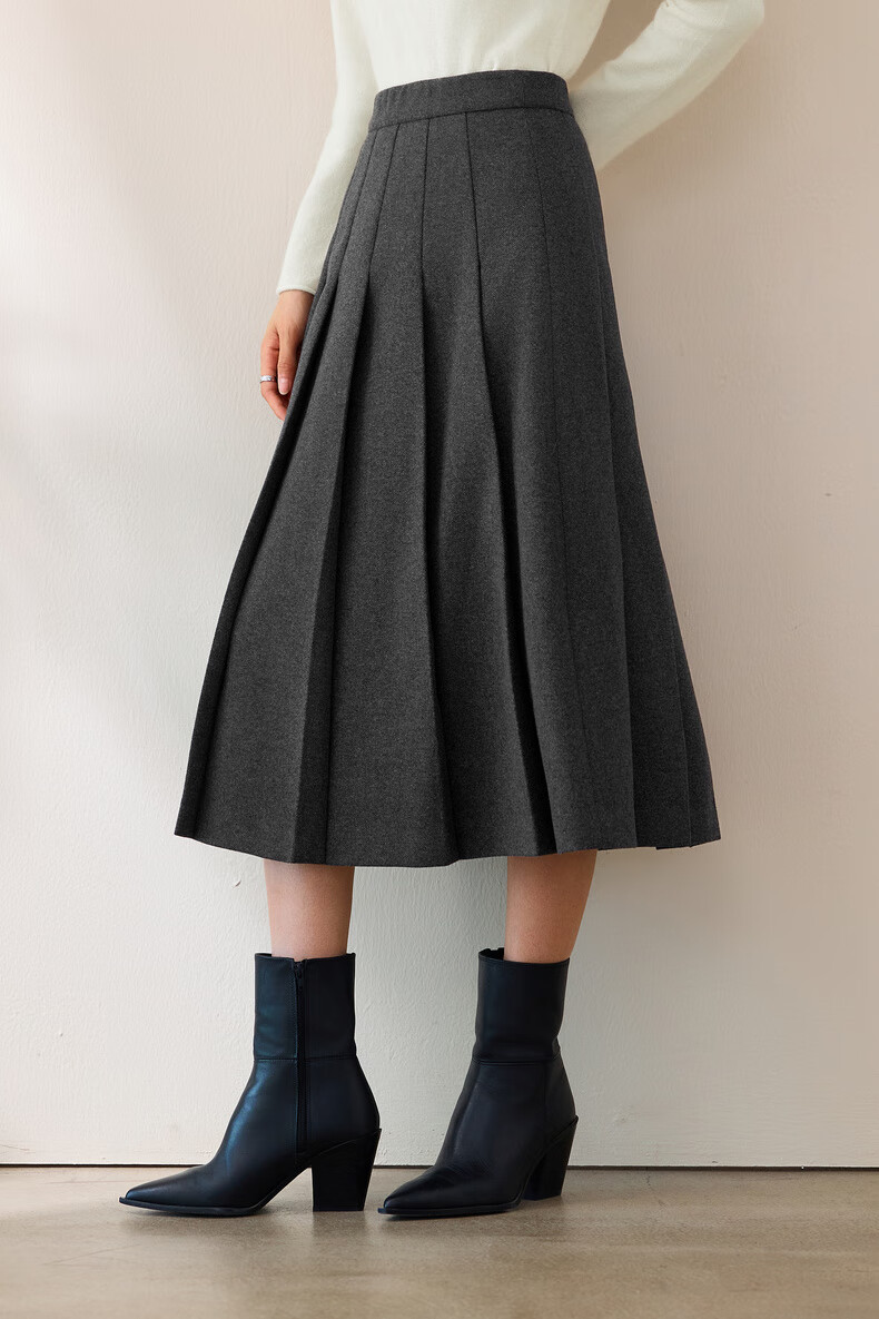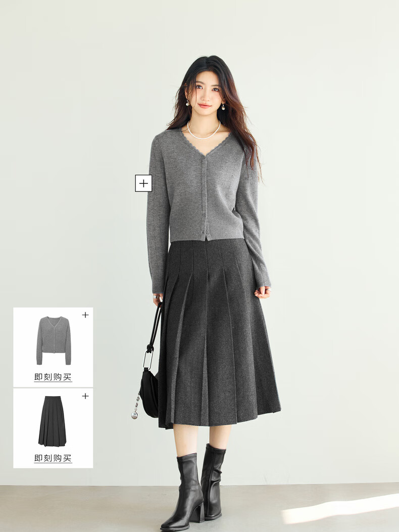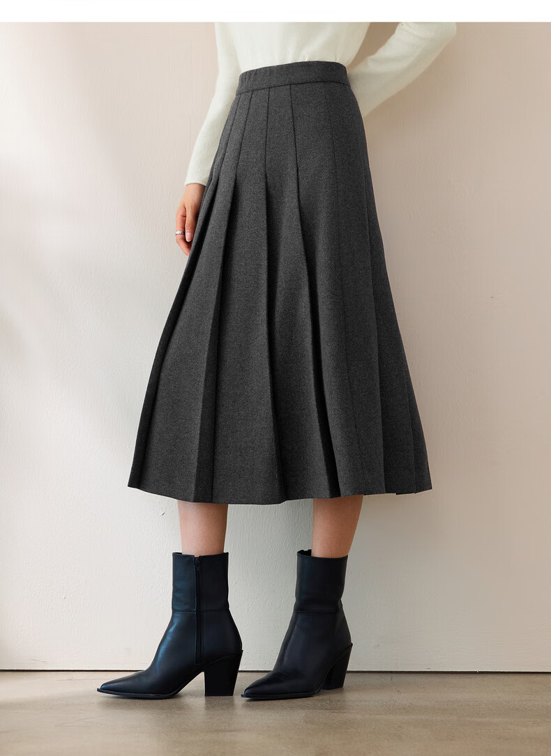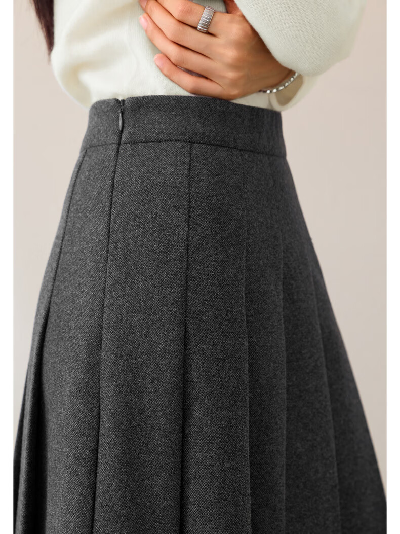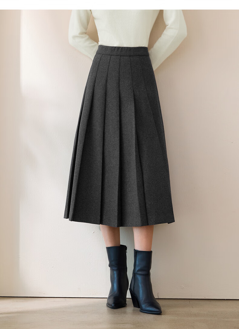 Eveli (eifini) Eveli high-quality wool pleated mid-length skirt, short skirt, slim A-line skirt, women's 2025 autumn new style, floral gray, mid-length, pre-sale XL 125-140Jin Jin is equal to 0.5 kg