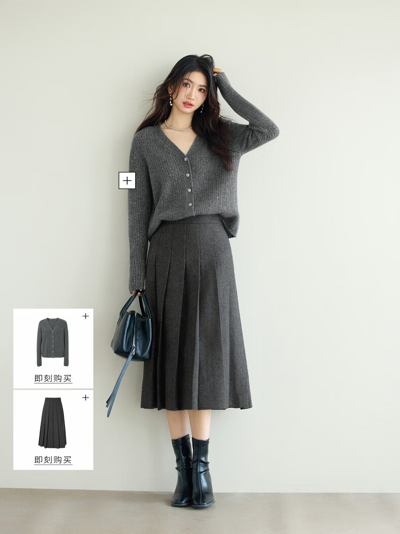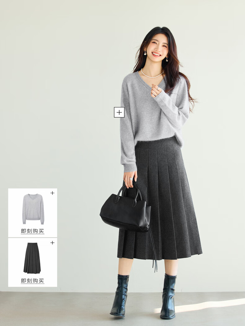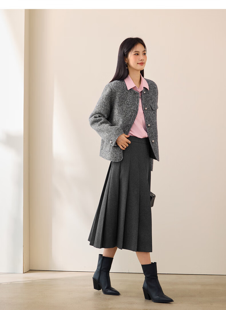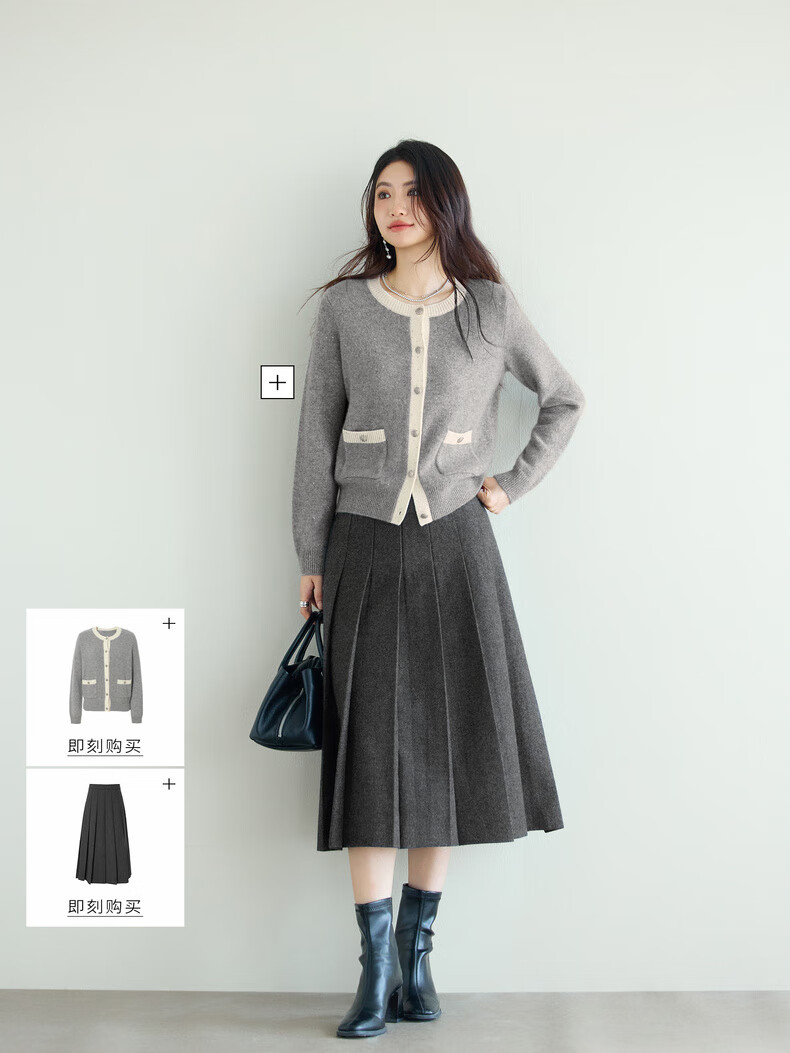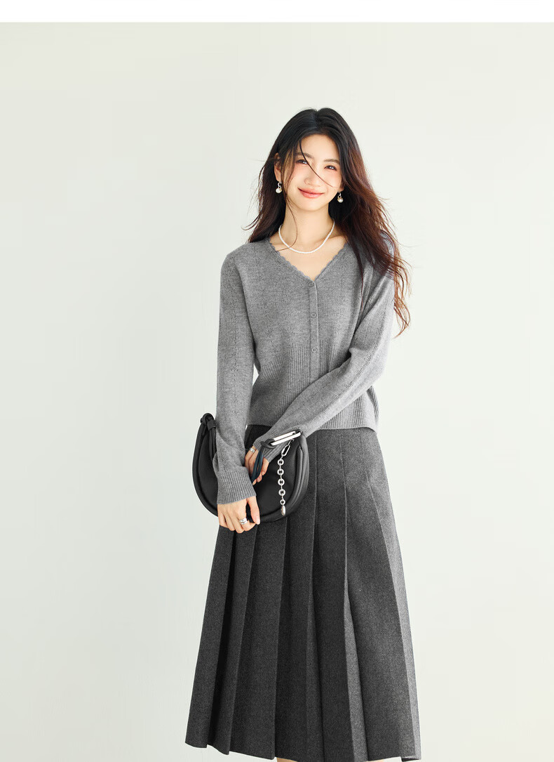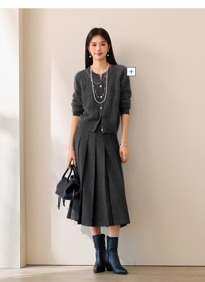 Eveli (eifini) Eveli high-quality wool pleated mid-length skirt, short skirt, slim A-line skirt, women's 2025 autumn new style, floral gray, mid-length, pre-sale XL 125-140Jin Jin is equal to 0.5 kg