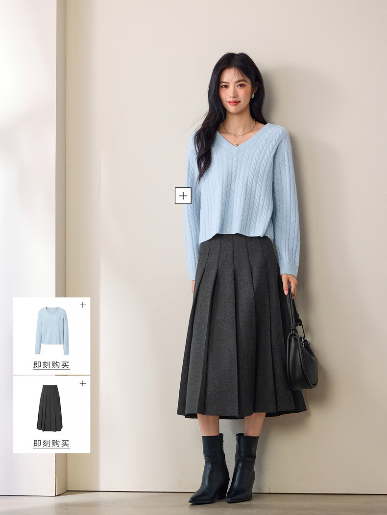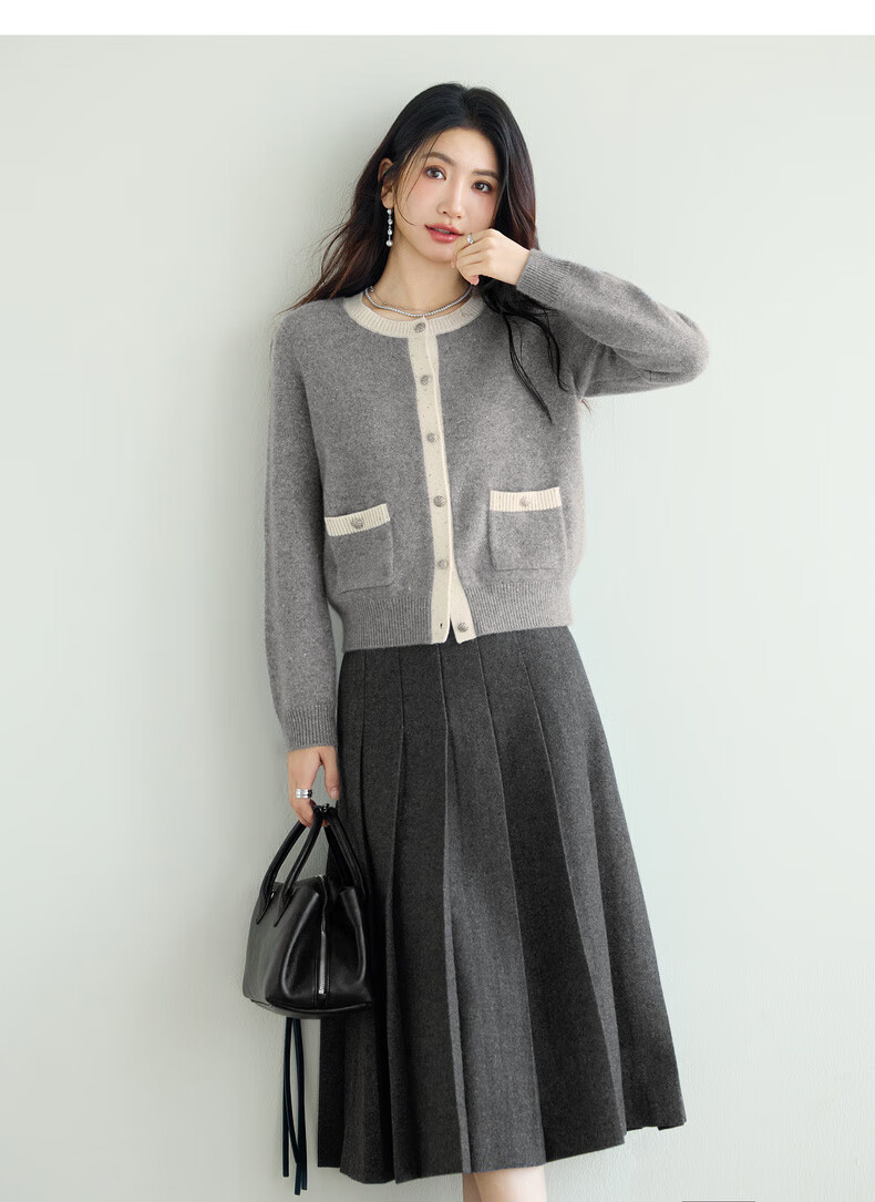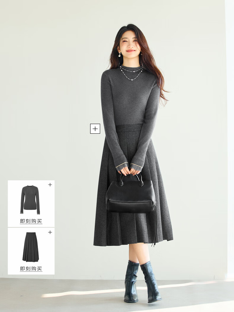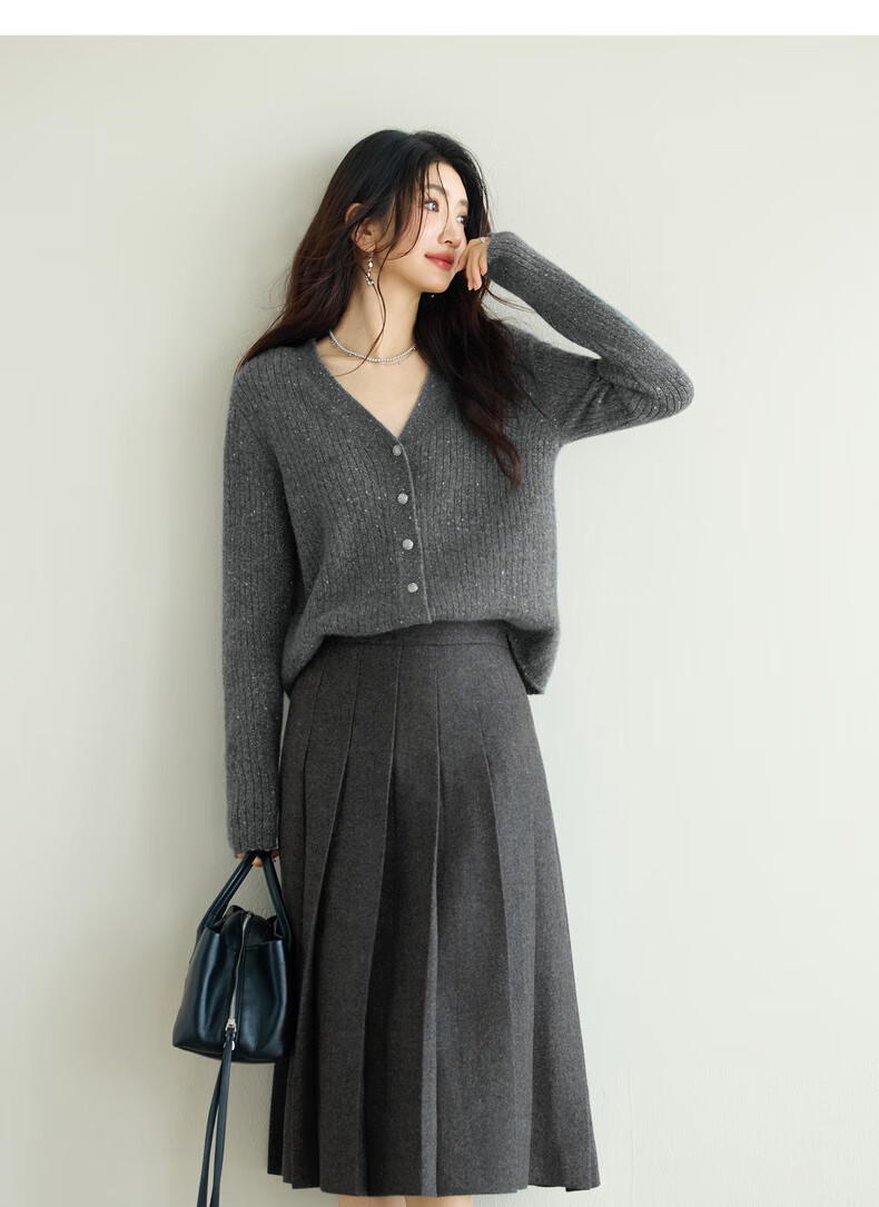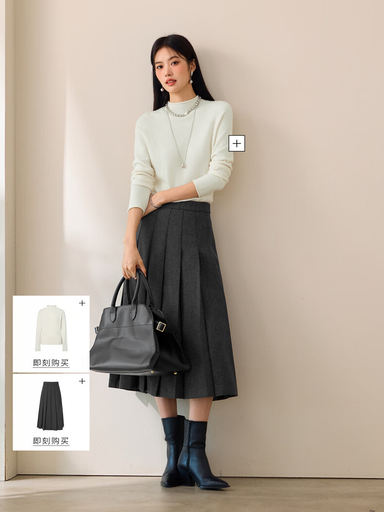 Eveli (eifini) Eveli high-quality wool pleated mid-length skirt, short skirt, slim A-line skirt, women's 2025 autumn new style, floral gray, mid-length, pre-sale XL 125-140Jin Jin is equal to 0.5 kg