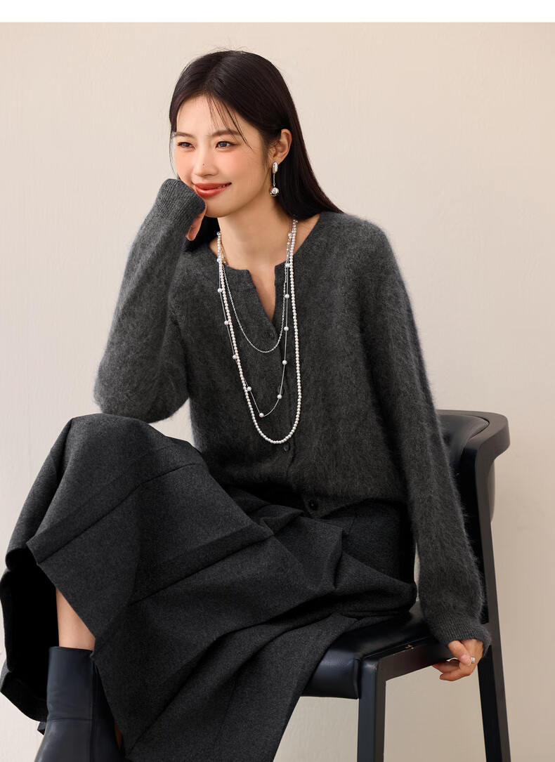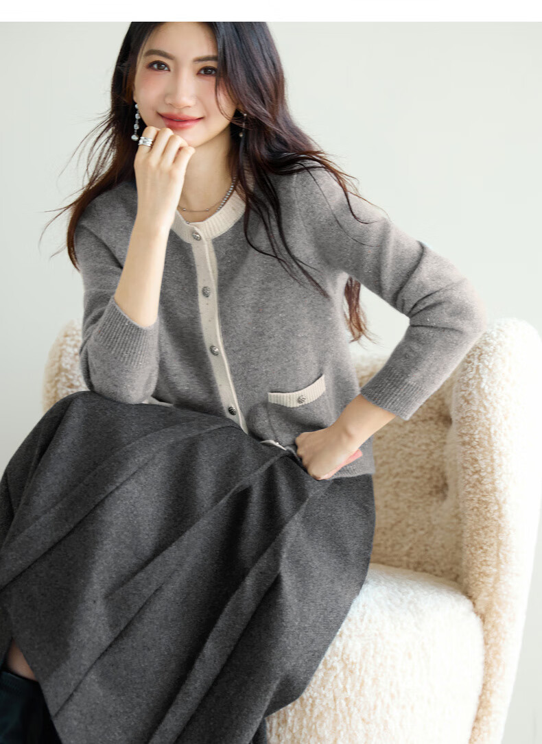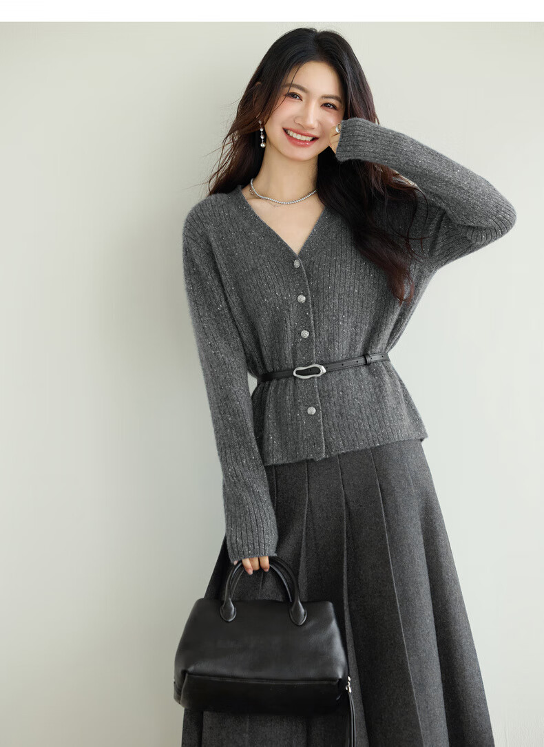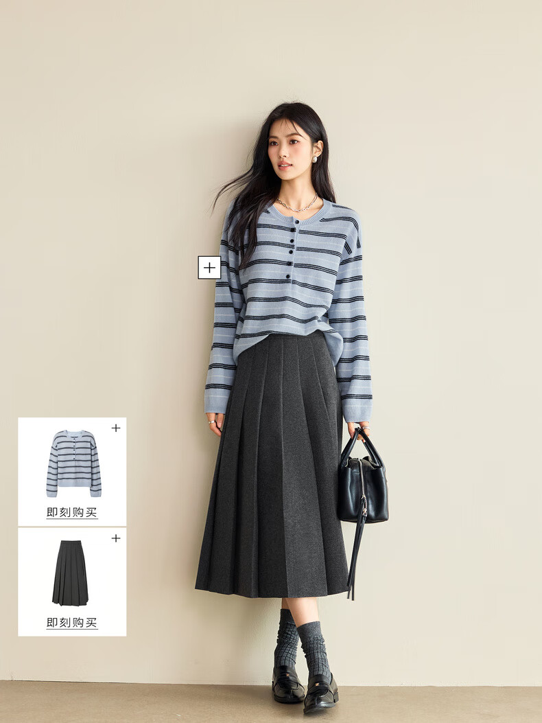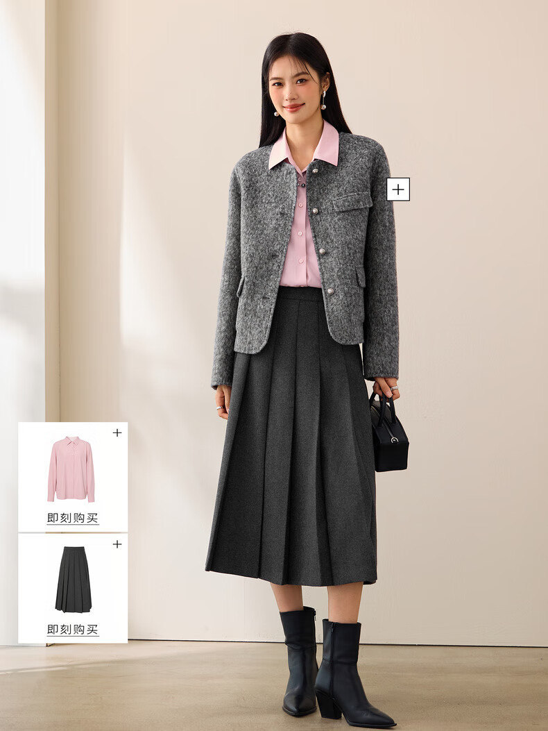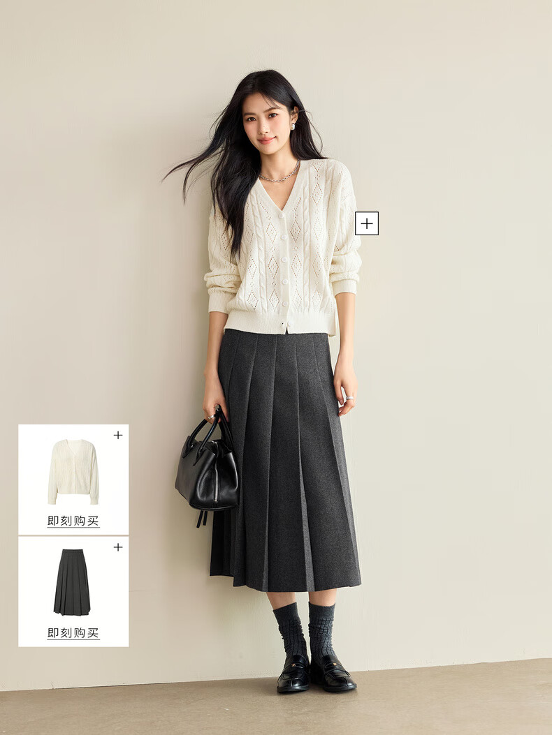 Eveli (eifini) Eveli high-quality wool pleated mid-length skirt, short skirt, slim A-line skirt, women's 2025 autumn new style, floral gray, mid-length, pre-sale XL 125-140Jin Jin is equal to 0.5 kg