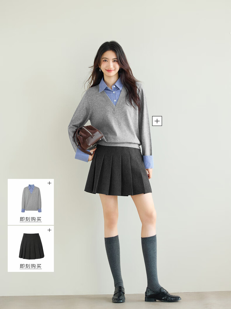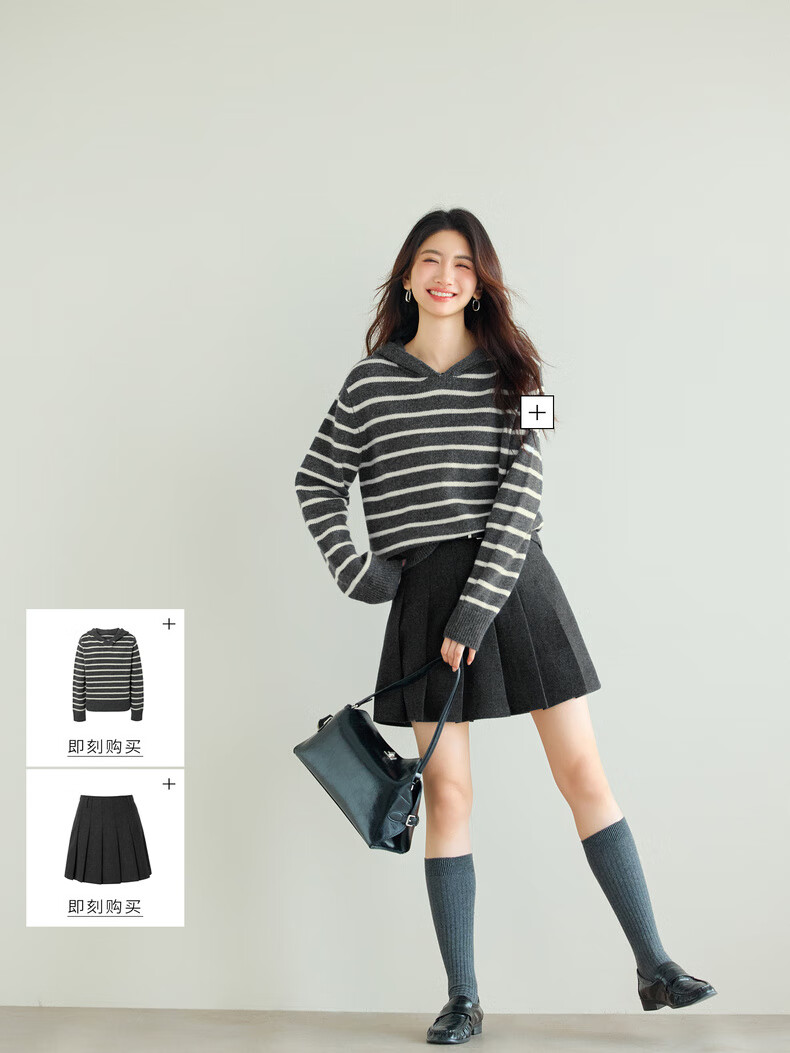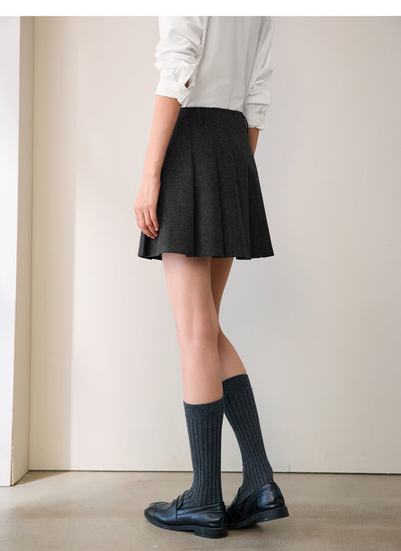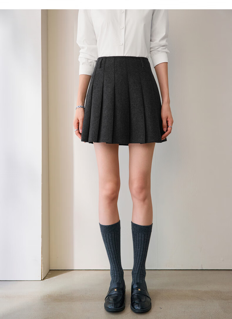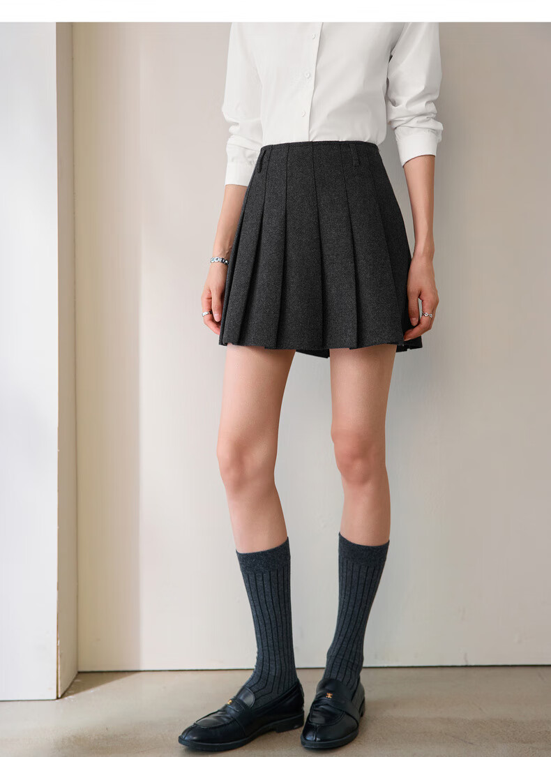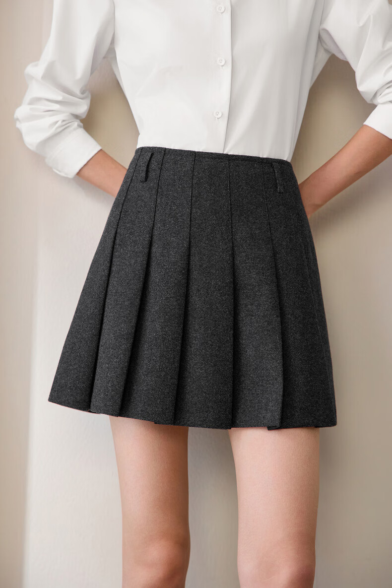 Eveli (eifini) Eveli high-quality wool pleated skirt short skirt slimming A-line skirt women's 2025 autumn new style floral gray short style S 80-100Jin Jin is equal to 0.5 kg