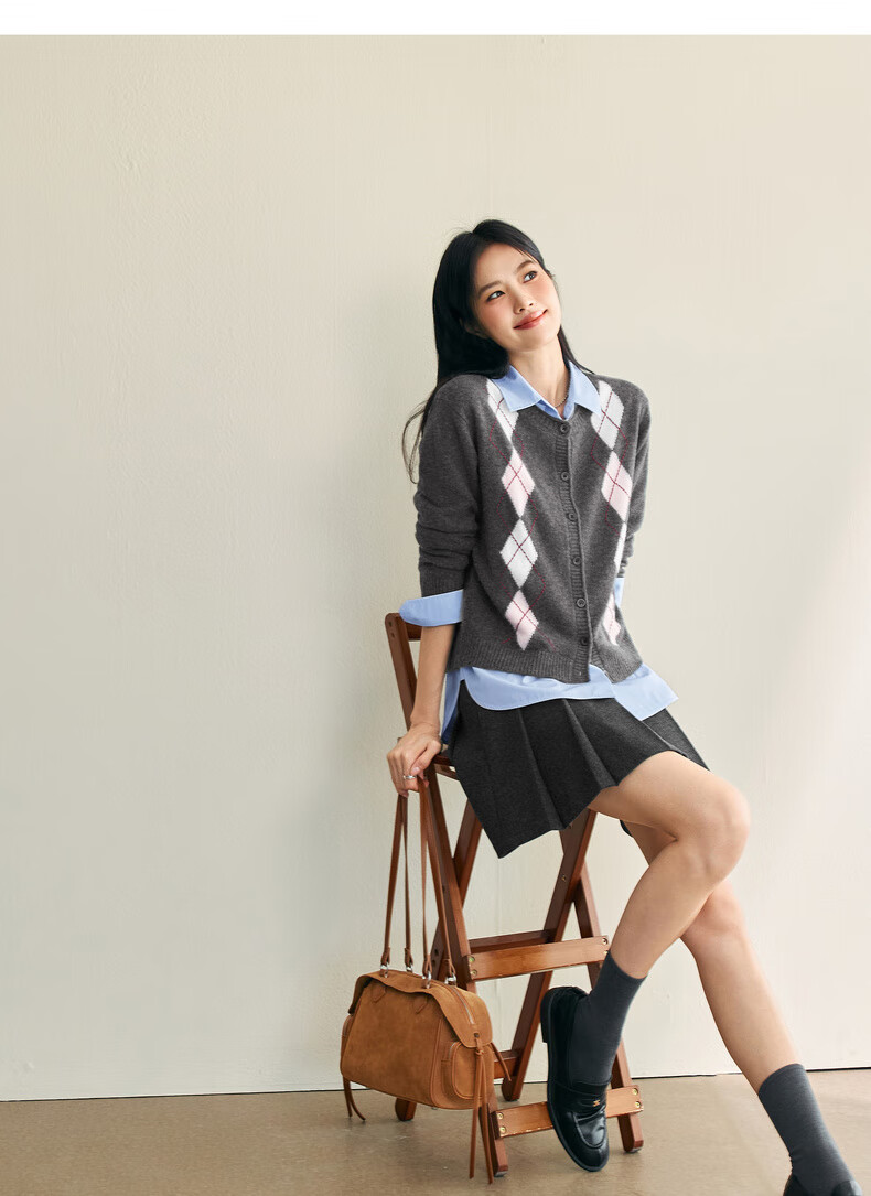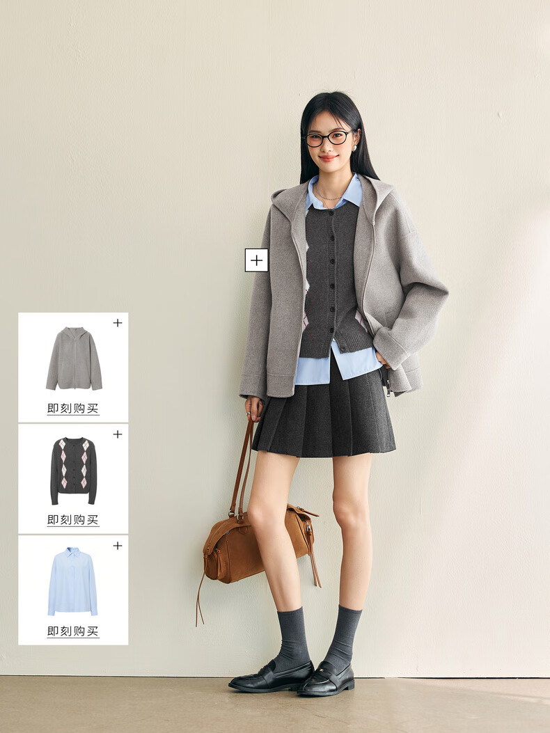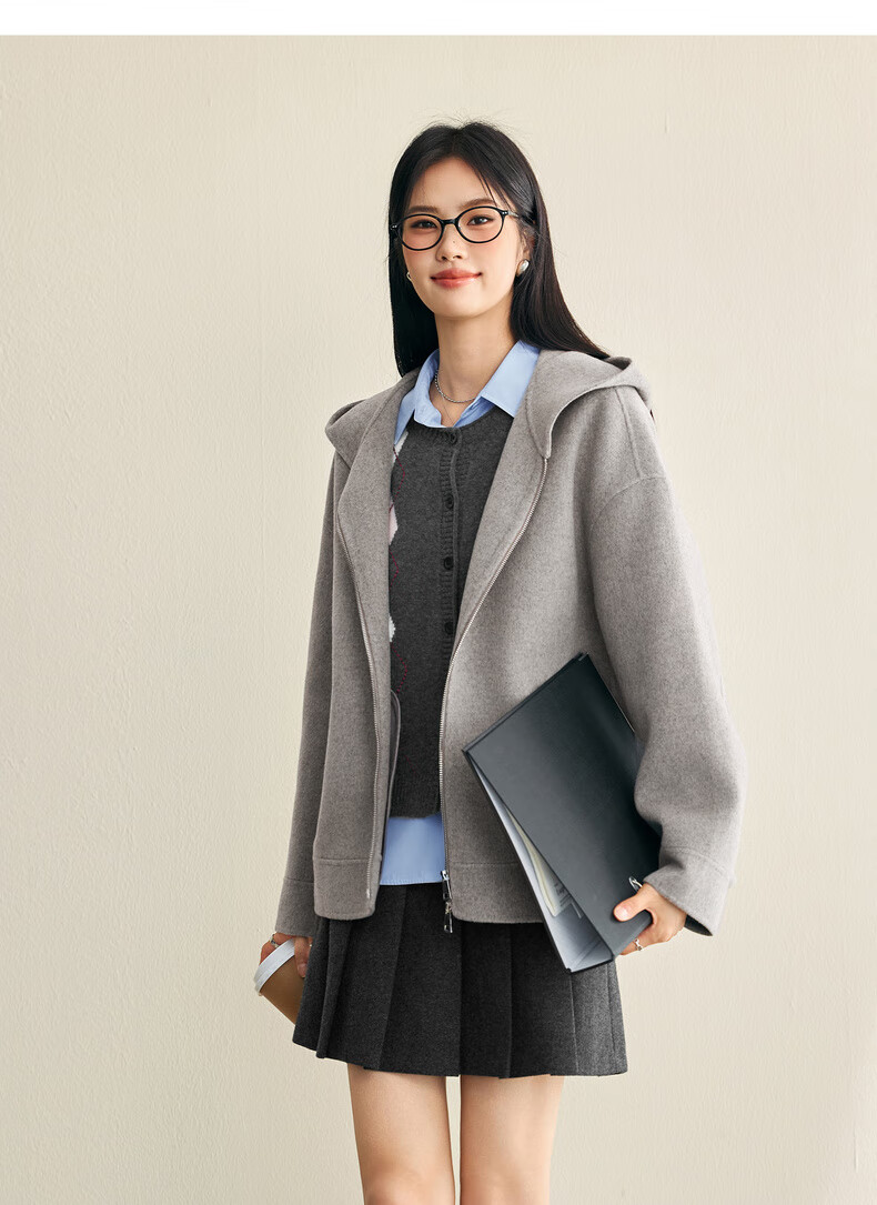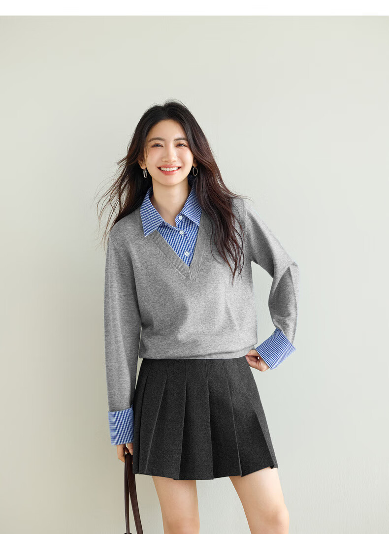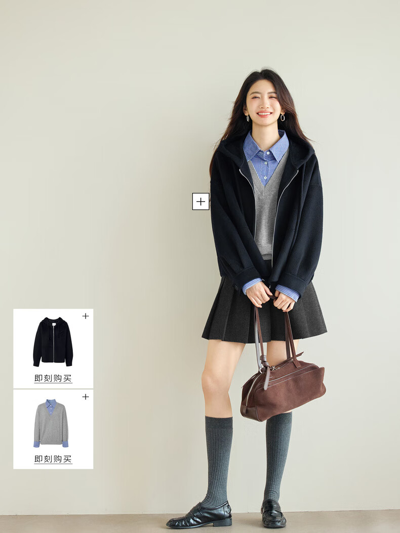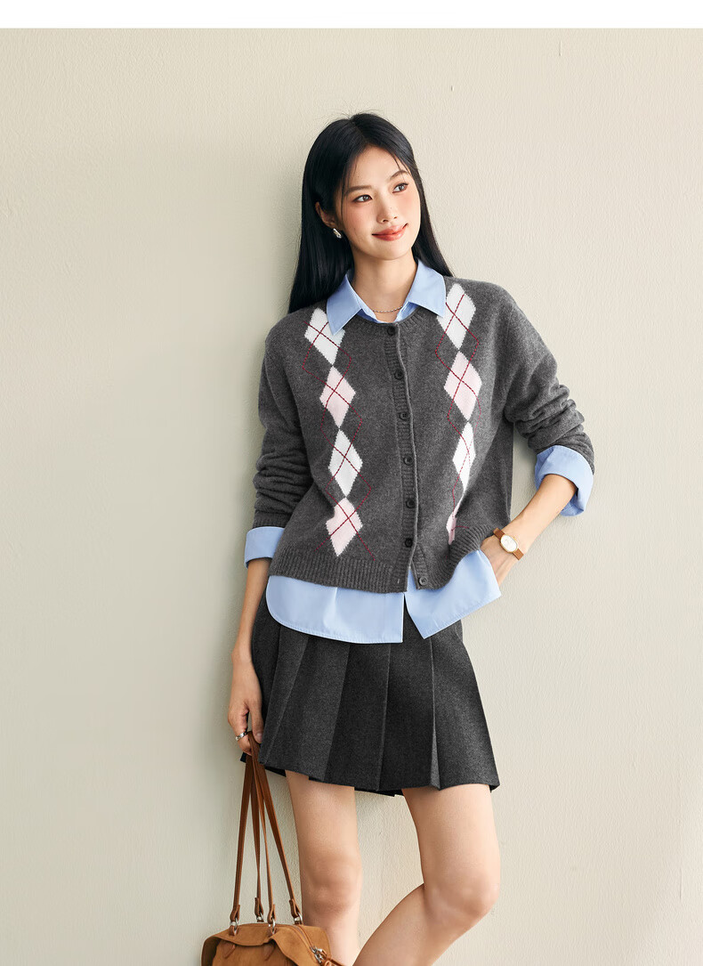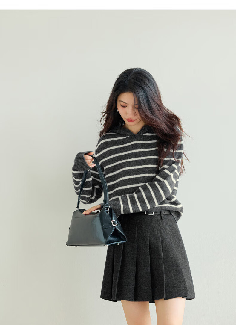 Eveli (eifini) Eveli high-quality wool pleated skirt short skirt slimming A-line skirt women's 2025 autumn new style floral gray short style S 80-100Jin Jin is equal to 0.5 kg