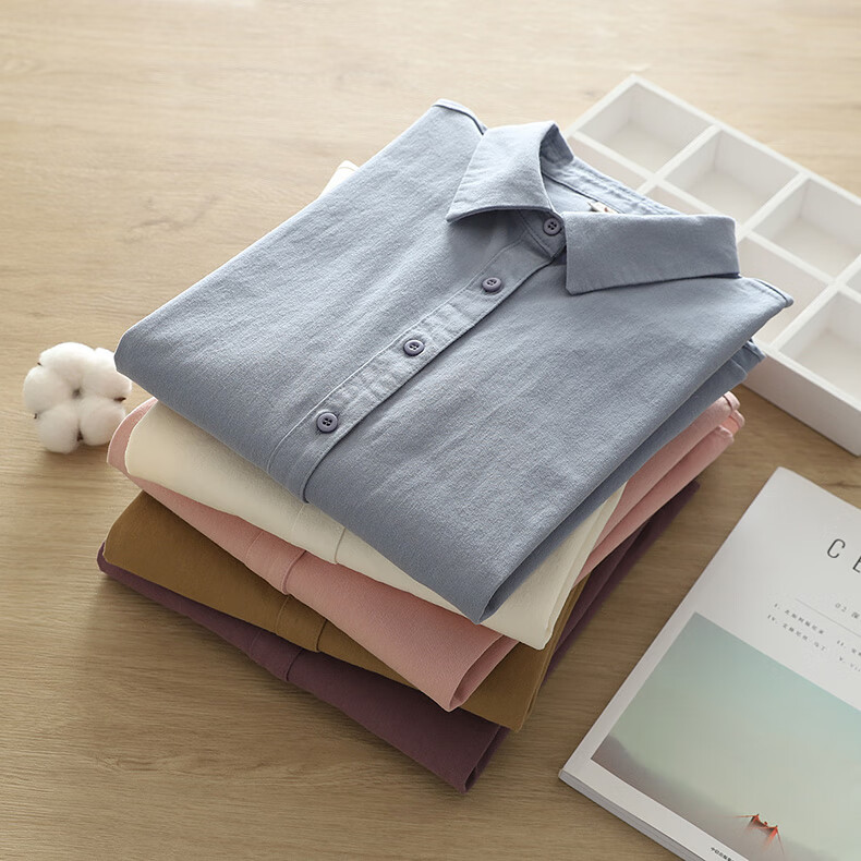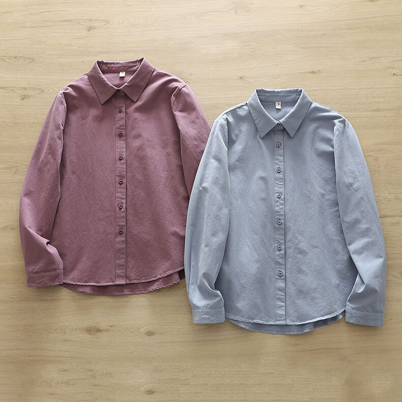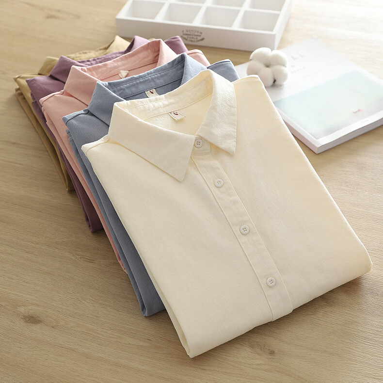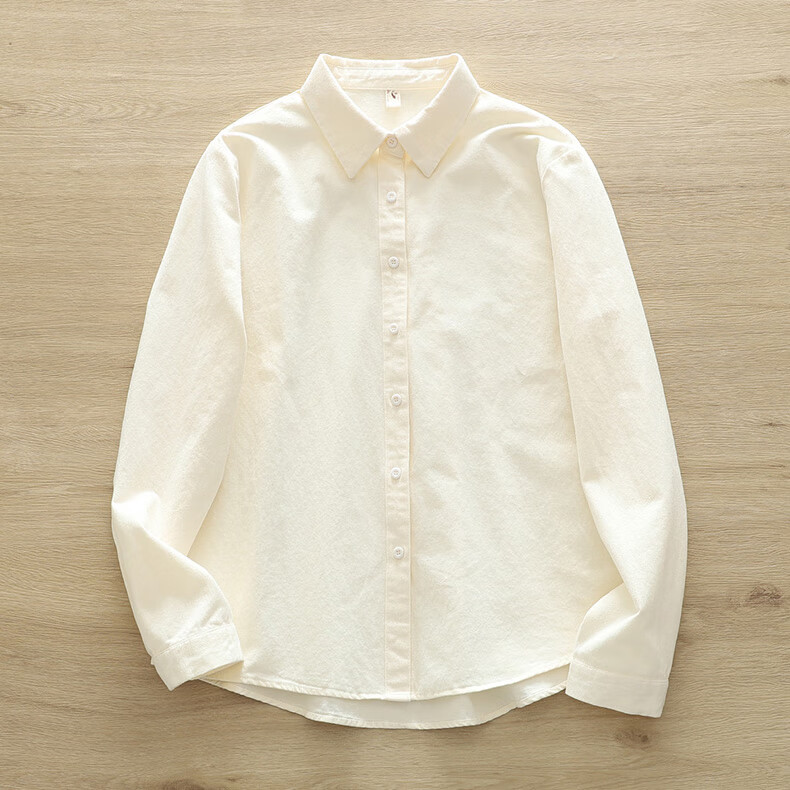 Yun Qiurong women's shirt cotton long-sleeved autumn and winter thick brushed versatile 2025 autumn new shirt pure cotton top fashionable off-white M 115-135Jin Jin equals 0.5 kg