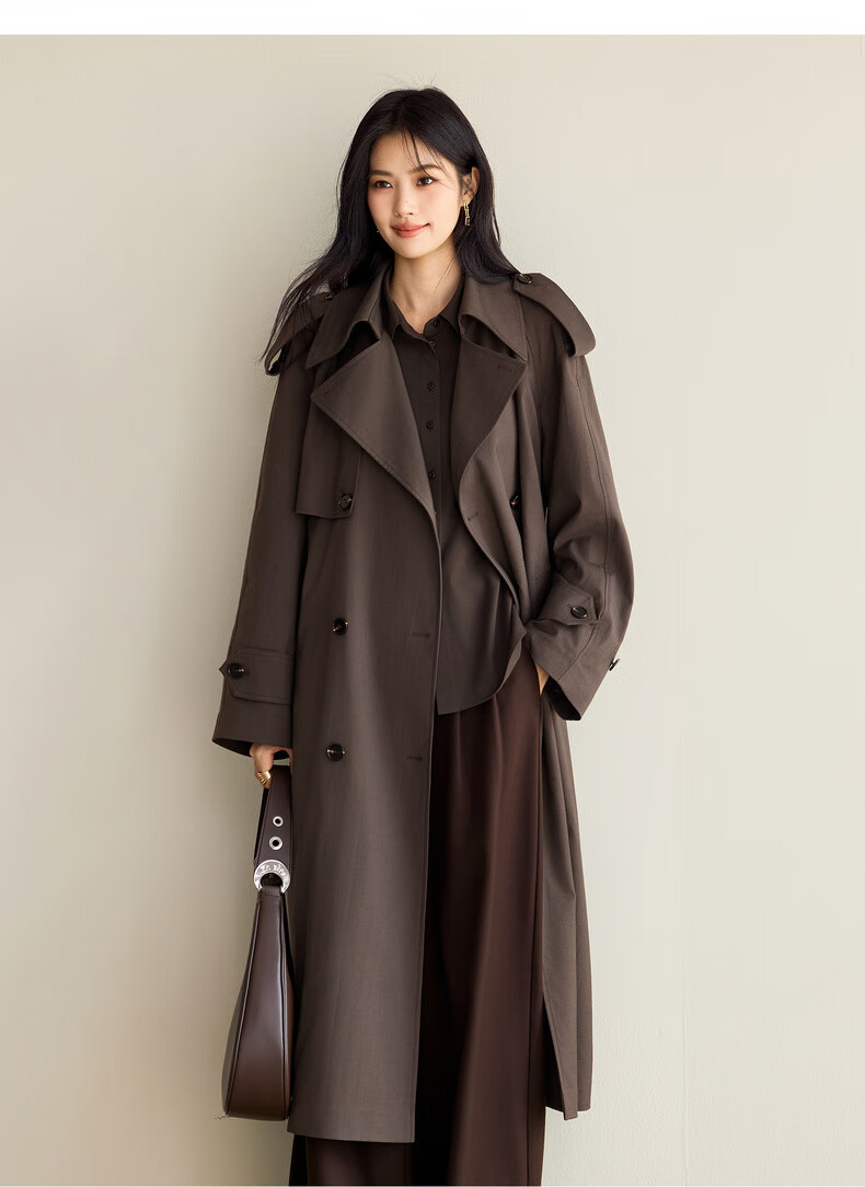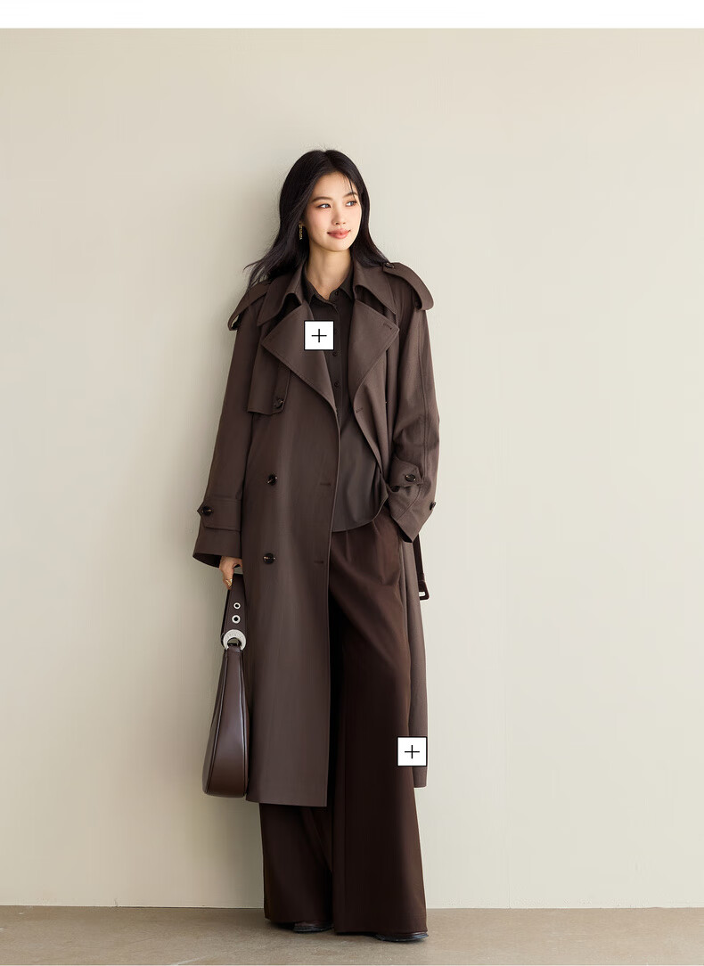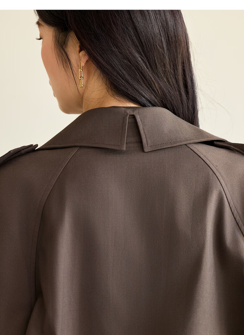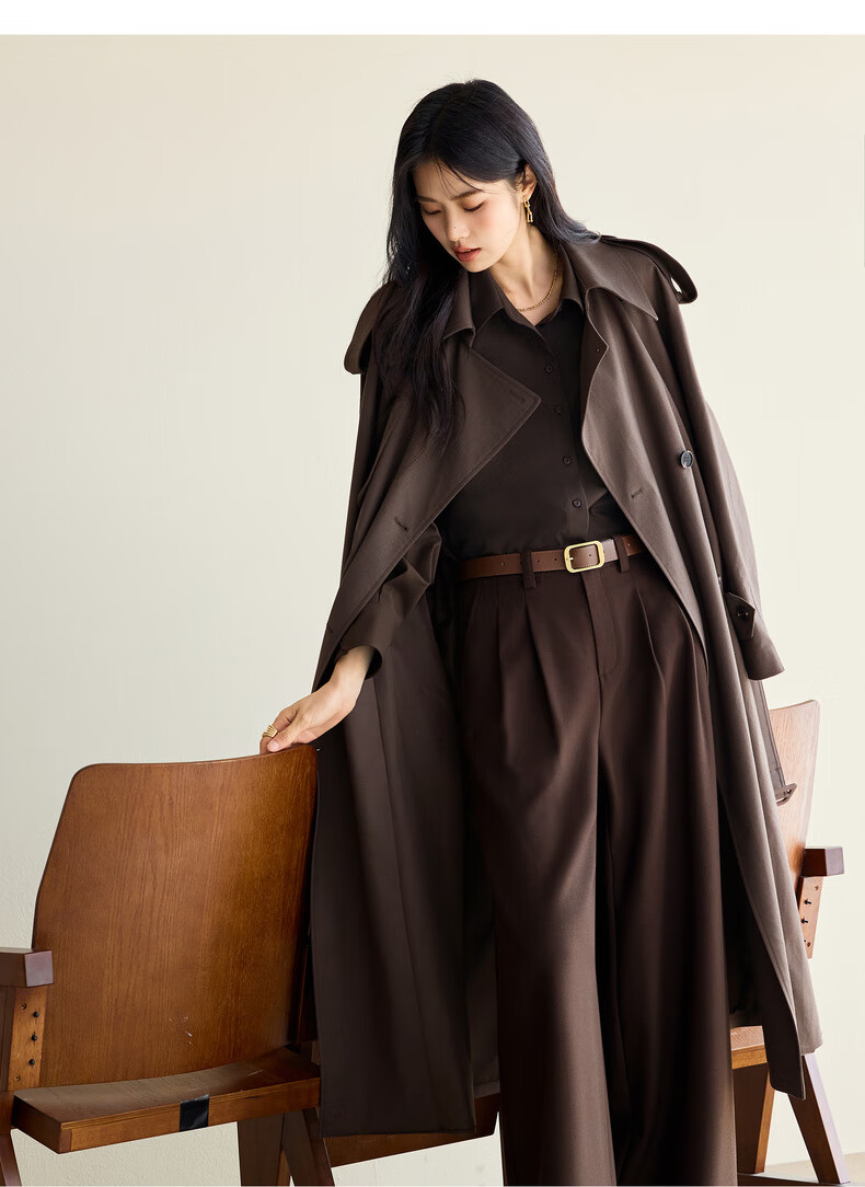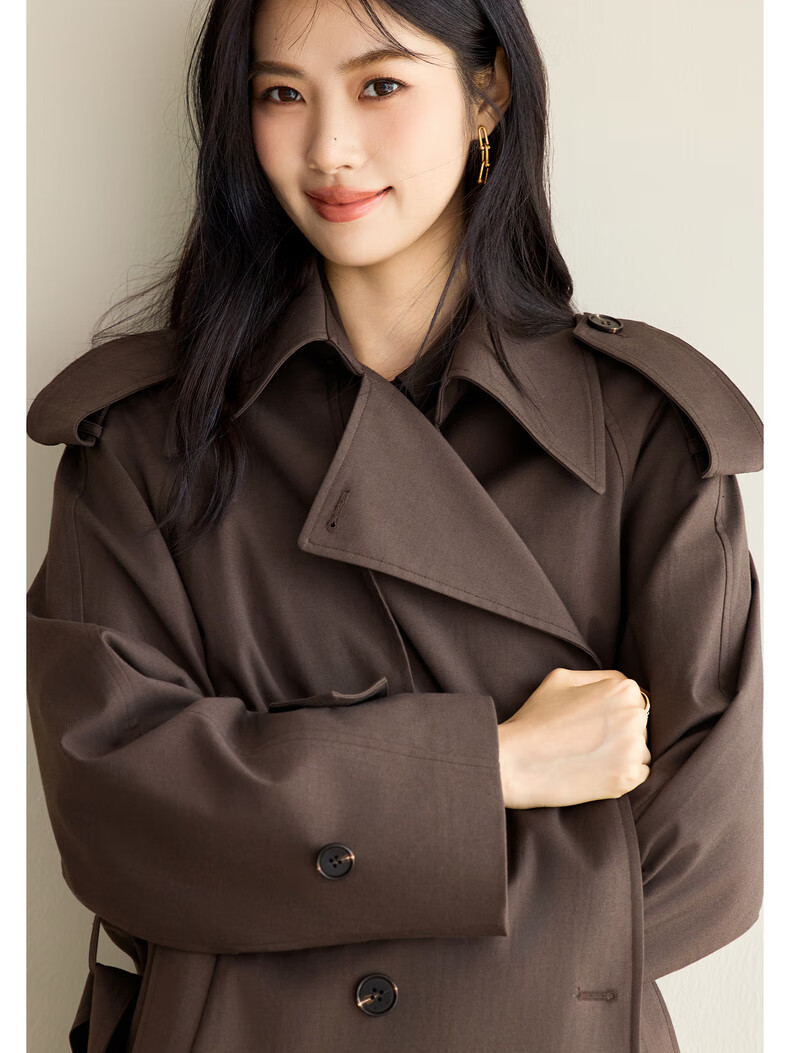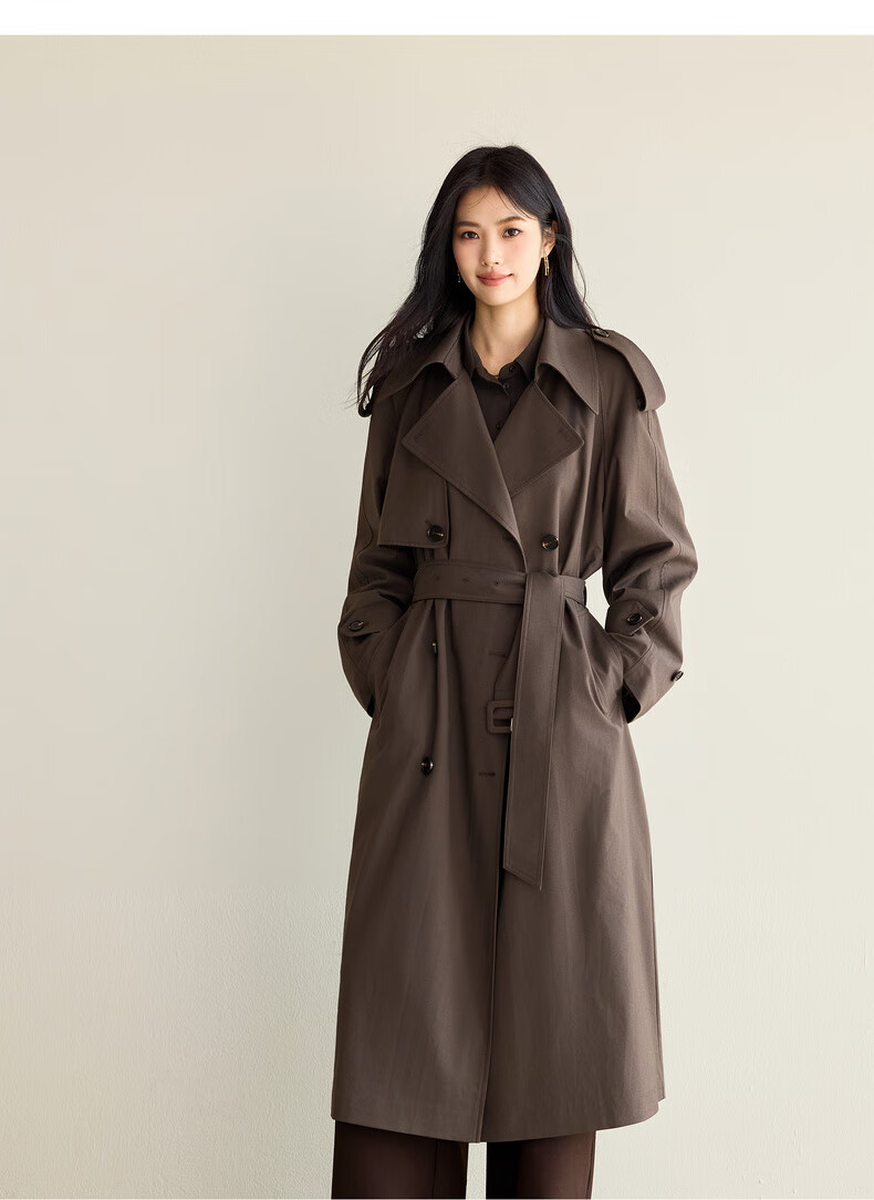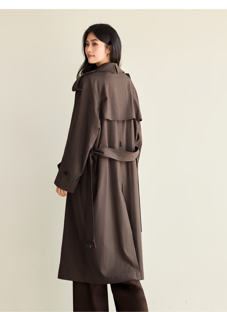 Eifini Jiang Xin endorses Eifini anti-wrinkle TR fabric classic old money double-breasted windbreaker 2025 autumn new sandstone brown L