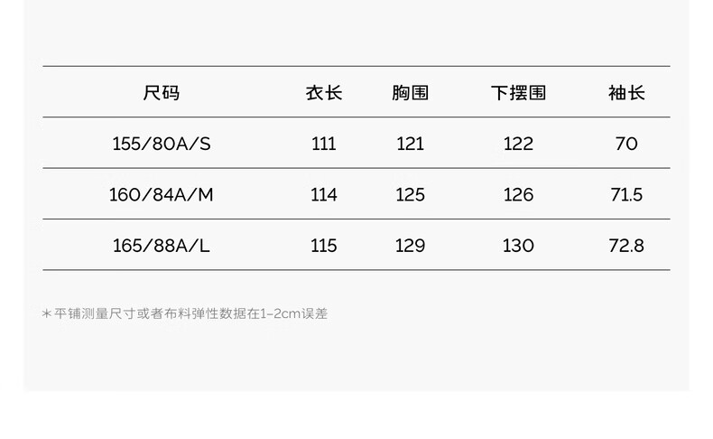 China (cm) 160-165/84-86 165-170 / 88-90 167-172 / 92-96 168-173 / 98-102 170-176 / 106-110