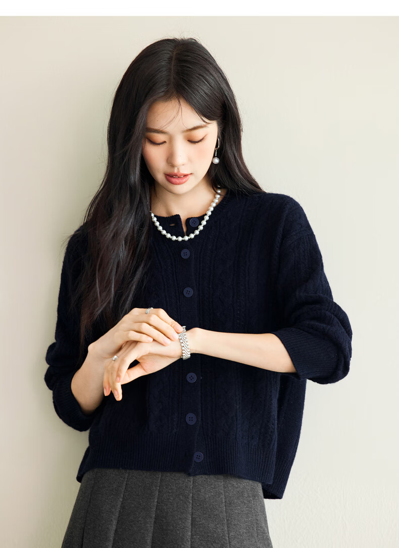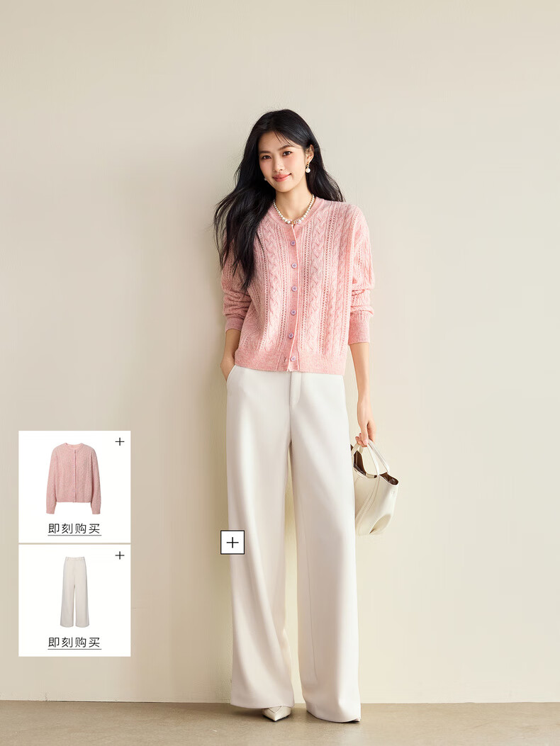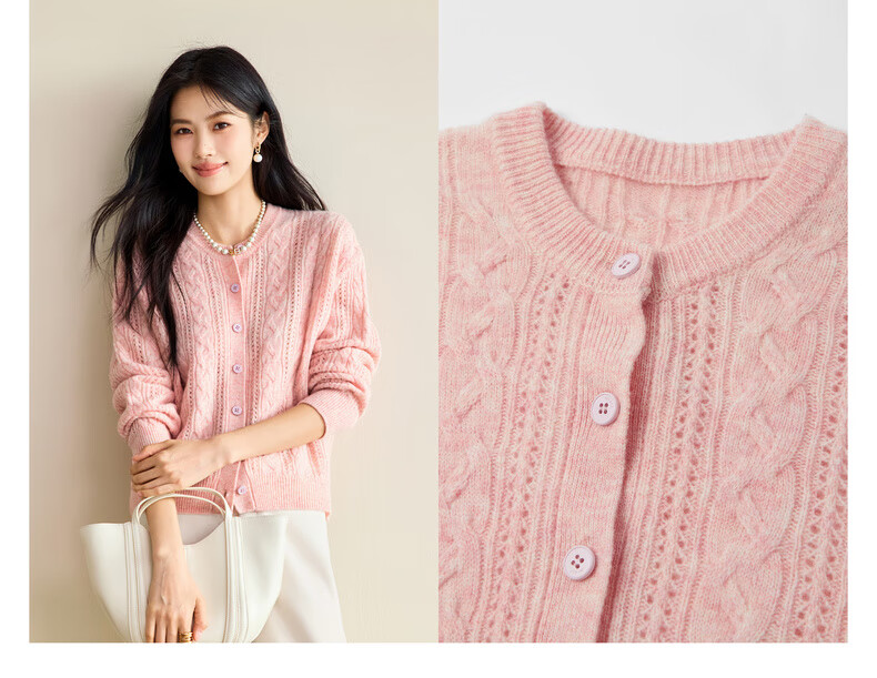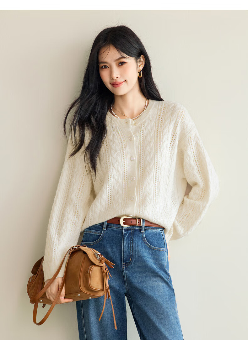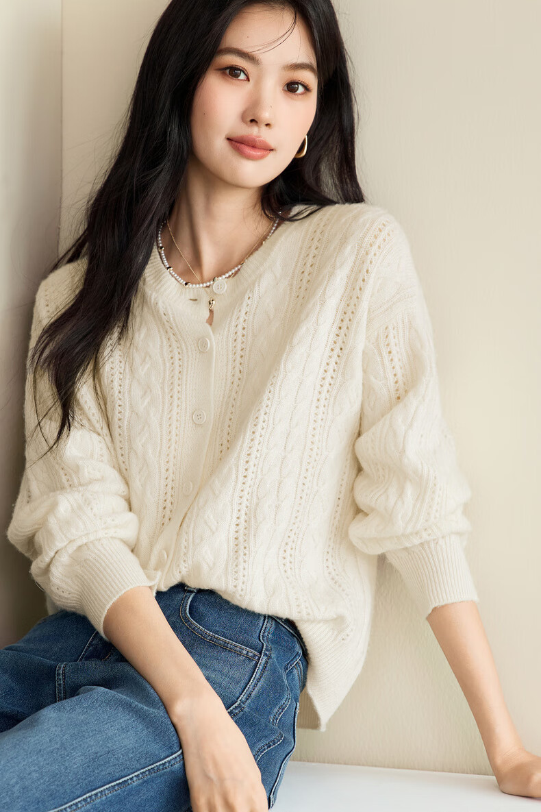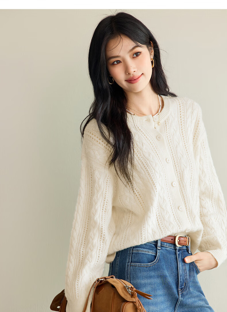 Eveli (eifini) Jiang Xin endorses Eveli fashion simple cable knitted cardigan for women 25 autumn new versatile casual commuting off-white M 105-115Jin Jin equals 0.5 kg