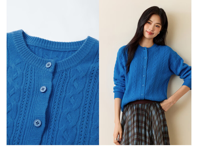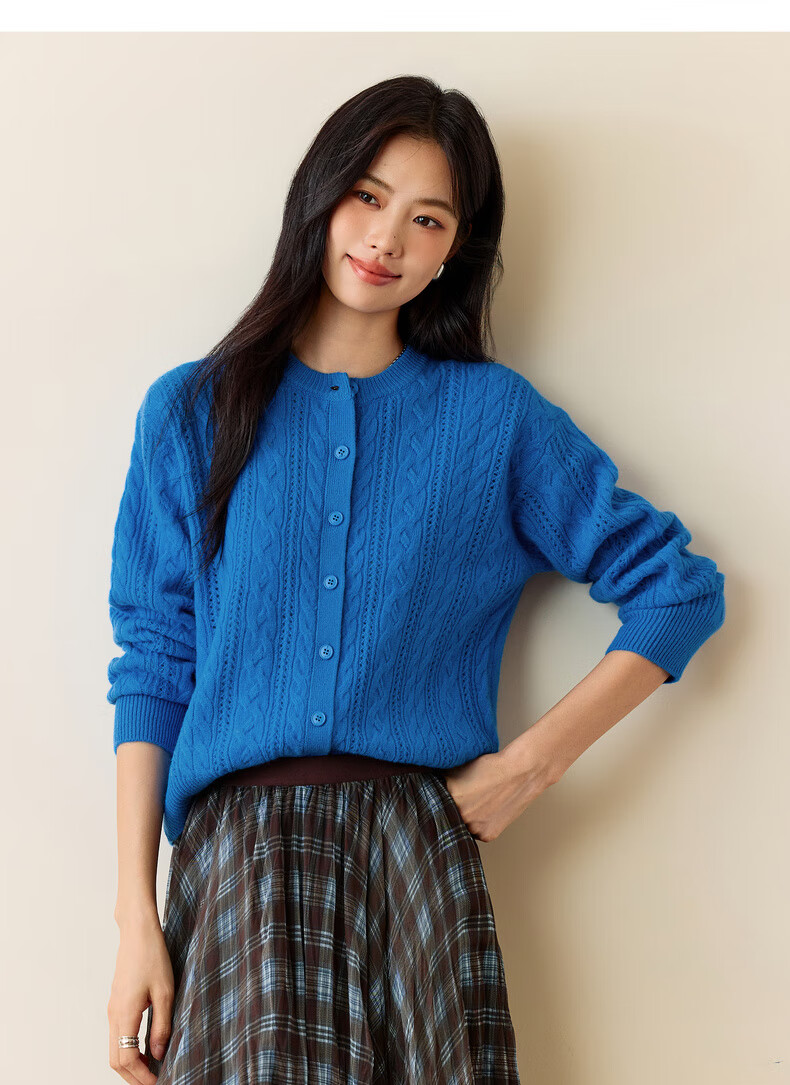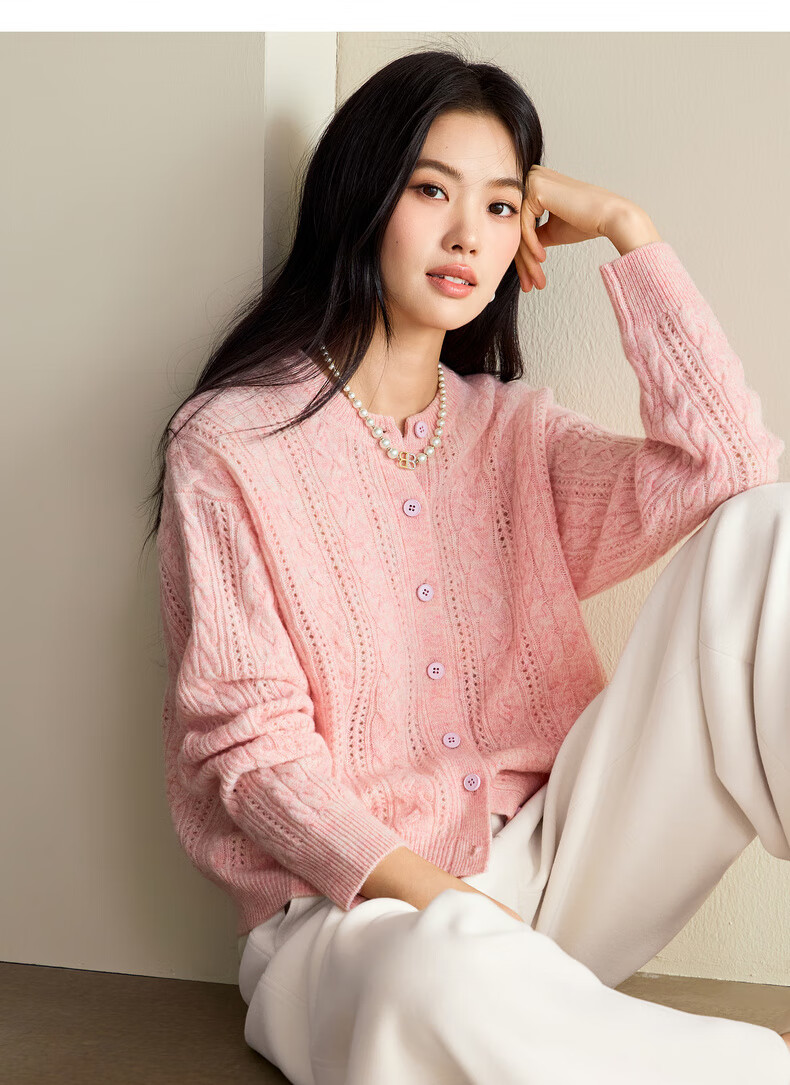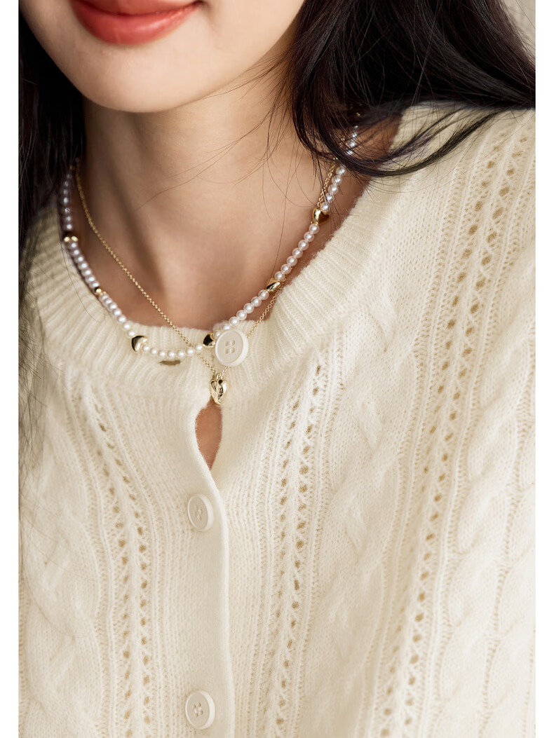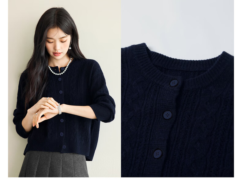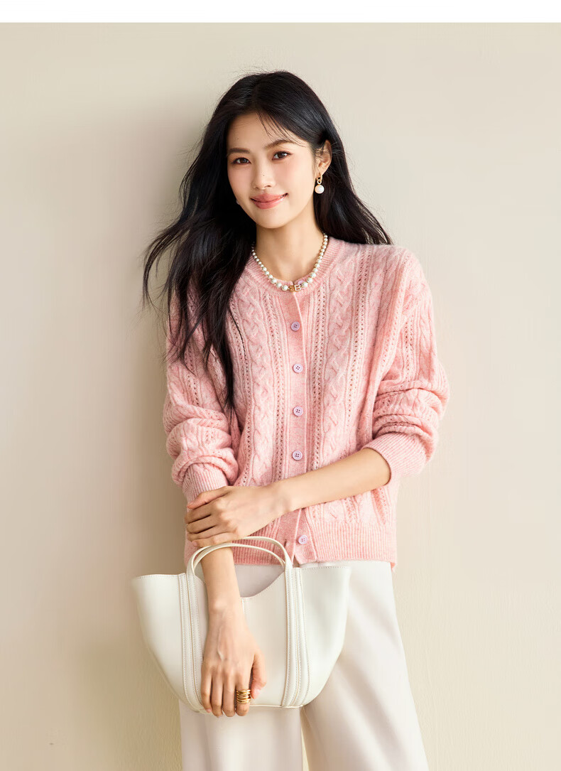 Eveli (eifini) Jiang Xin endorses Eveli fashion simple cable knitted cardigan for women 25 autumn new versatile casual commuting off-white M 105-115Jin Jin equals 0.5 kg