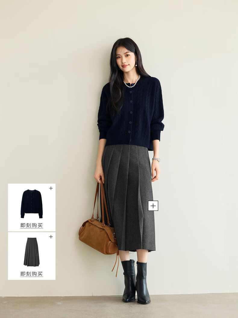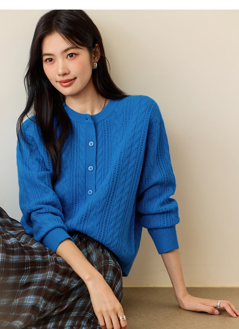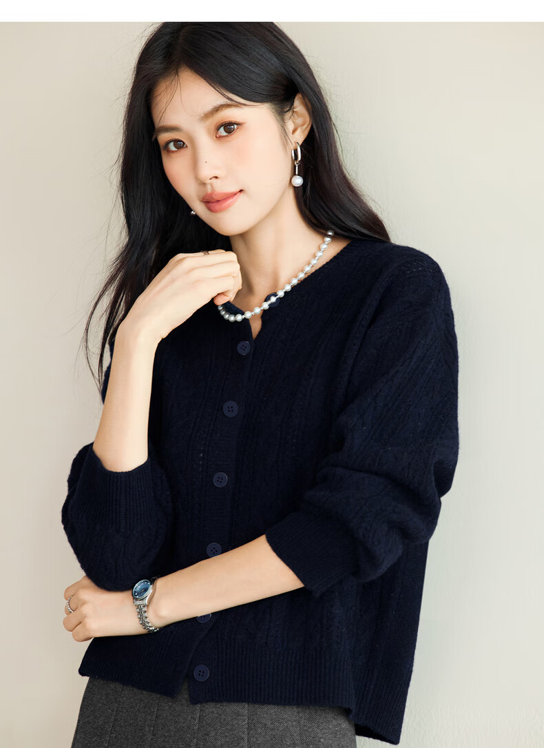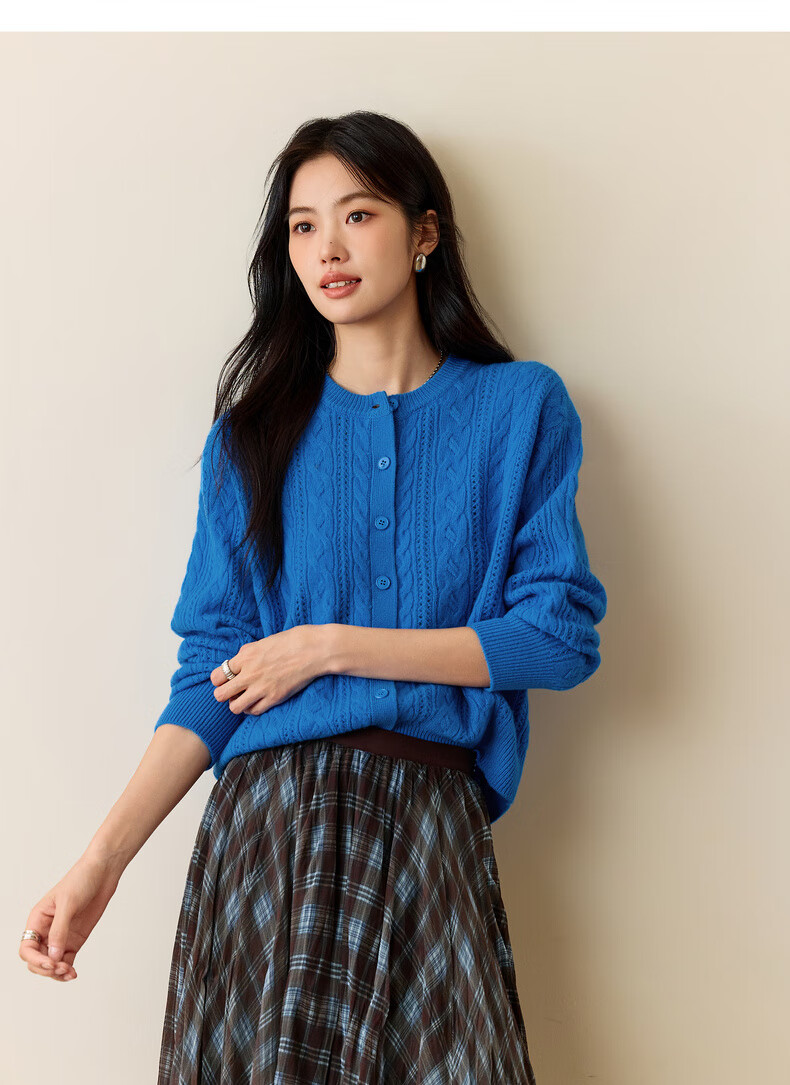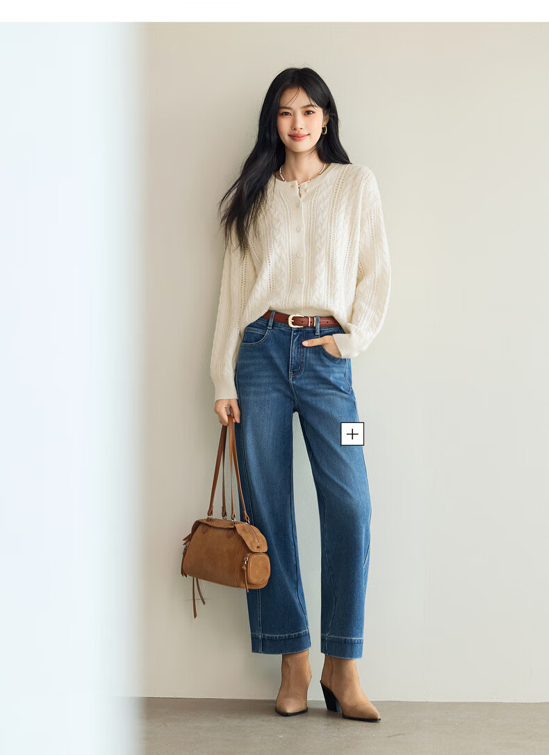 Eveli (eifini) Jiang Xin endorses Eveli fashion simple cable knitted cardigan for women 25 autumn new versatile casual commuting off-white M 105-115Jin Jin equals 0.5 kg