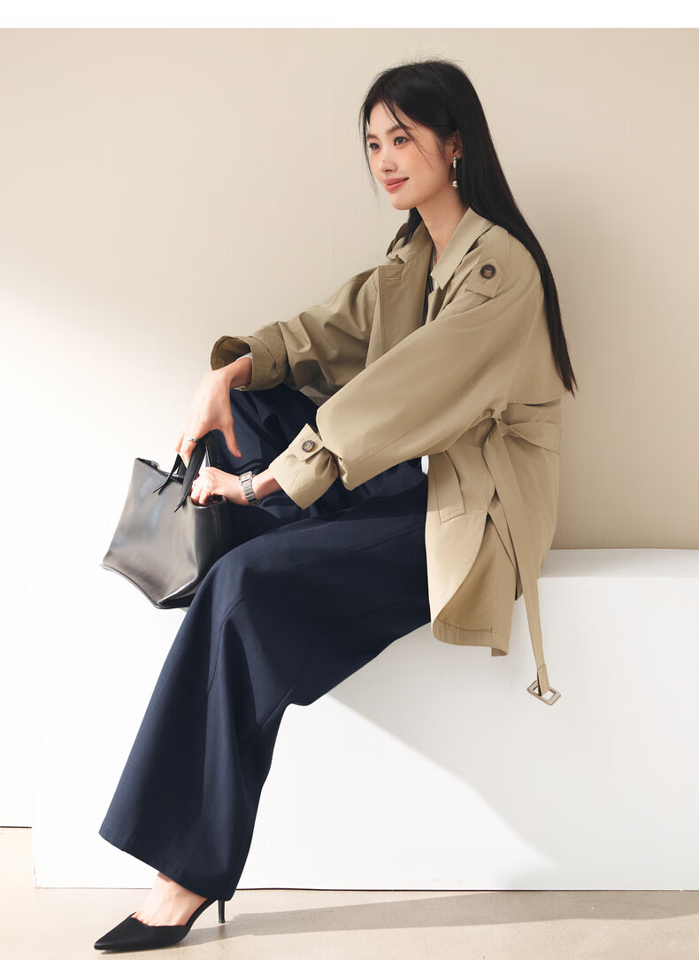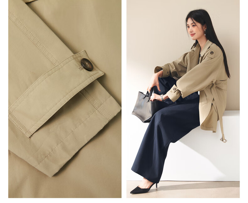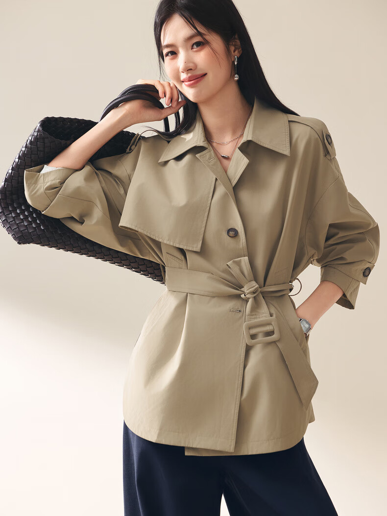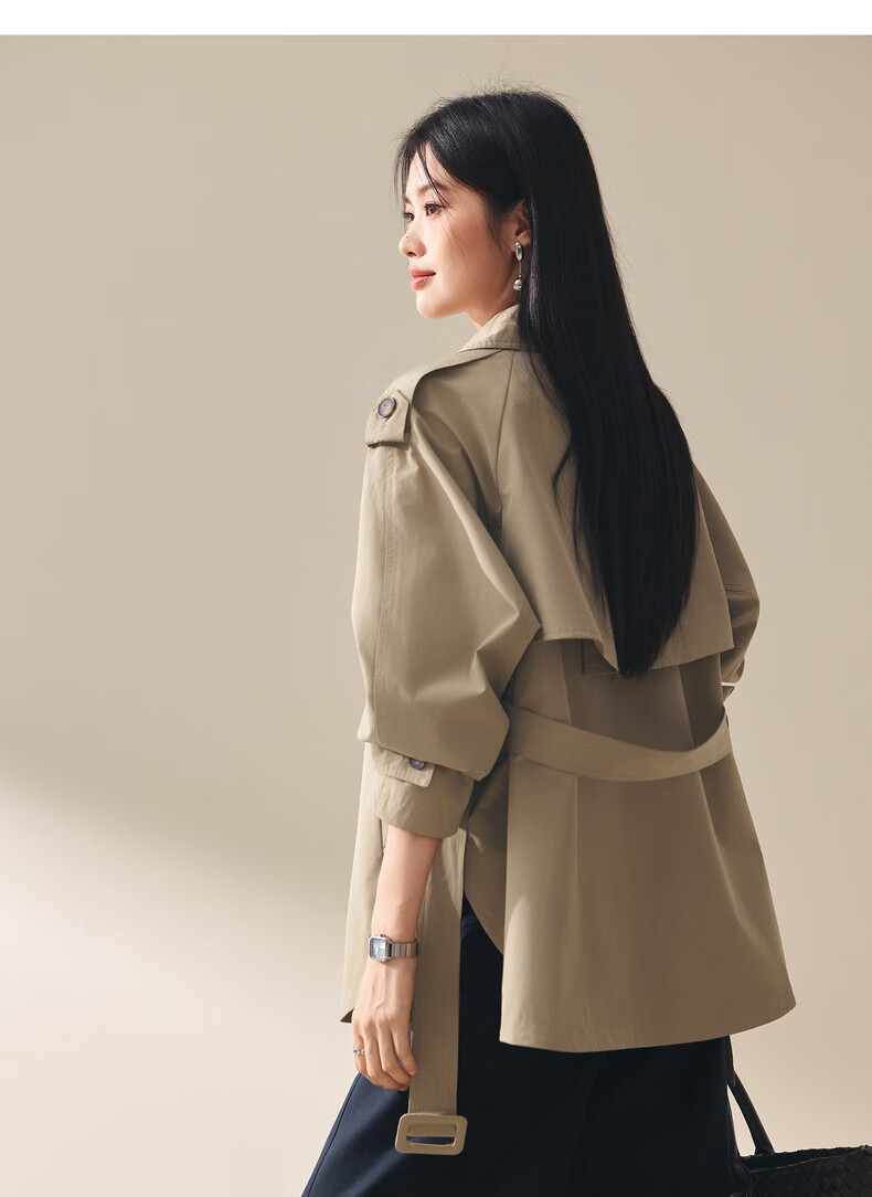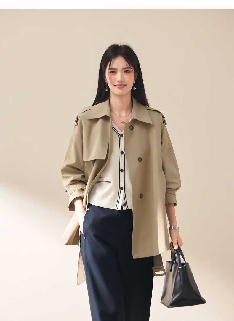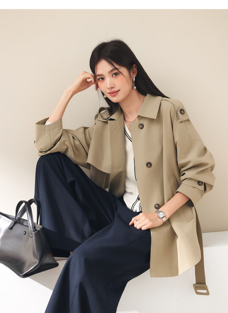 Eifini (eifini) Eifini classic micro-wide anti-wrinkle one-hand-length windbreaker for women 2025 autumn new Barn style commuter temperament coat Khaki S 80-110Jin Jin is equal to 0.5 kg