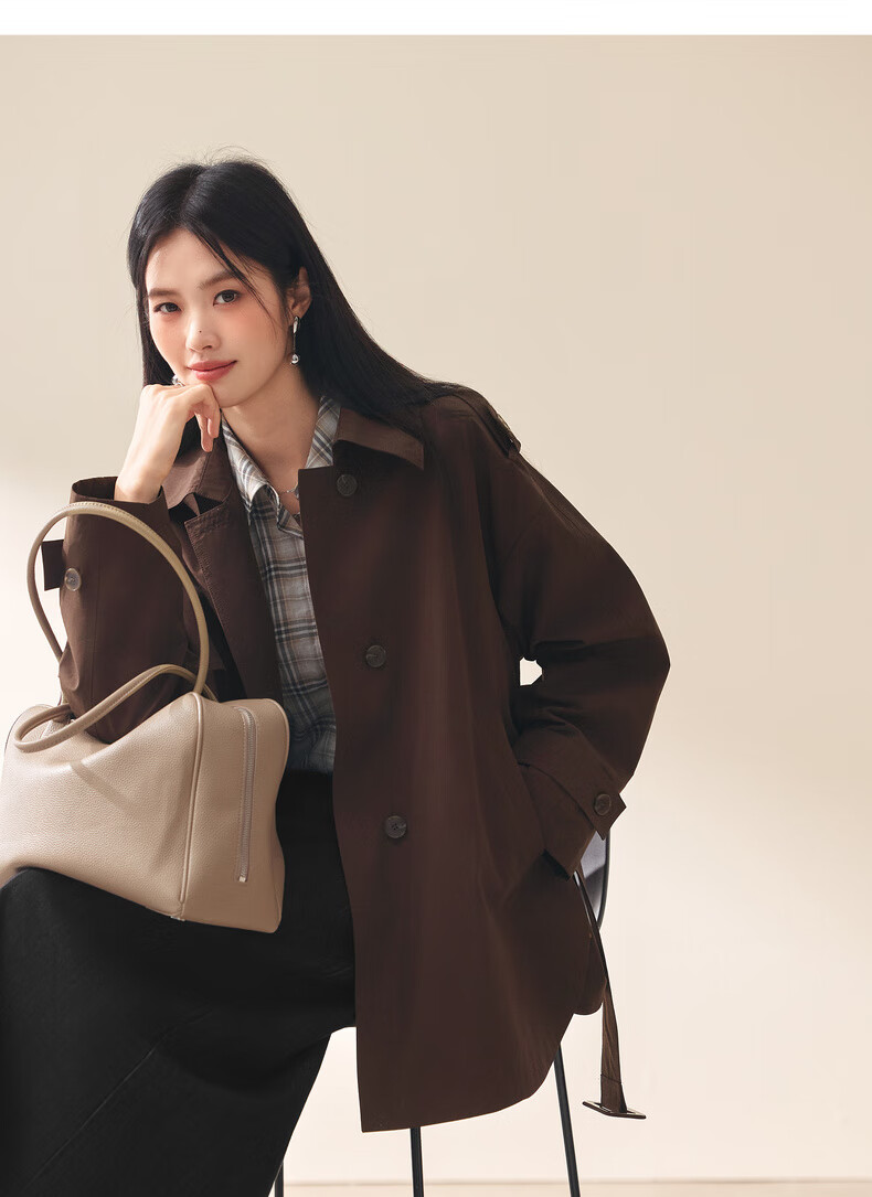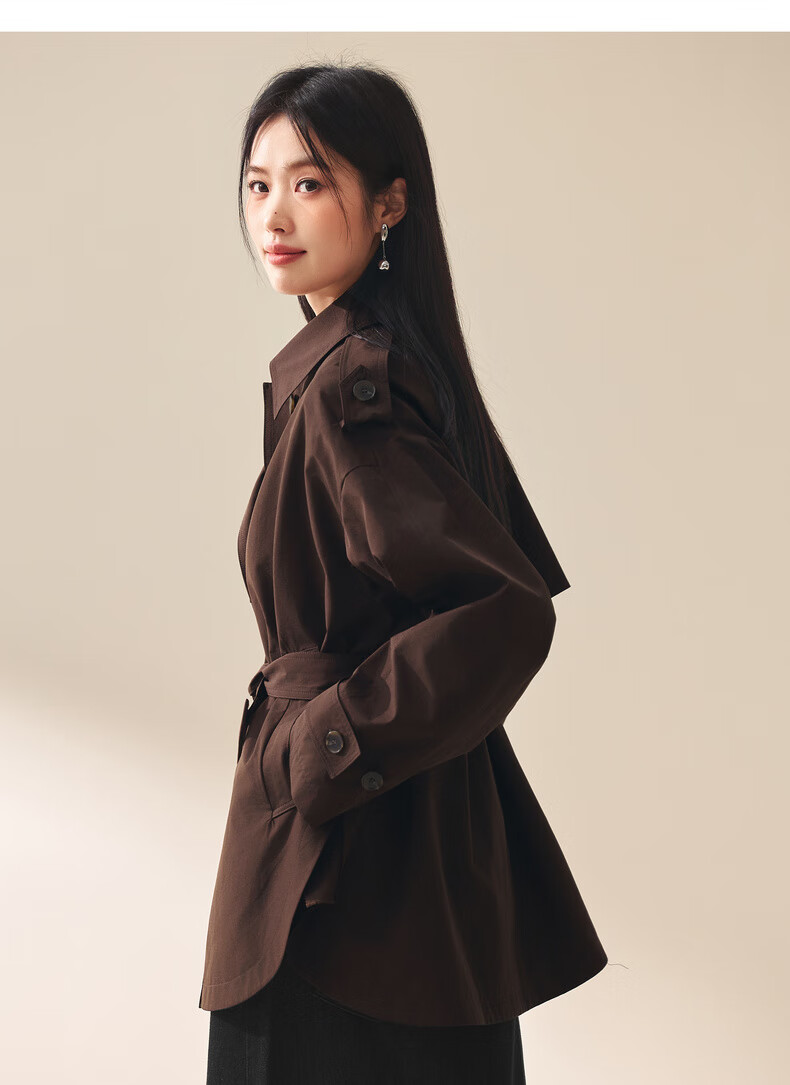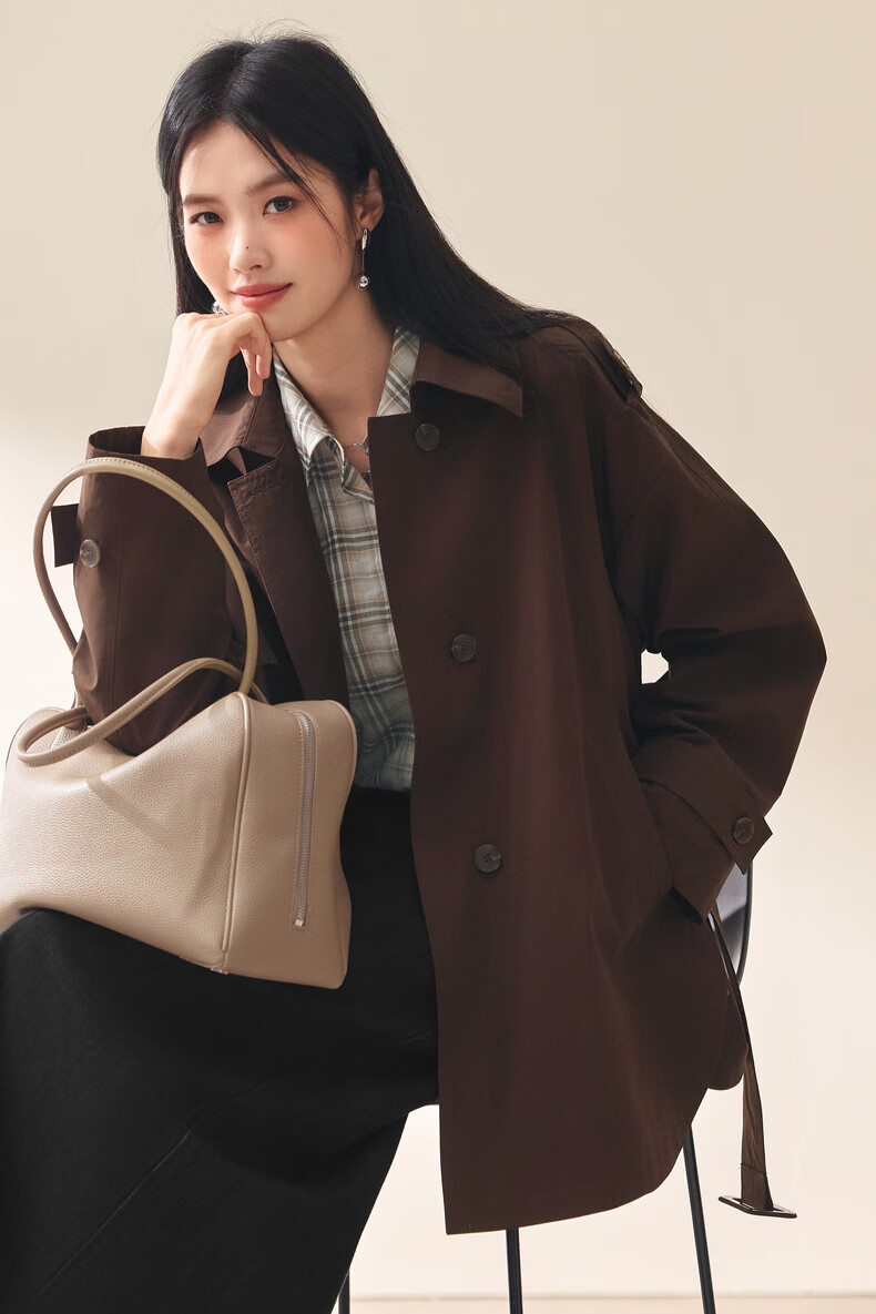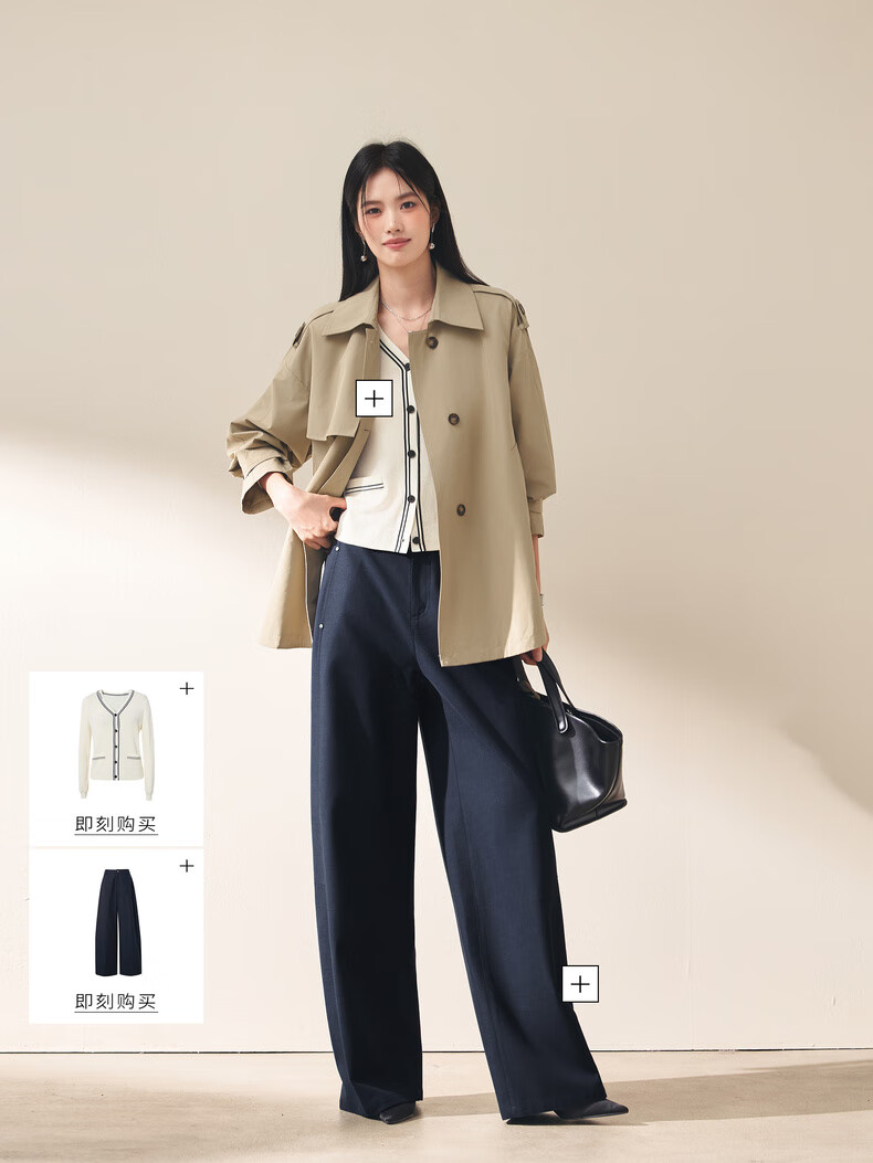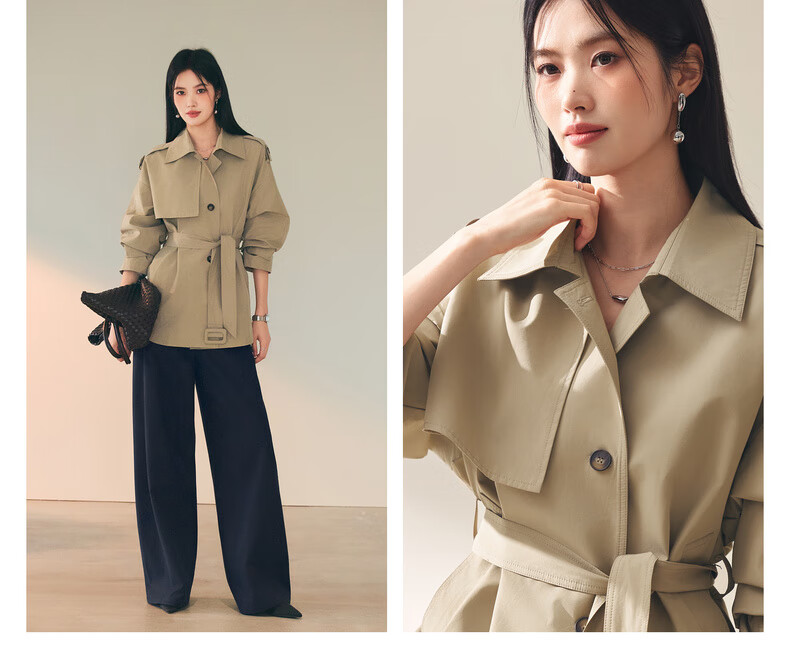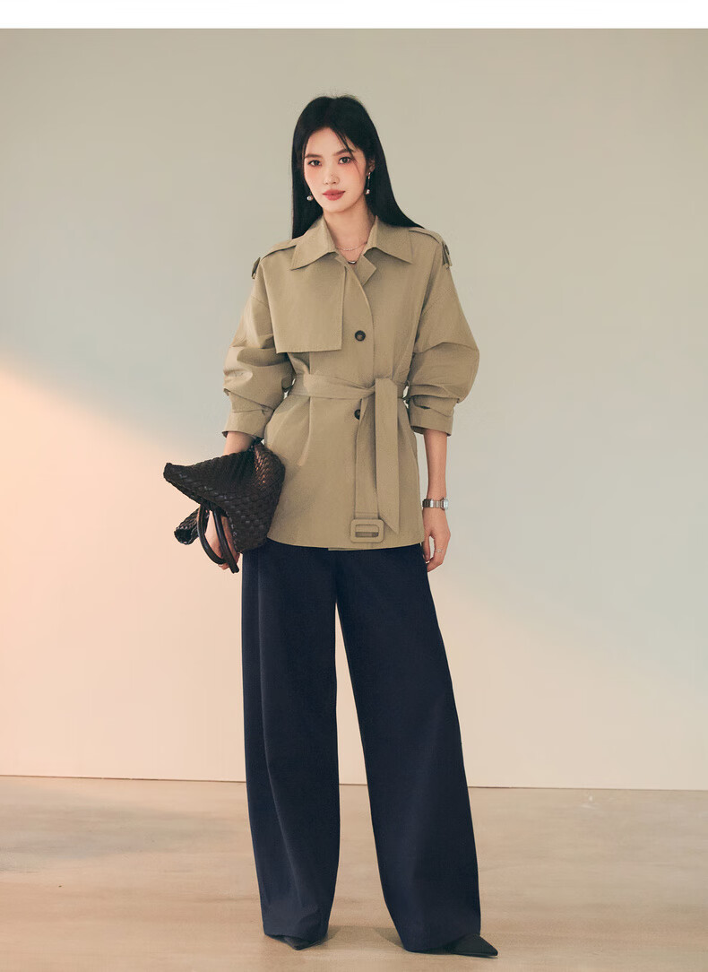 Eifini (eifini) Eifini classic micro-wide anti-wrinkle one-hand-length windbreaker for women 2025 autumn new Barn style commuter temperament coat Khaki S 80-110Jin Jin is equal to 0.5 kg