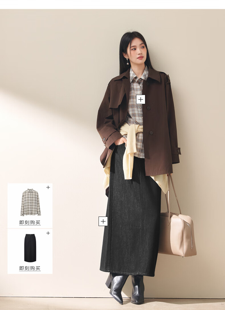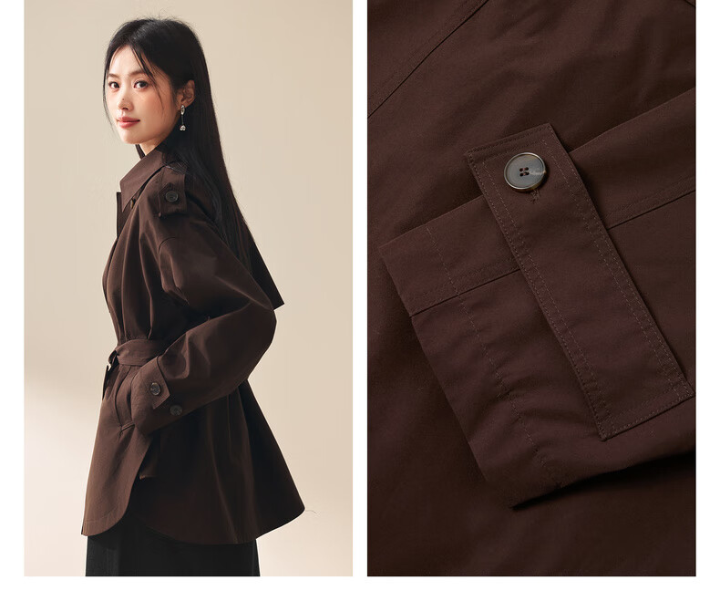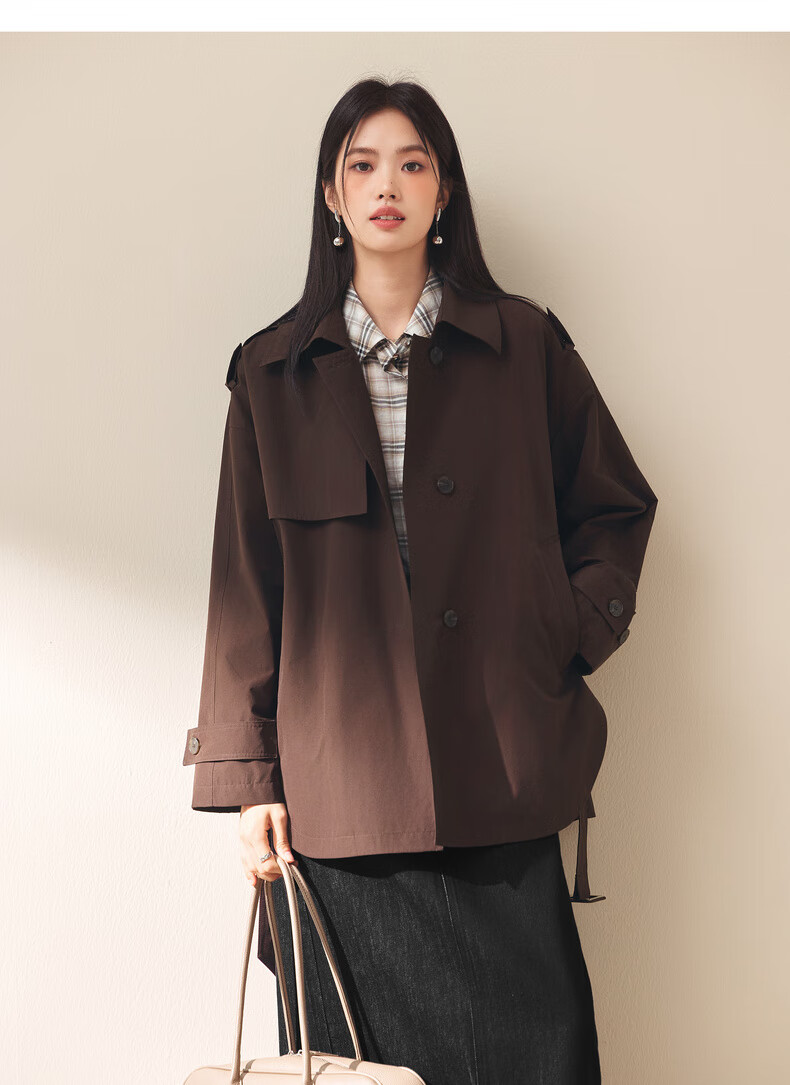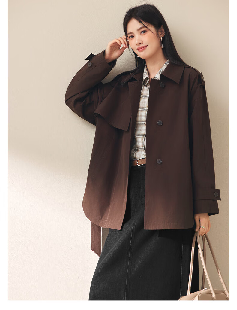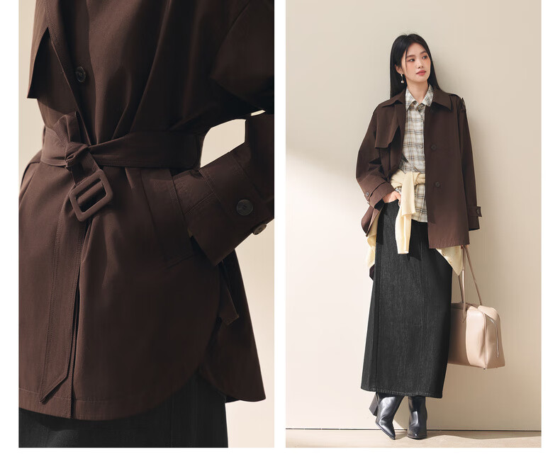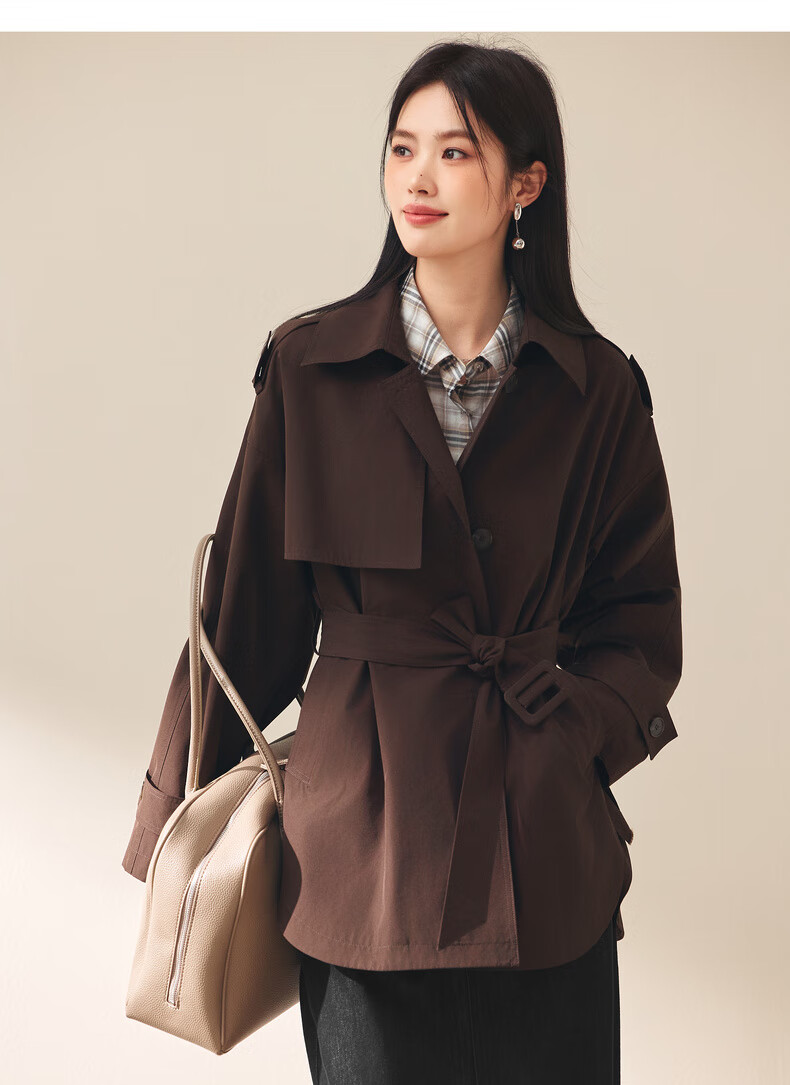 Eifini (eifini) Eifini classic micro-wide anti-wrinkle one-hand-length windbreaker for women 2025 autumn new Barn style commuter temperament coat Khaki S 80-110Jin Jin is equal to 0.5 kg