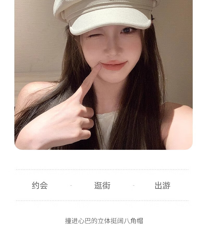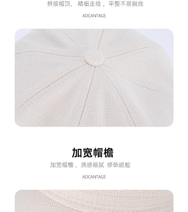 Lurang Song Octagonal Beret Hat Women's 2025 New Autumn and Winter Big Head Circumference White Versatile Face Showing Small Retro Newsboy Painter Hat CD079 Beret Octagonal Hat Beige One Size (54-58cm)