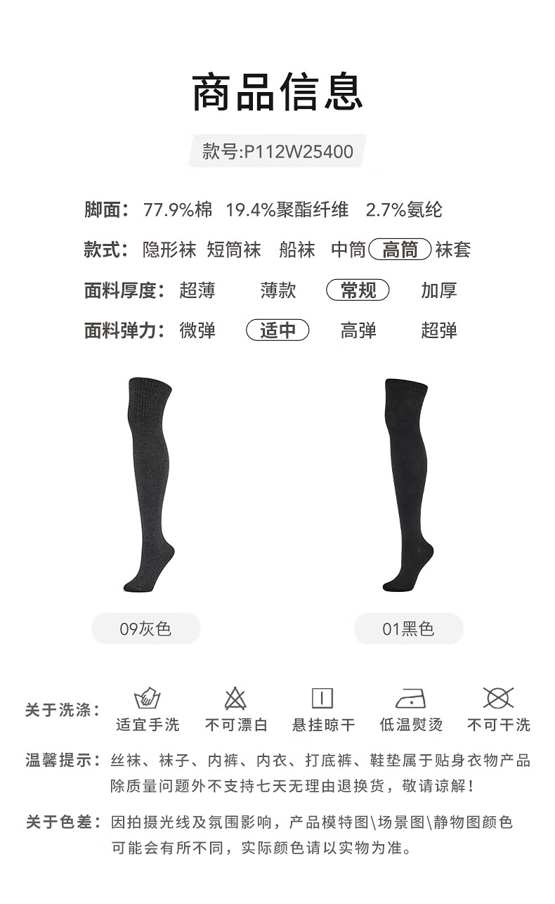 Hotwind 2025 Winter New Women's Basic Over-the-Knee Socks 01 Black 1 Pair One Size