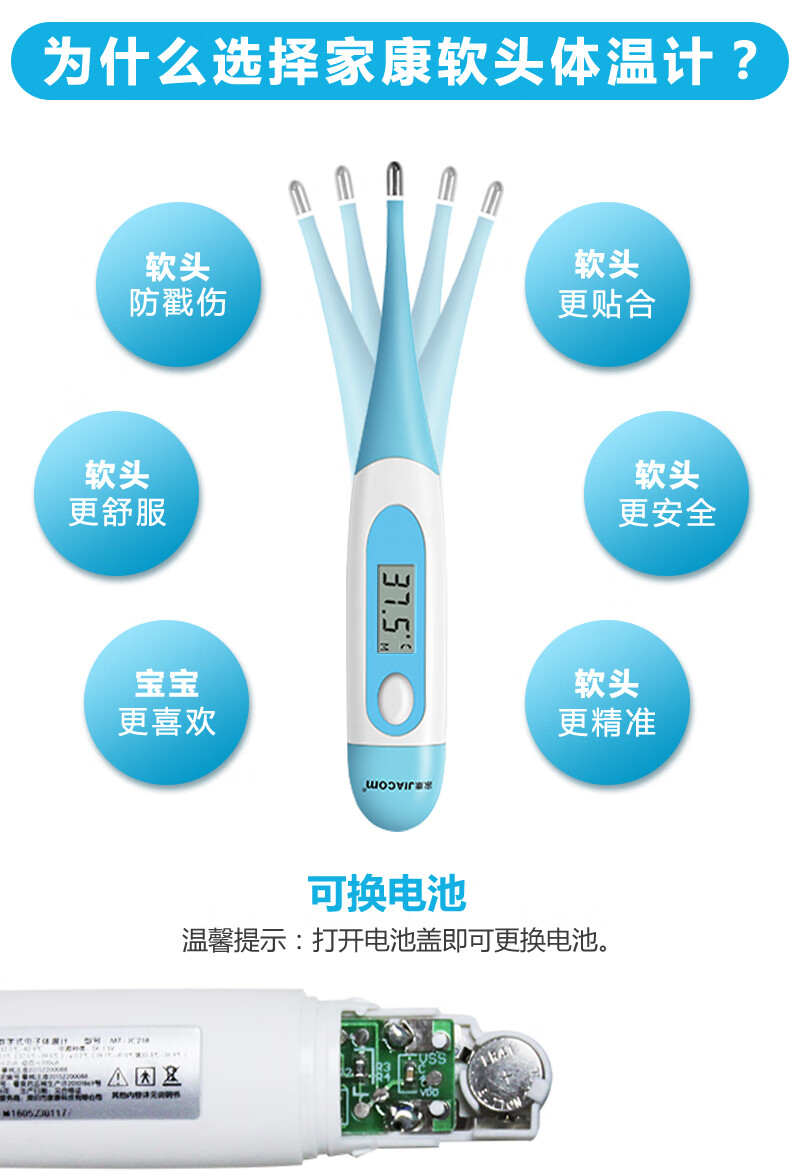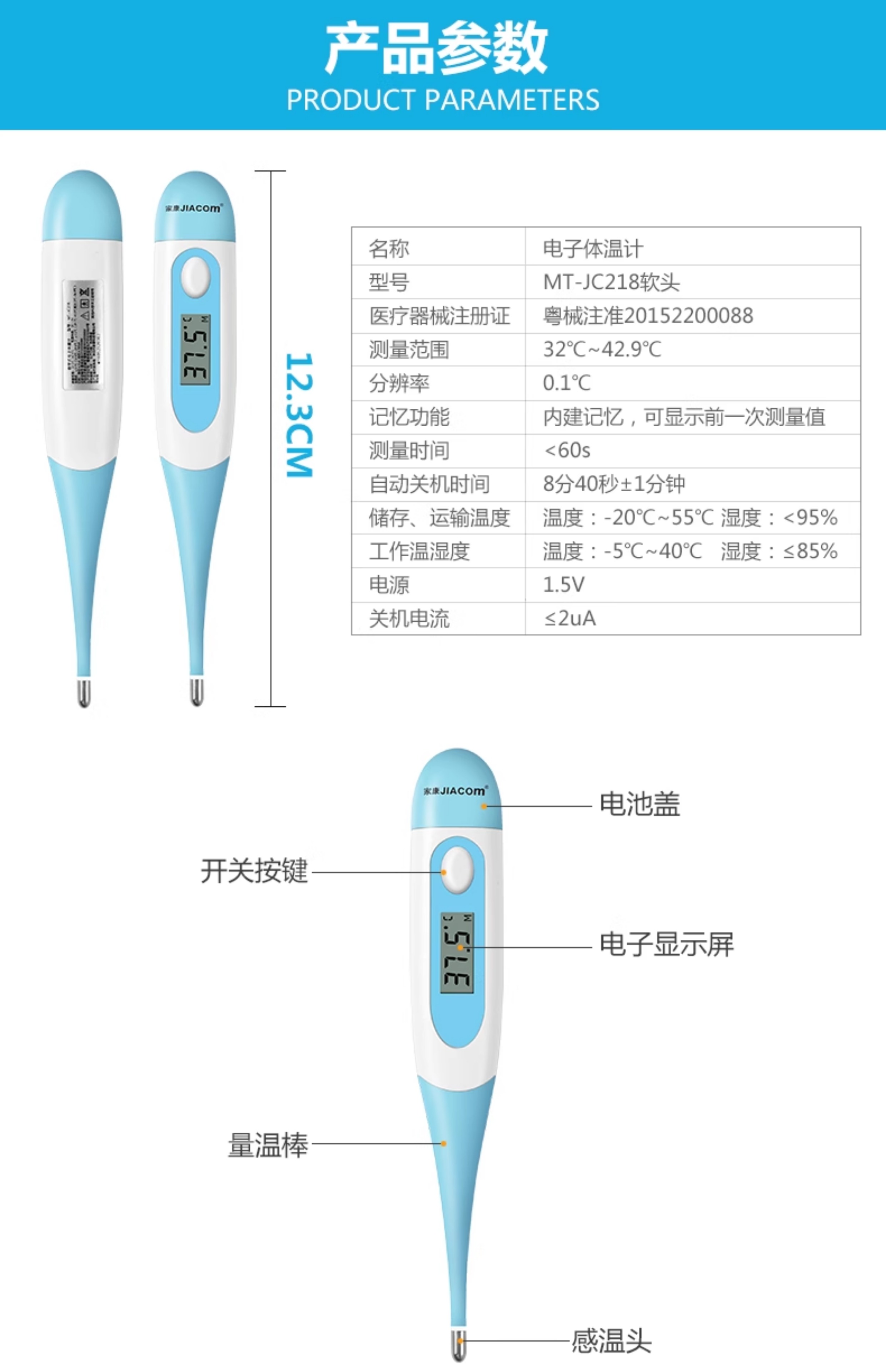 Jiakang electronic thermometer for the elderly, infants, children, adults, oral and armpit household medical grade precision thermometer 218 soft head electronic thermometer with storage box