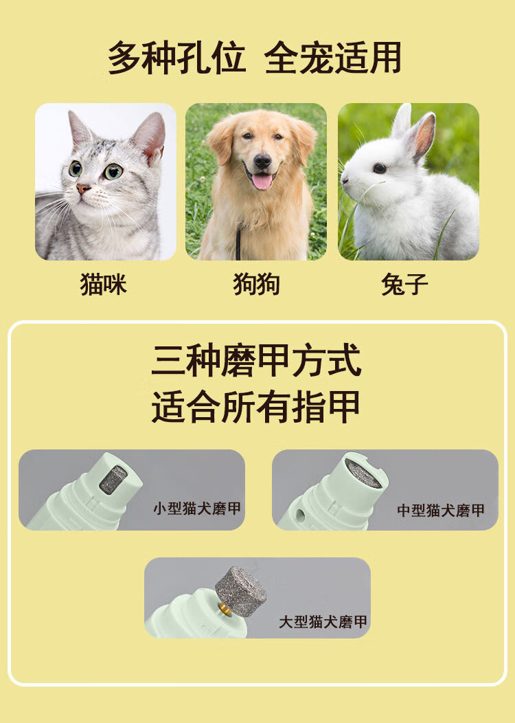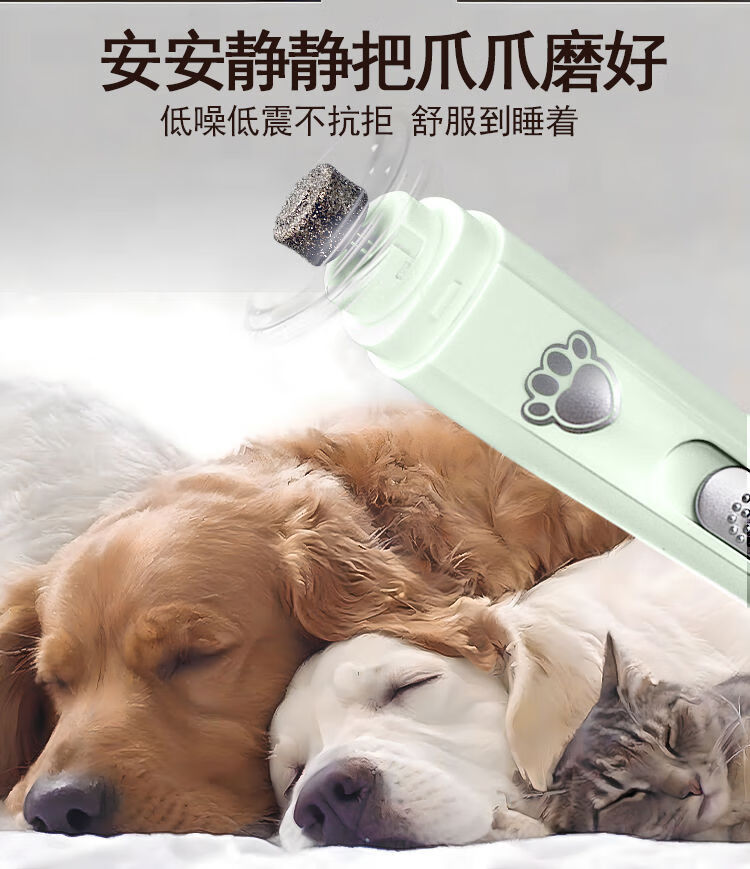 Dog nail scissors for large and small dogs, dog paw grinder, pet electric nail polisher, puppy trimmer and claw grinder, matcha green electric nail polisher