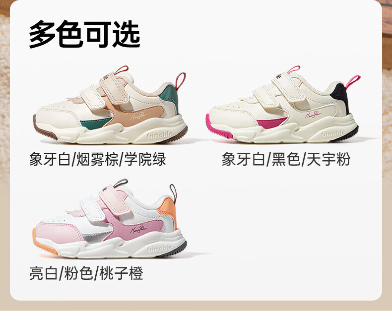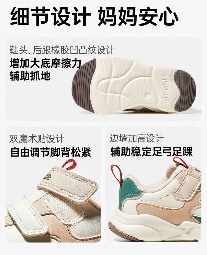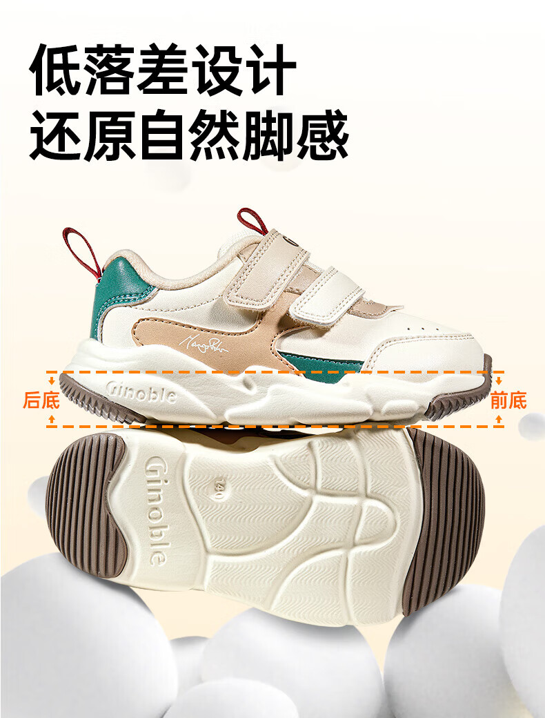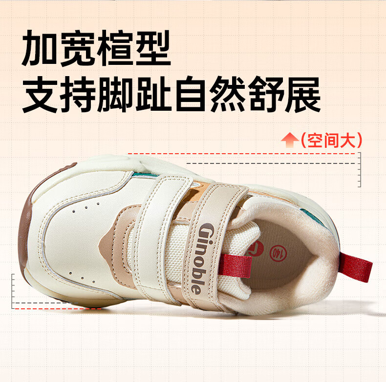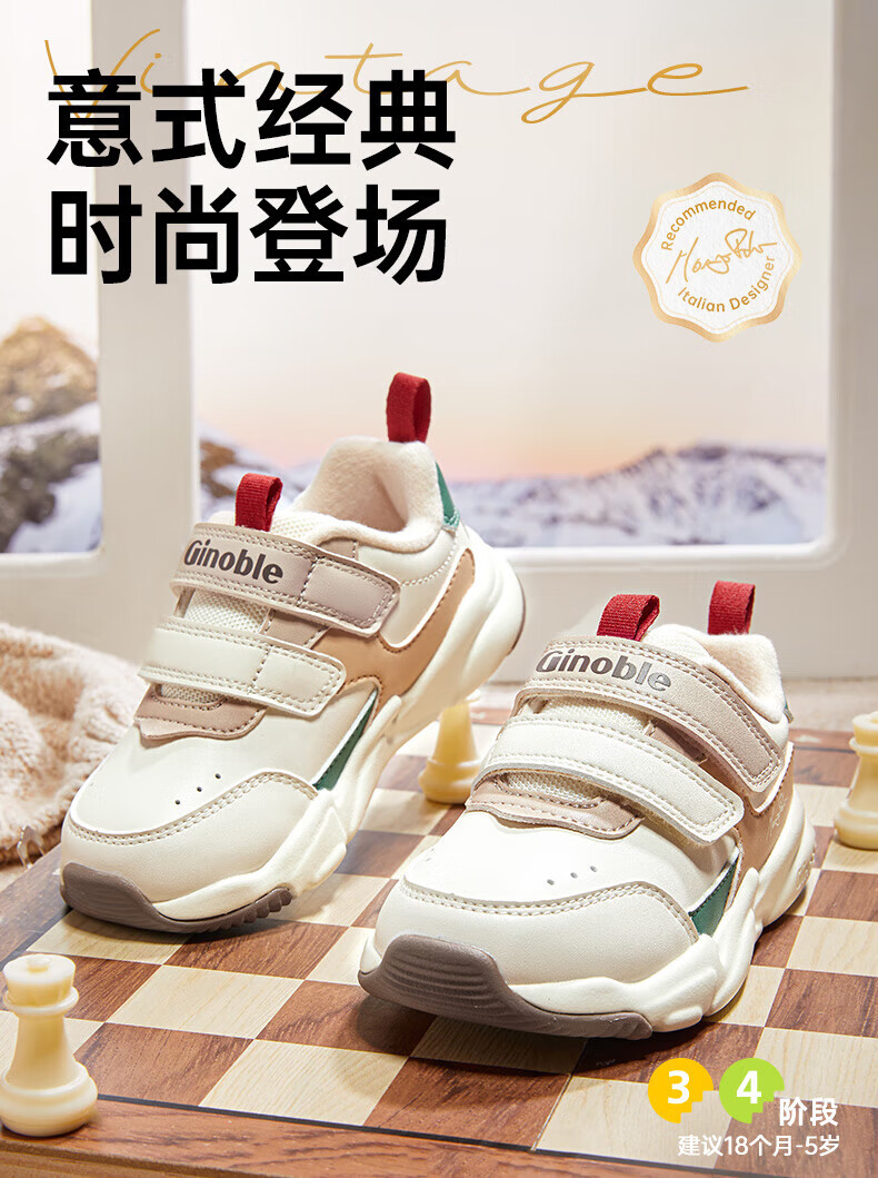 Genopu winter soft-soled comfortable toddler shoes for boys and girls 1-5 years old, trendy and versatile baby functional shoes GW1662 ivory white/smoke brown/college green 24 150mm suitable for foot length 146-155mm