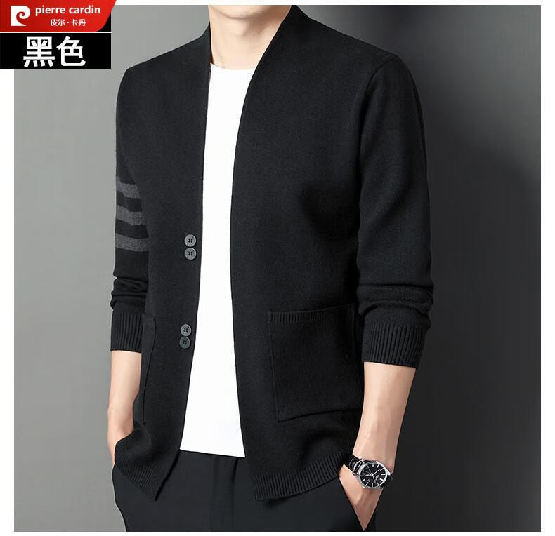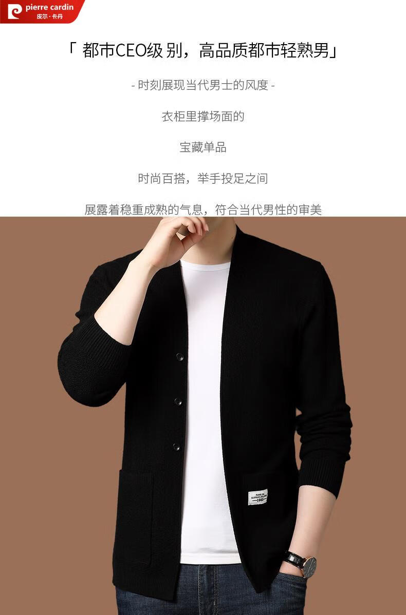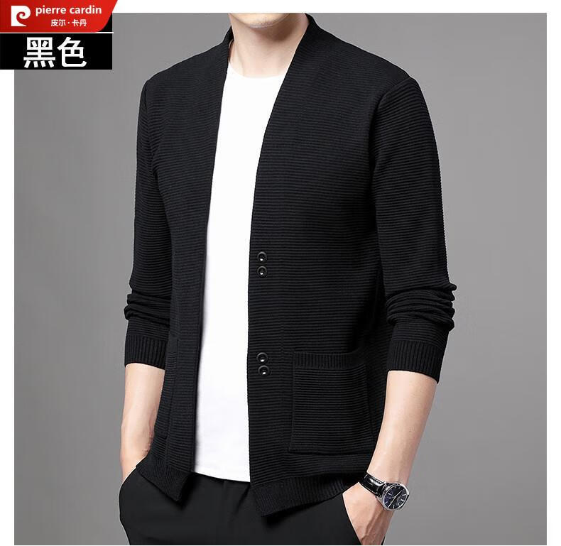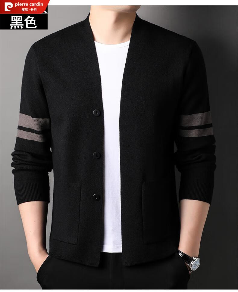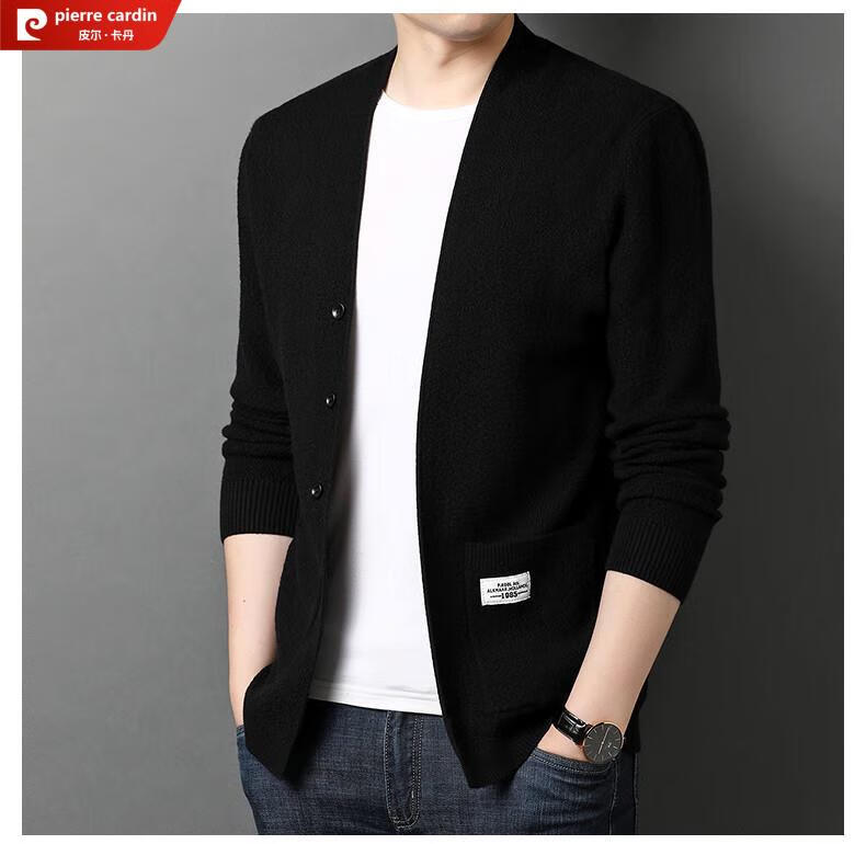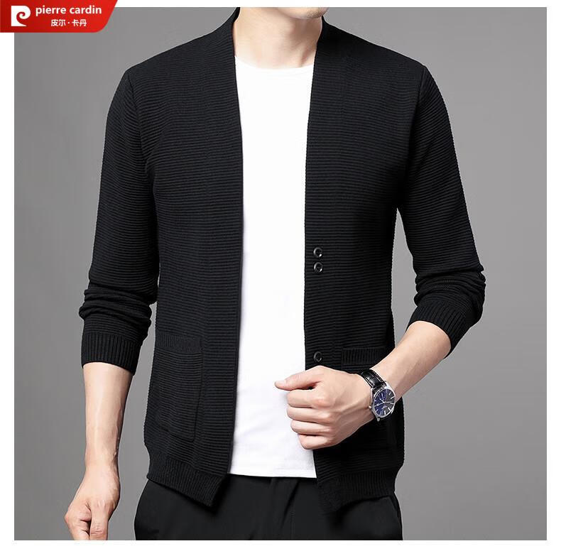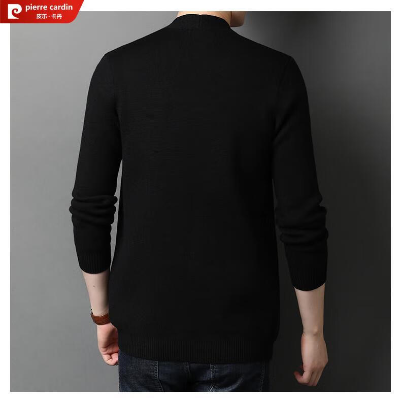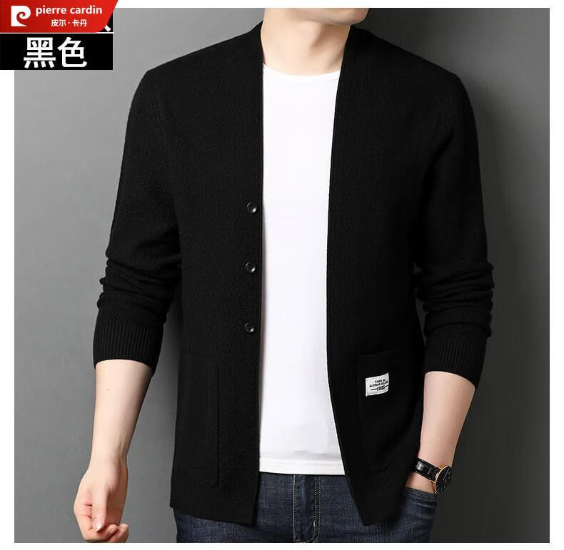 Pierre Cardin Machine Washable 100% Wool Sweater Knitted Cardigan Sweater Men's 2025 Spring and Autumn Casual Fashion High-End Jacket K1610-Black XL 175 Recommended 140-155Jin Jin equals 0.5kg