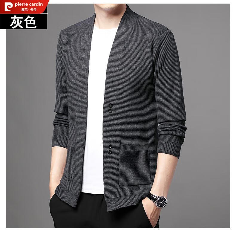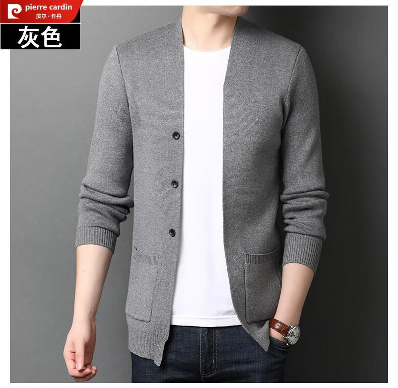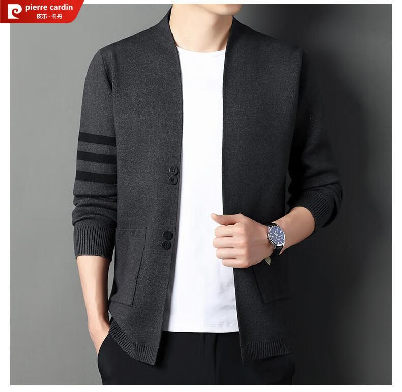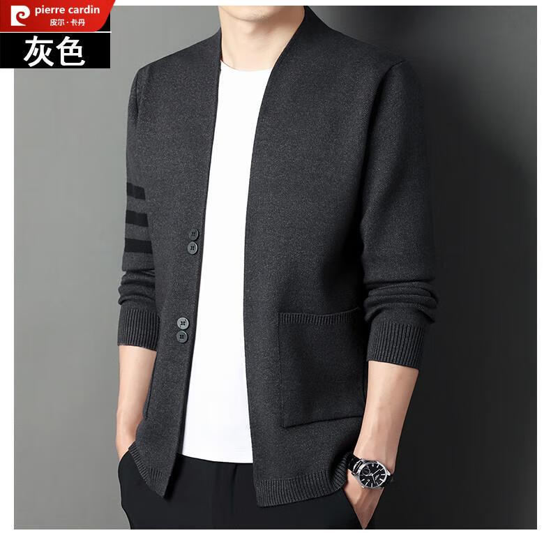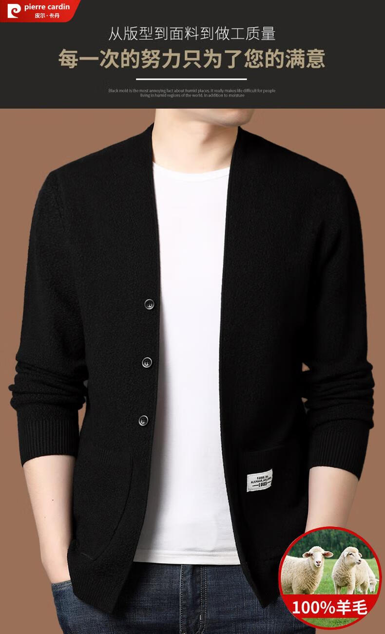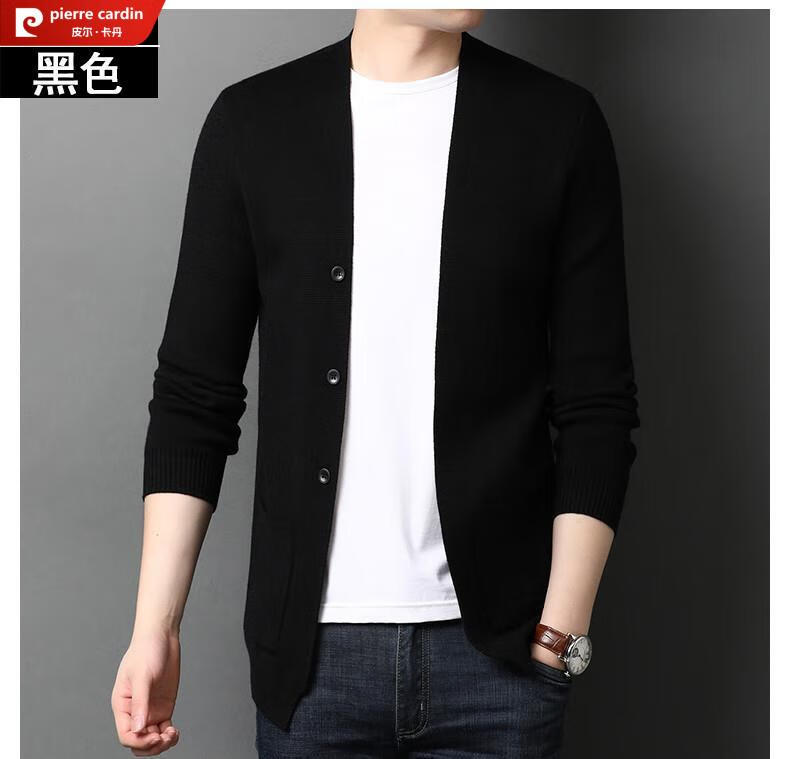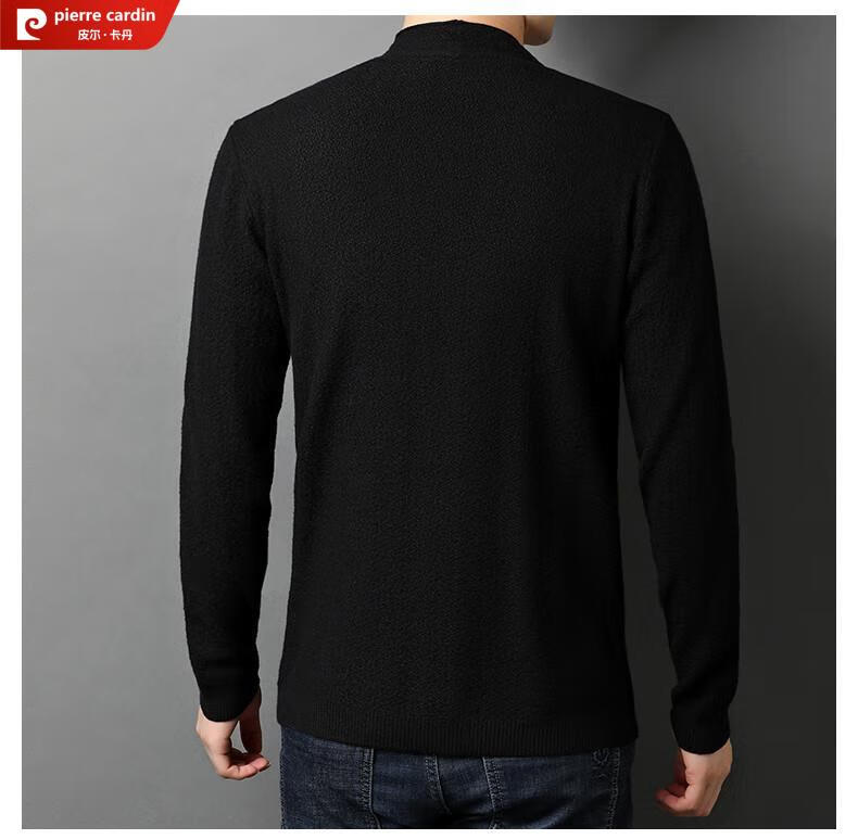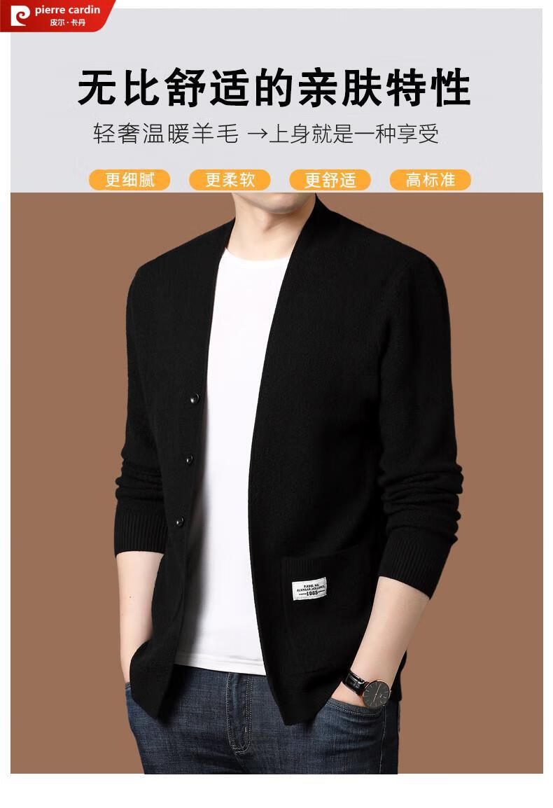 Pierre Cardin Machine Washable 100% Wool Sweater Knitted Cardigan Sweater Men's 2025 Spring and Autumn Casual Fashion High-End Jacket K1610-Black XL 175 Recommended 140-155Jin Jin equals 0.5kg