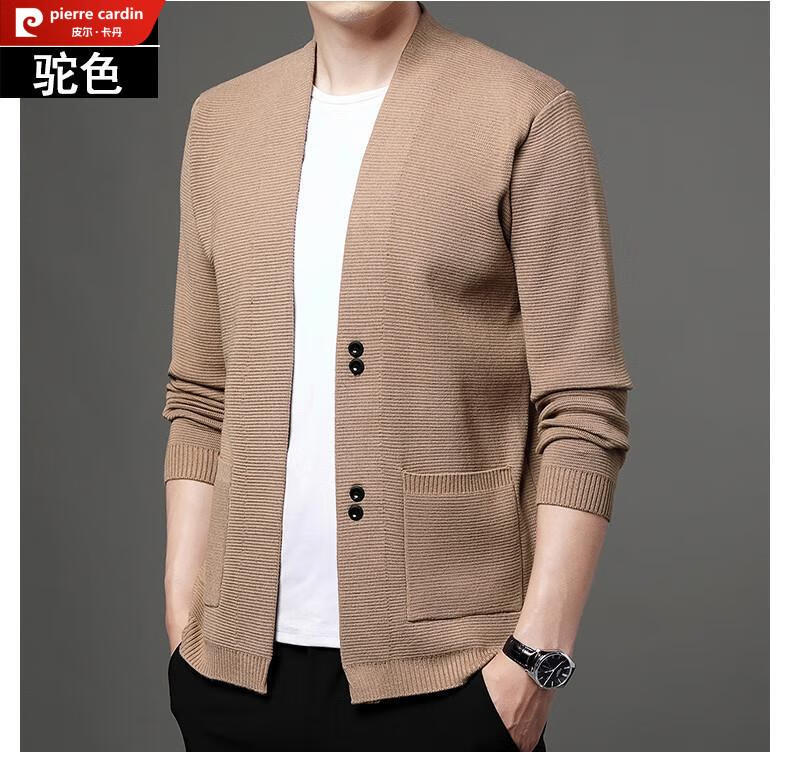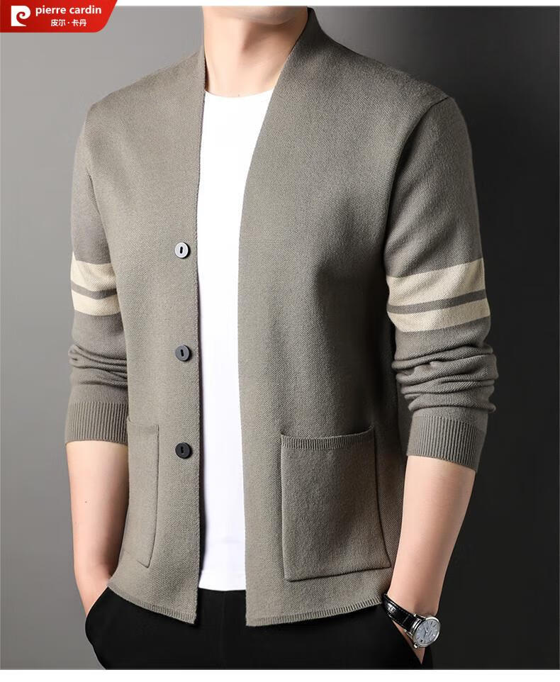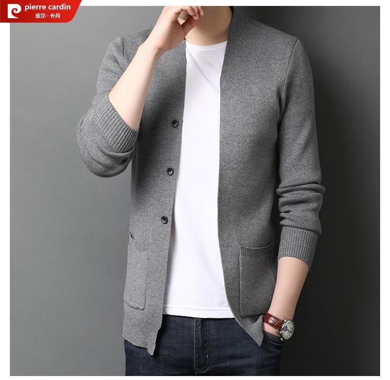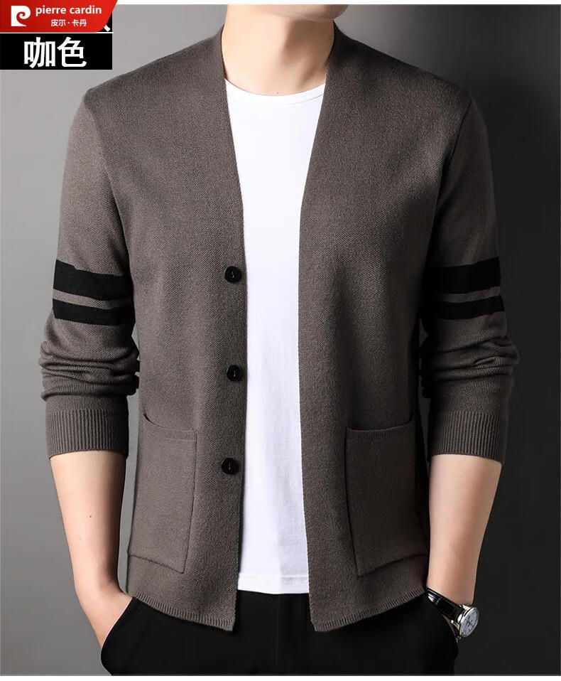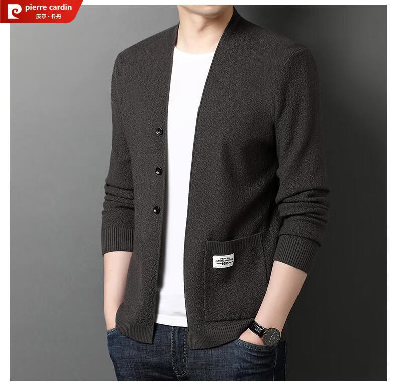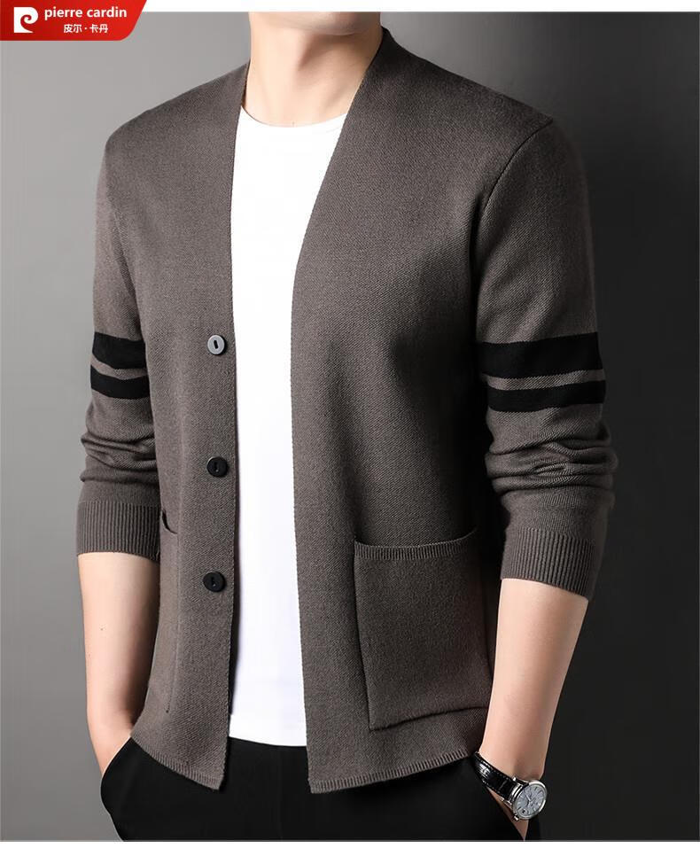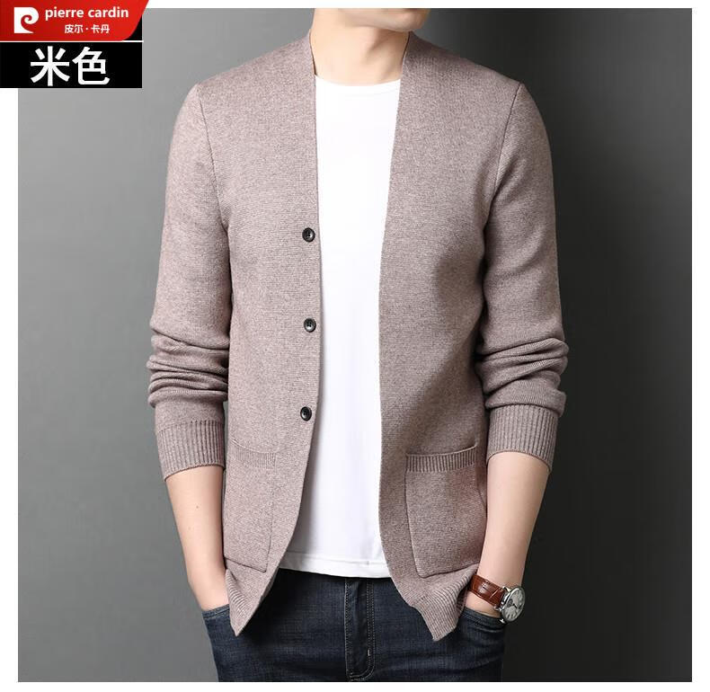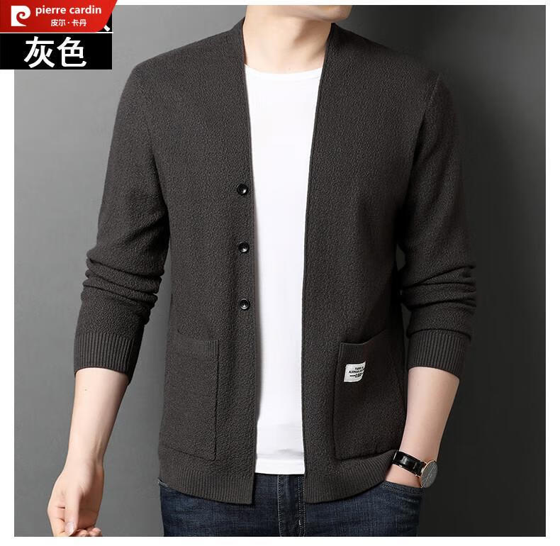 Pierre Cardin Machine Washable 100% Wool Sweater Knitted Cardigan Sweater Men's 2025 Spring and Autumn Casual Fashion High-End Jacket K1610-Black XL 175 Recommended 140-155Jin Jin equals 0.5kg
