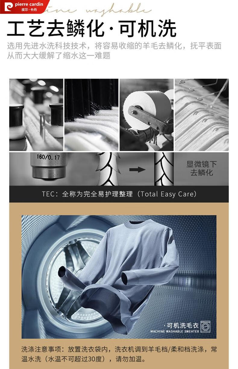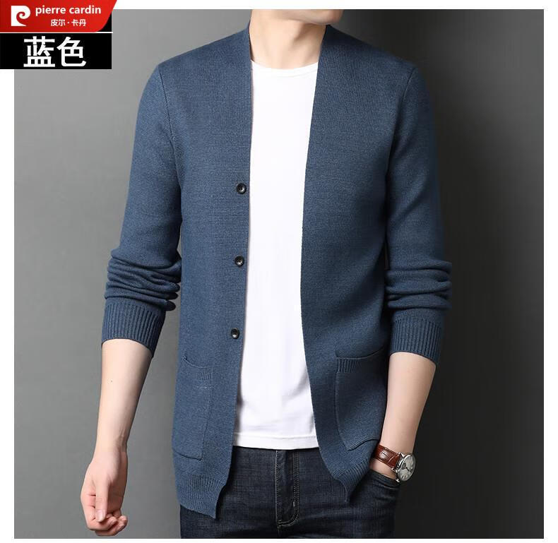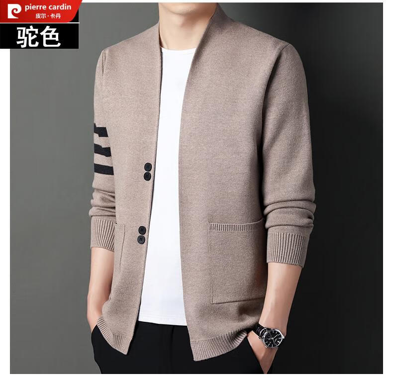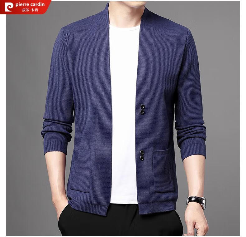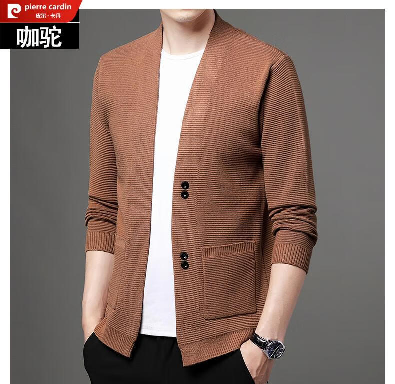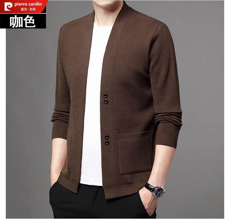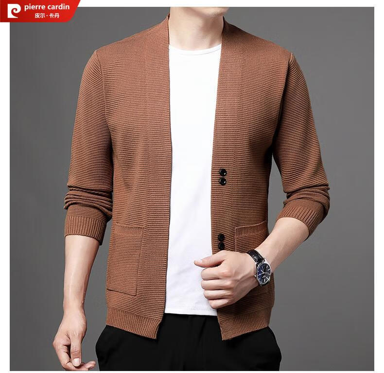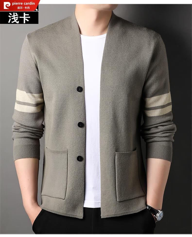 Pierre Cardin Machine Washable 100% Wool Sweater Knitted Cardigan Sweater Men's 2025 Spring and Autumn Casual Fashion High-End Jacket K1610-Black XL 175 Recommended 140-155Jin Jin equals 0.5kg
