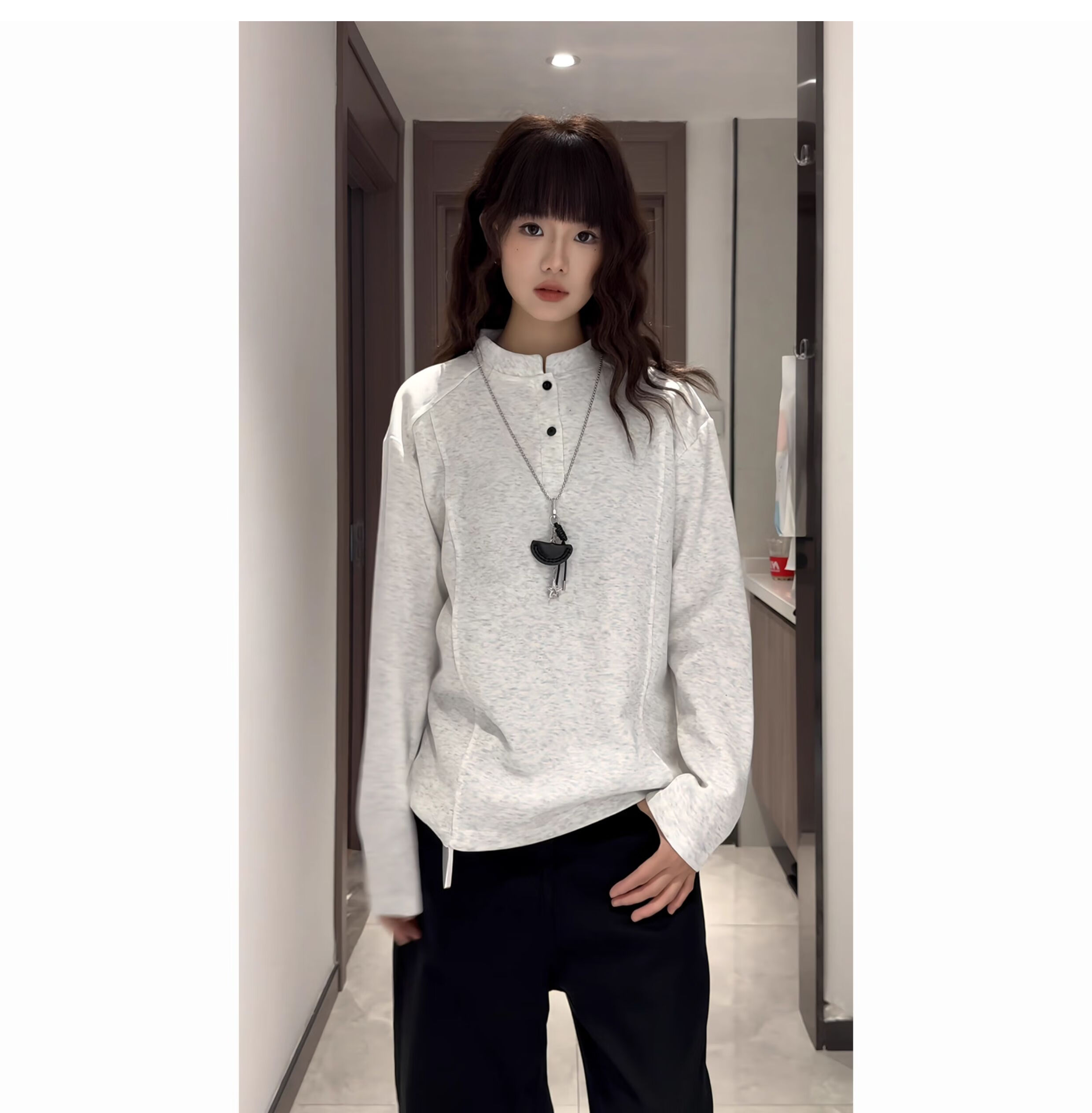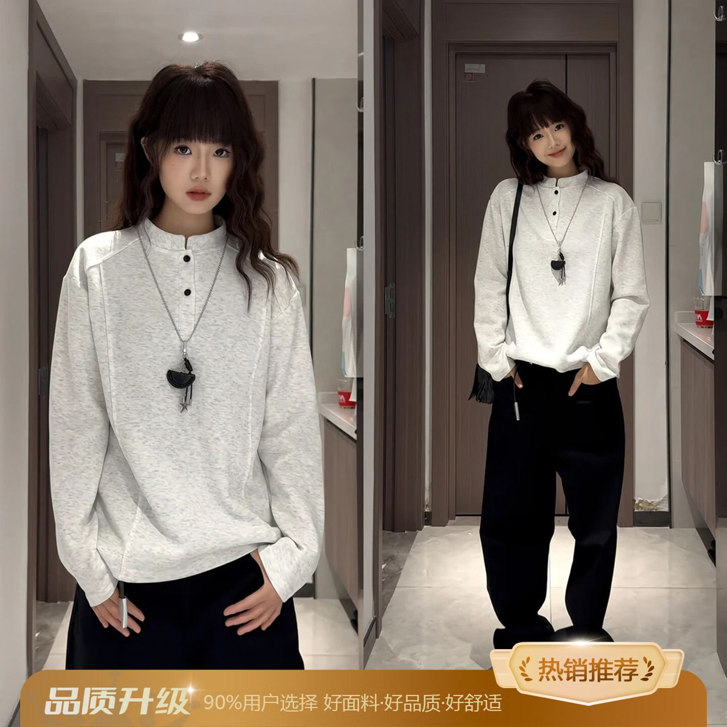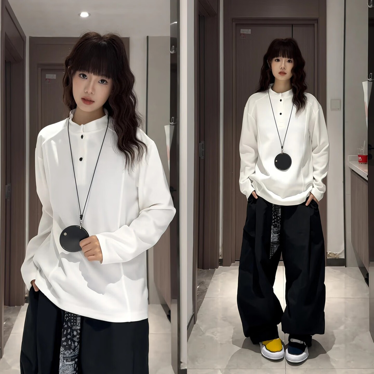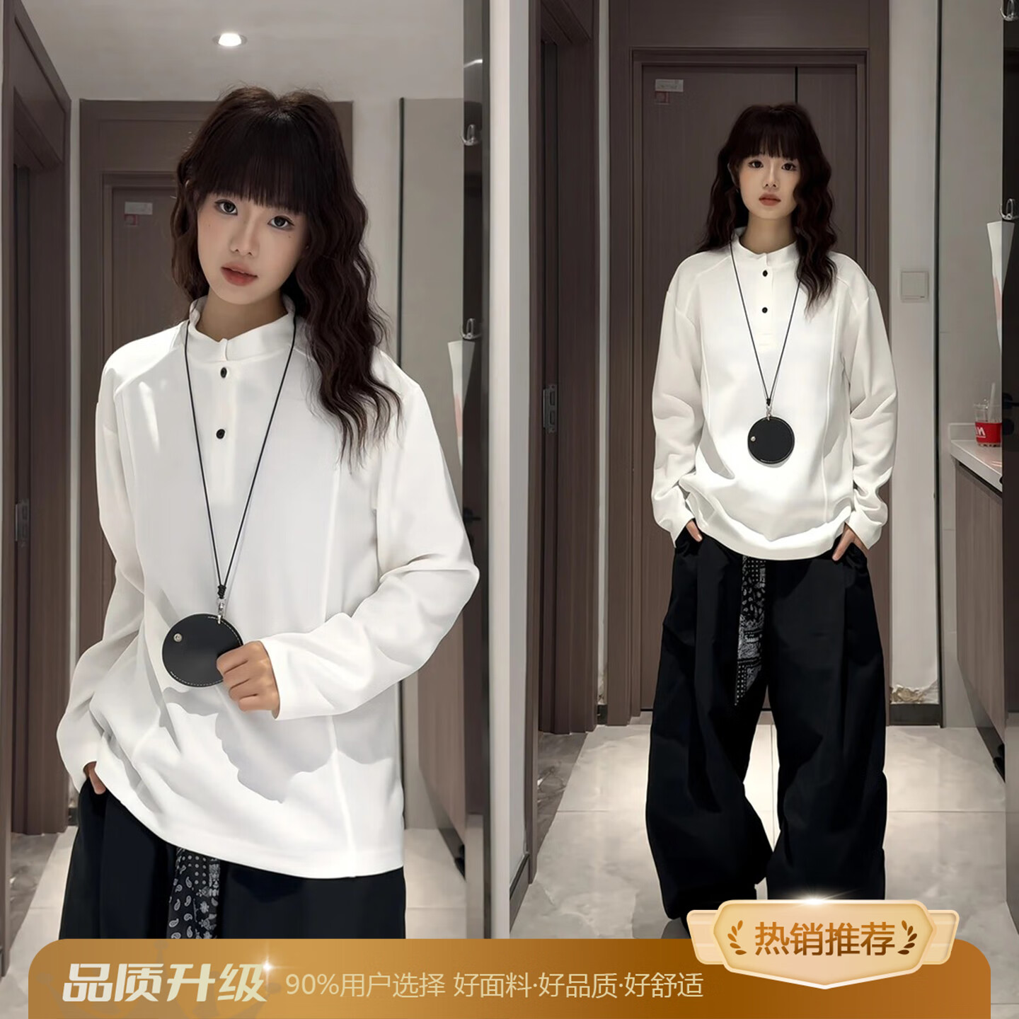 Autumn popular popular Henry collar sweatshirt for men and women heavyweight long-sleeved T-shirt bottoming shirt trendy high-end polo shirt for men white 2XL recommended 145-160Jin Jin equals 0.5 kg