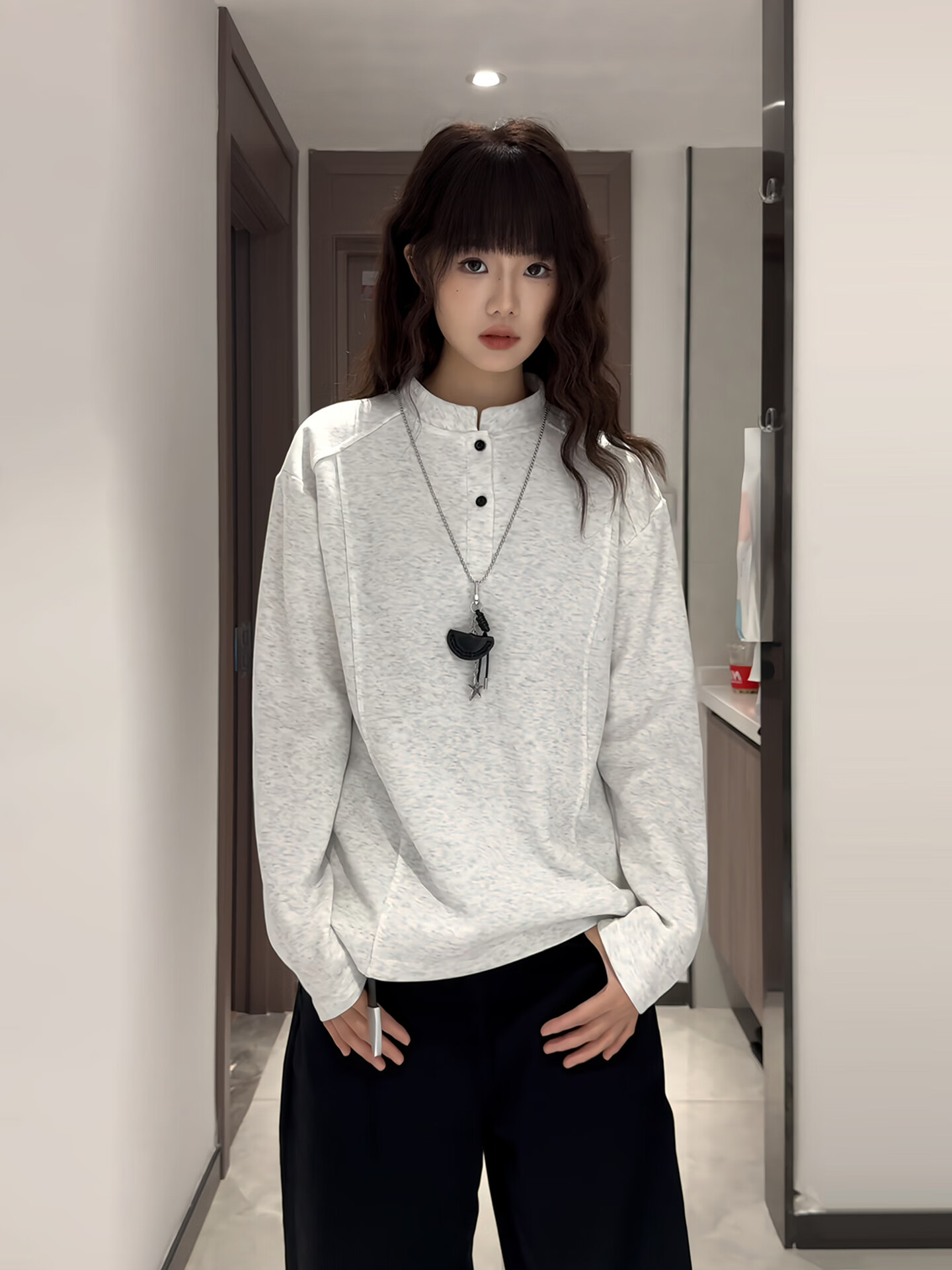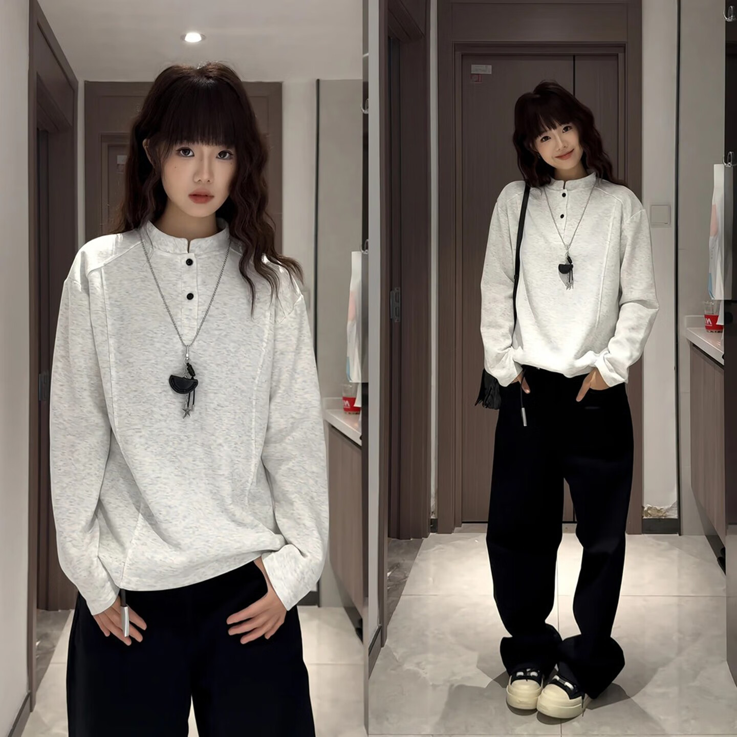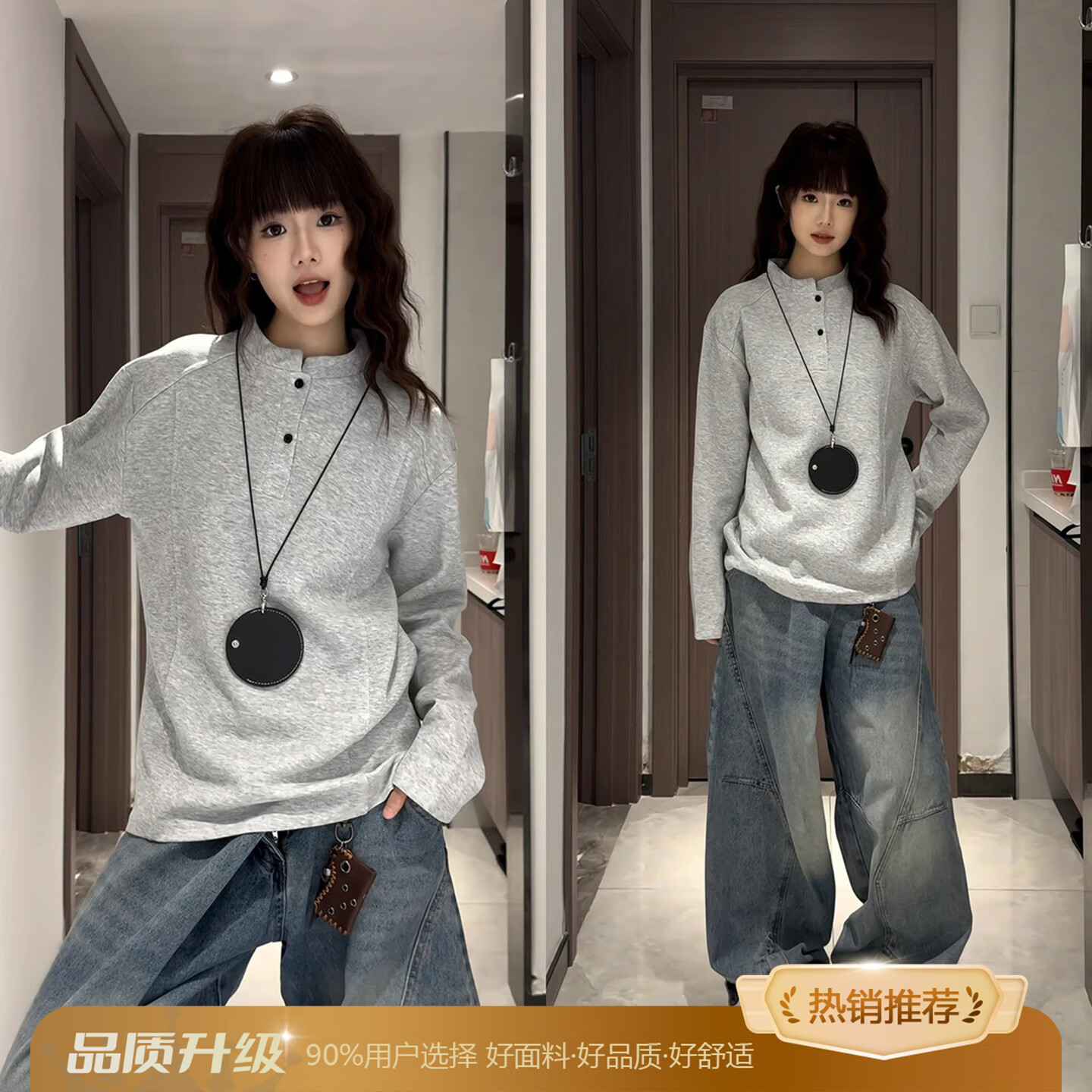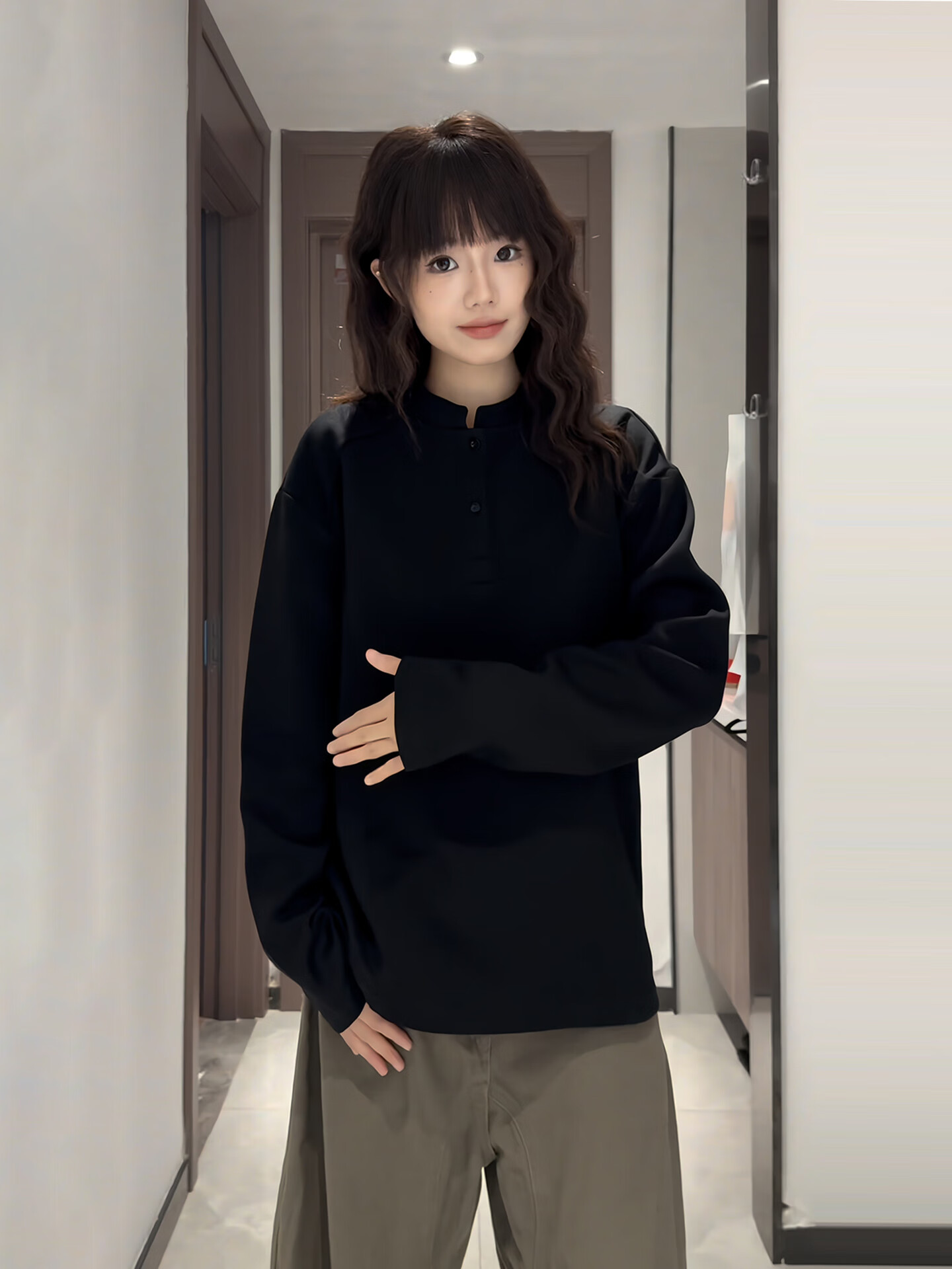 Autumn popular popular Henry collar sweatshirt for men and women heavyweight long-sleeved T-shirt bottoming shirt trendy high-end polo shirt for men white 2XL recommended 145-160Jin Jin equals 0.5 kg