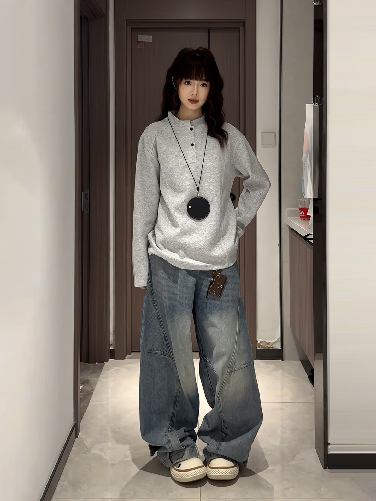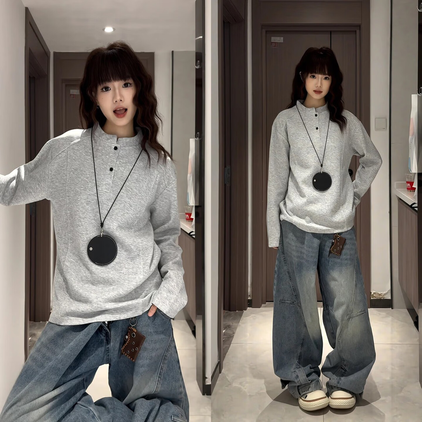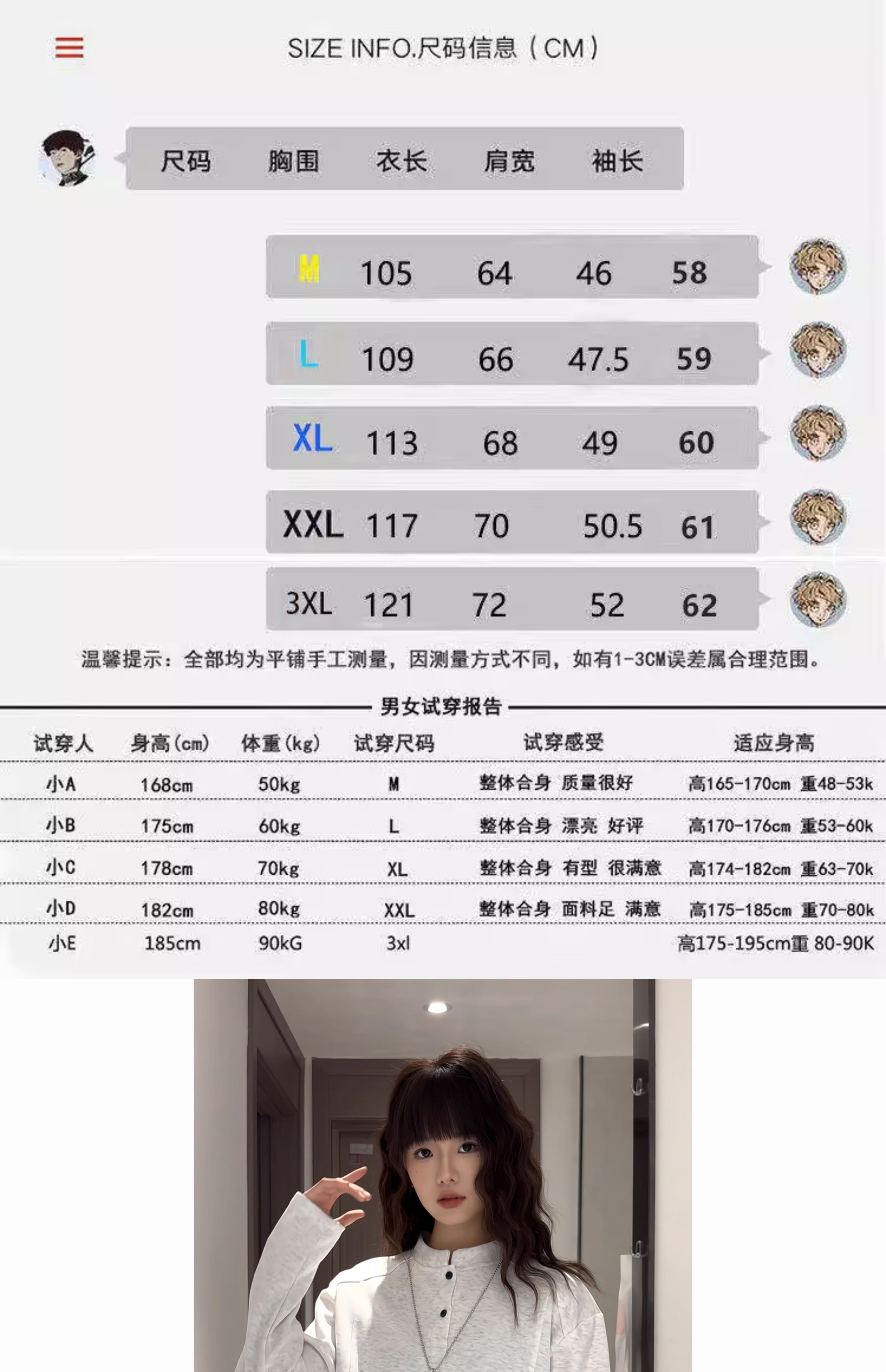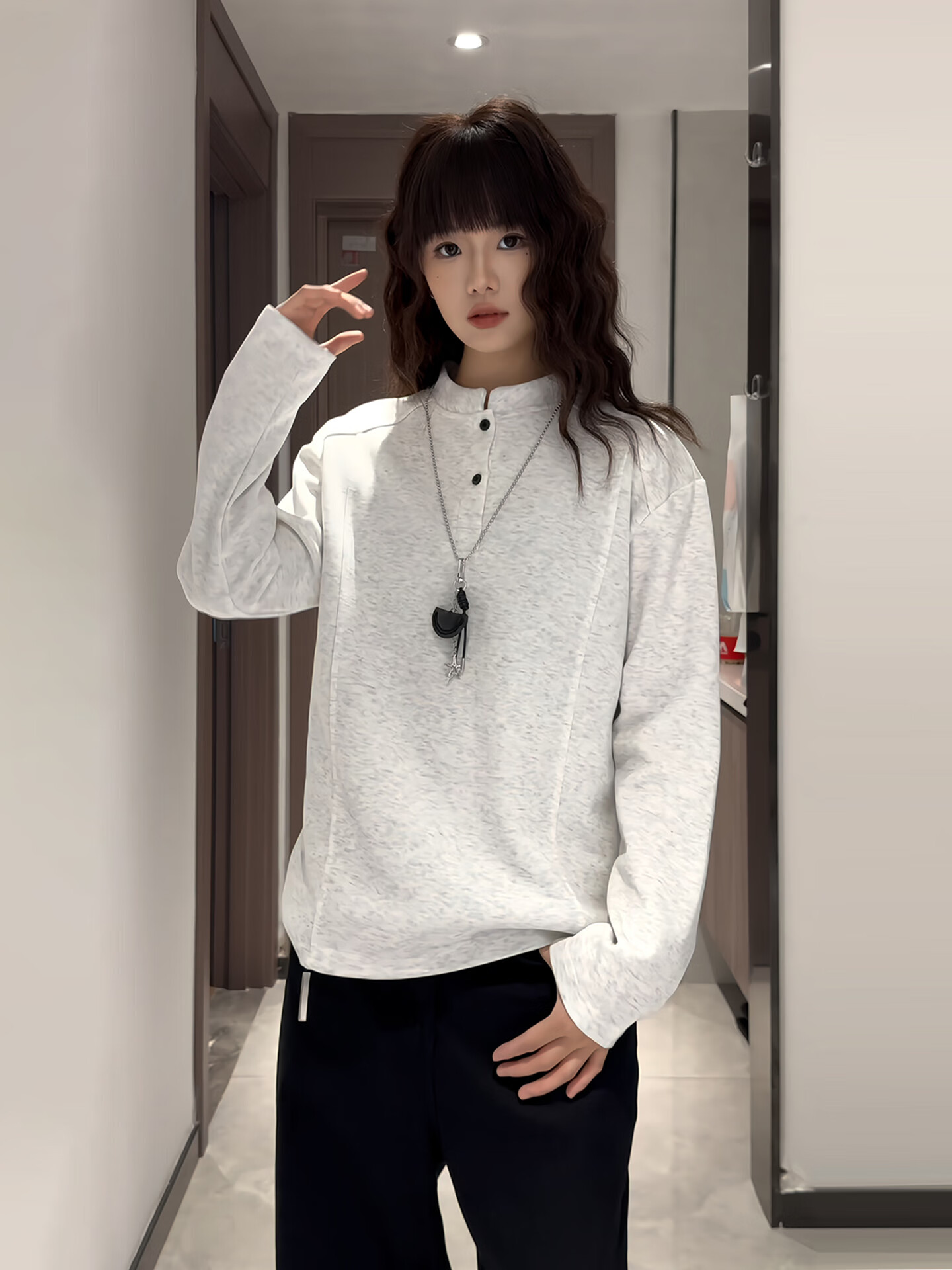 Autumn popular popular Henry collar sweatshirt for men and women heavyweight long-sleeved T-shirt bottoming shirt trendy high-end polo shirt for men white 2XL recommended 145-160Jin Jin equals 0.5 kg