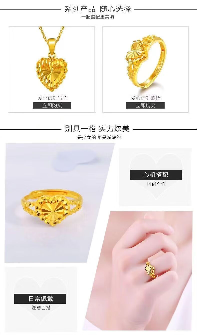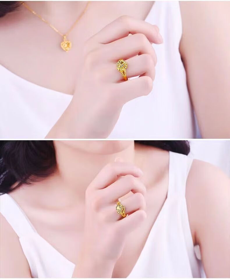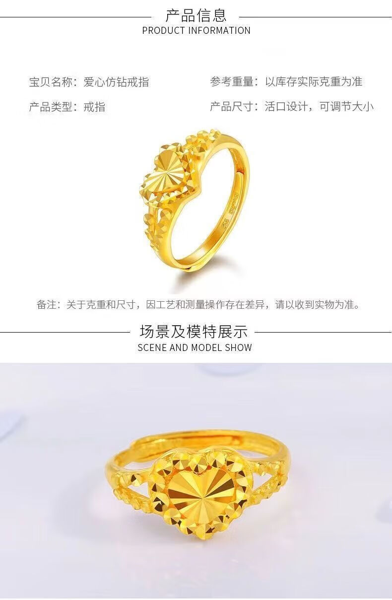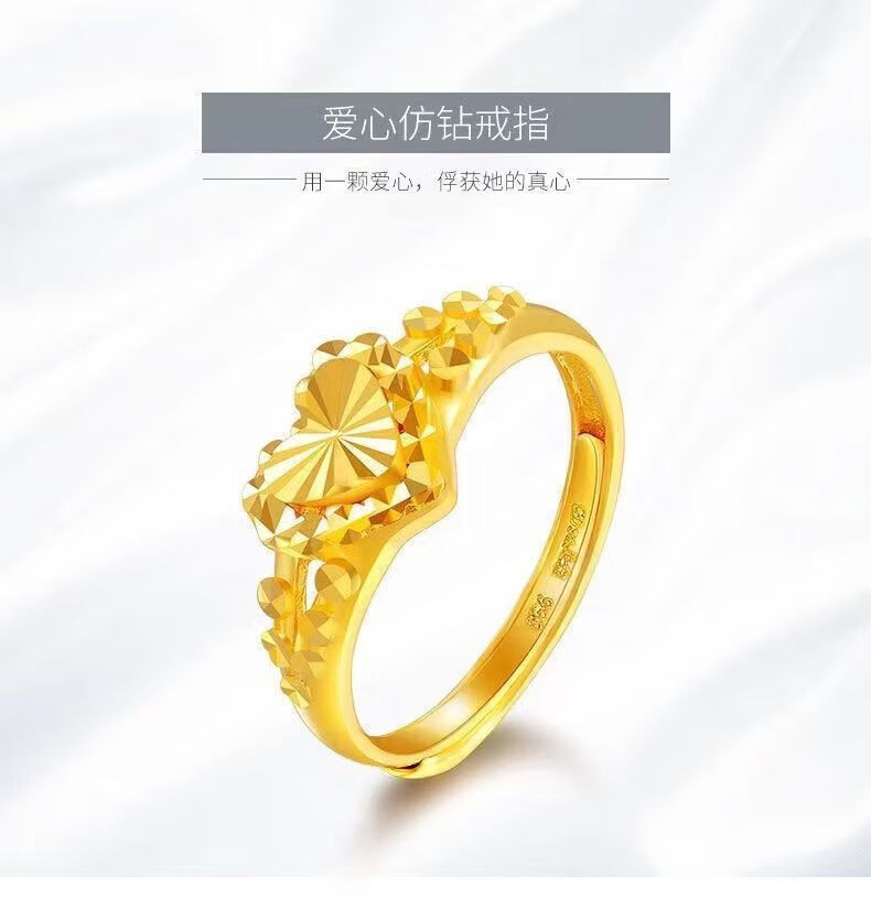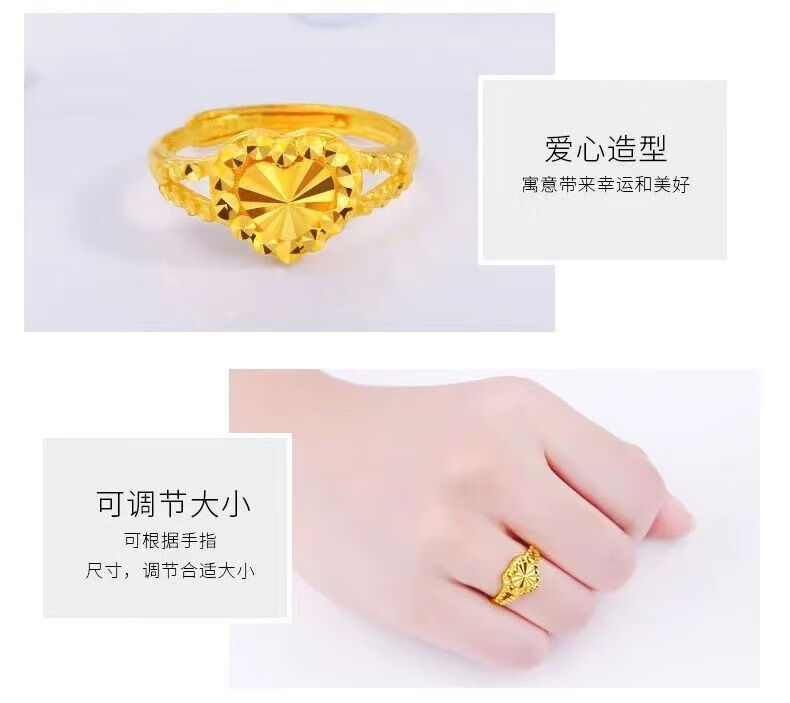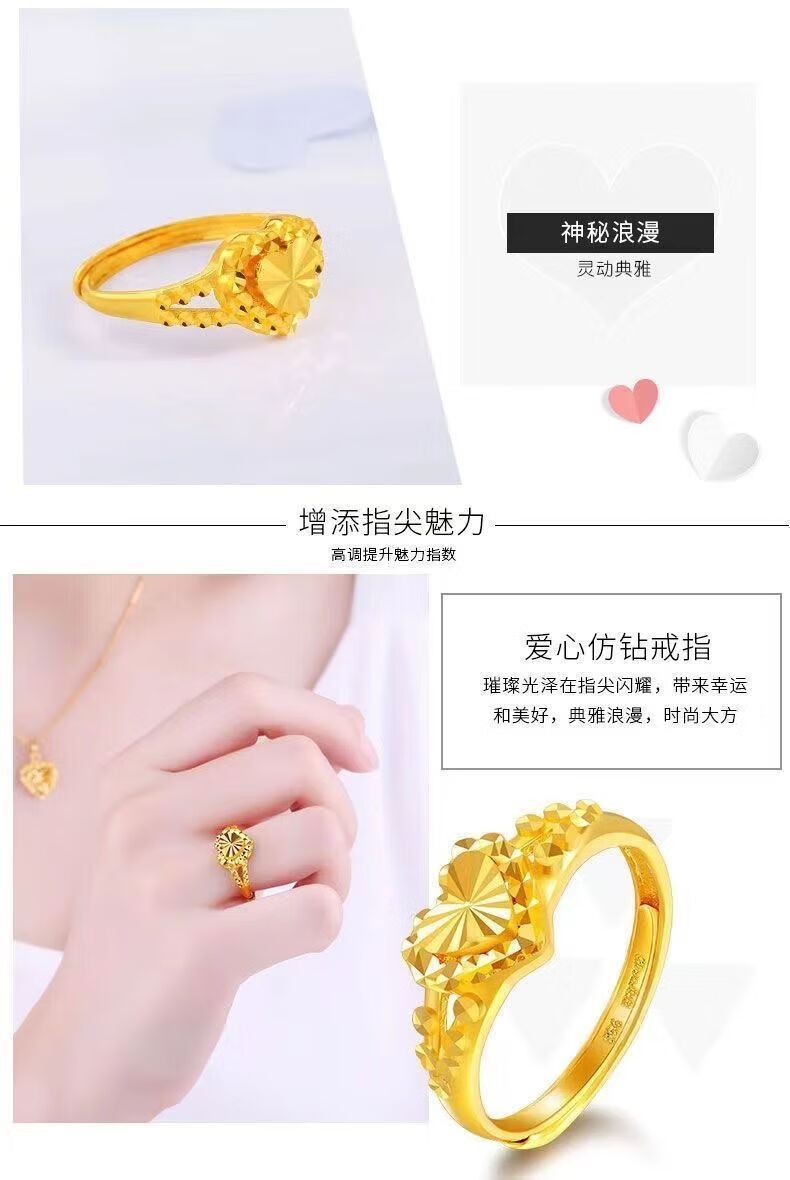 Luanjie Old Phoenix Gold Store Real Gold Ring for Women Heart-Shaped Solid Love Gold Ring Ring Adjustable as a Gift Gold 9 3.68g will be sold for 5988 yuan