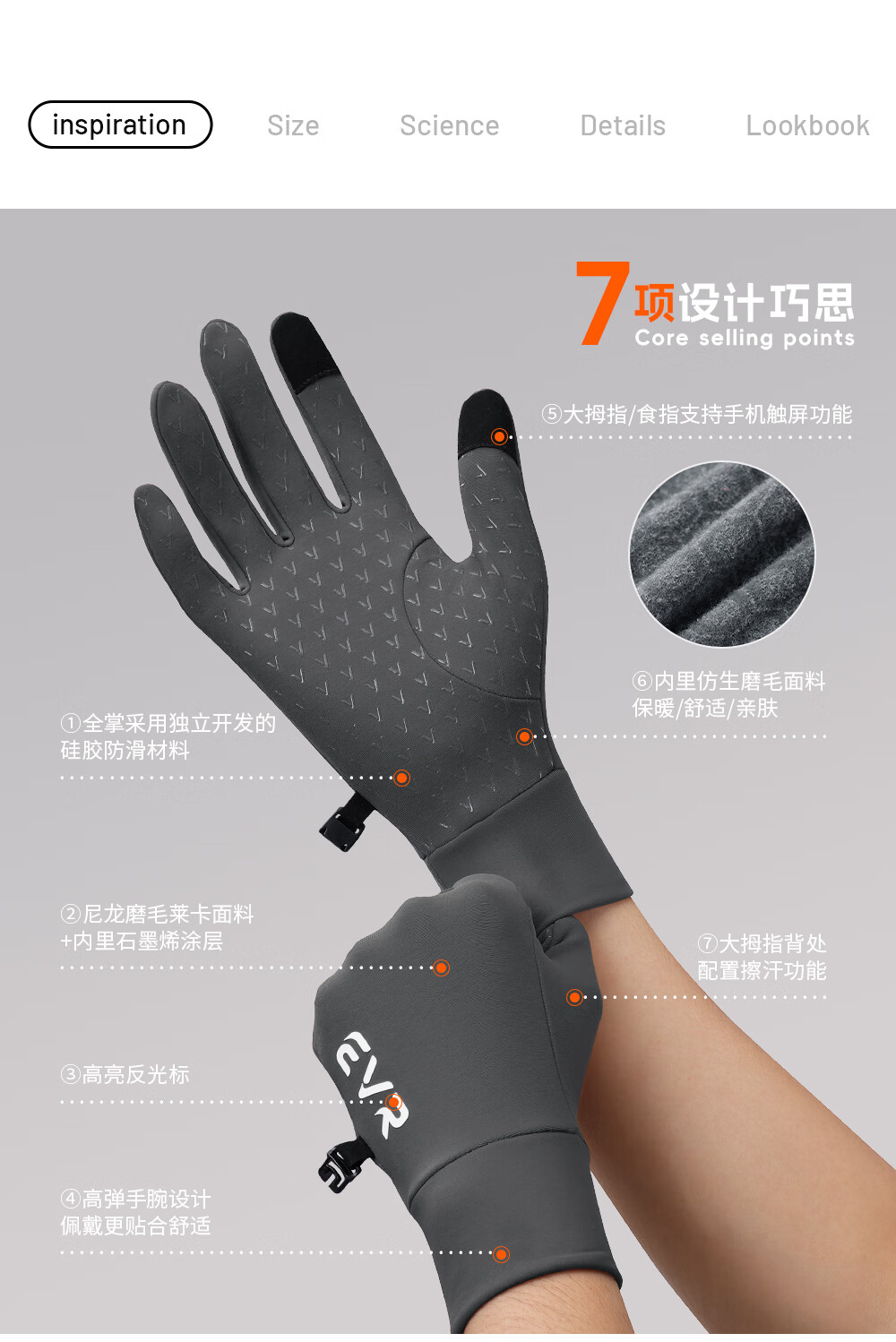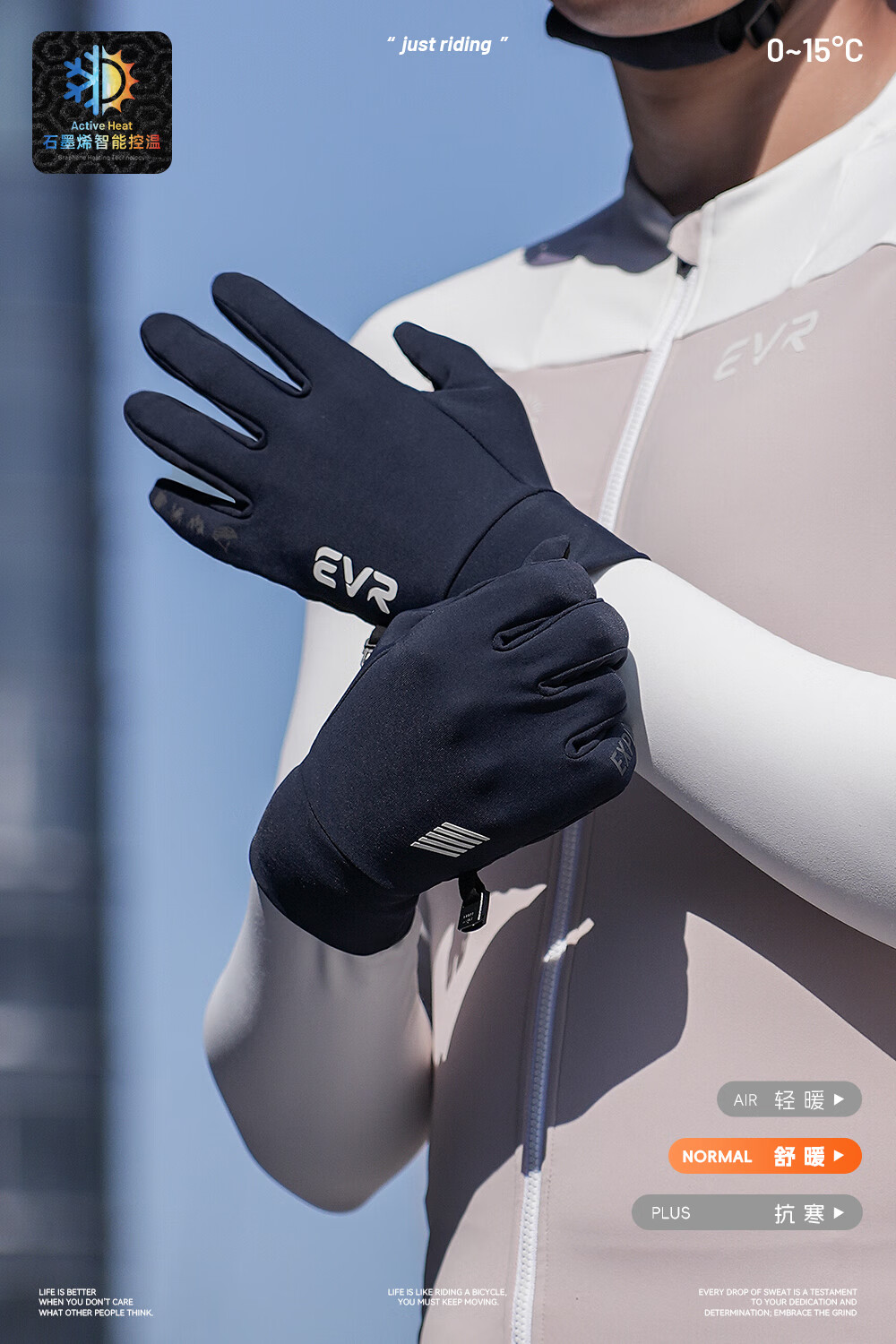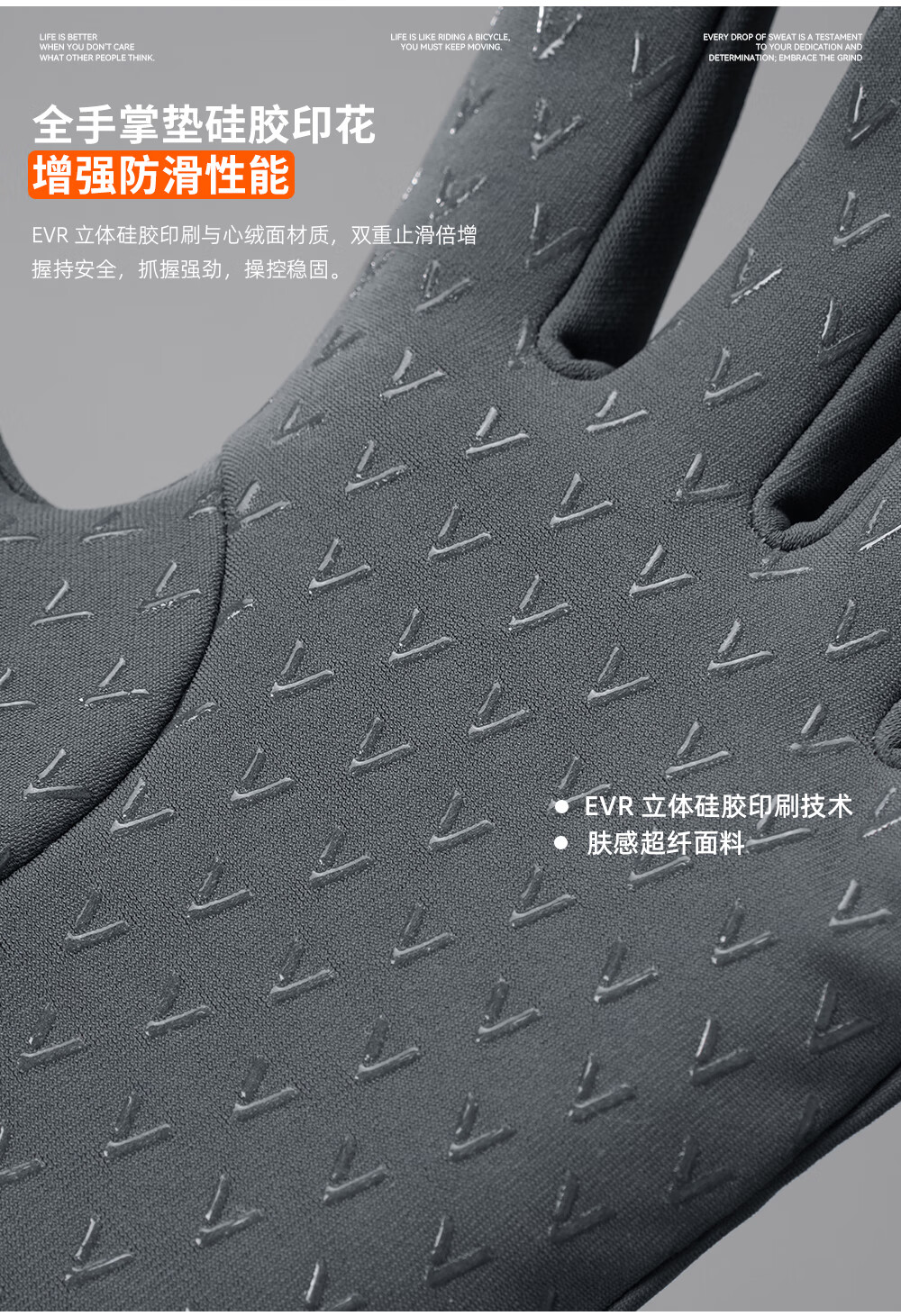 EVR cycling long finger gloves for men and women in autumn and winter fleece graphene warm road bicycle outdoor skiing explore dark gray-graphene fleece-non-slip-touch screen L