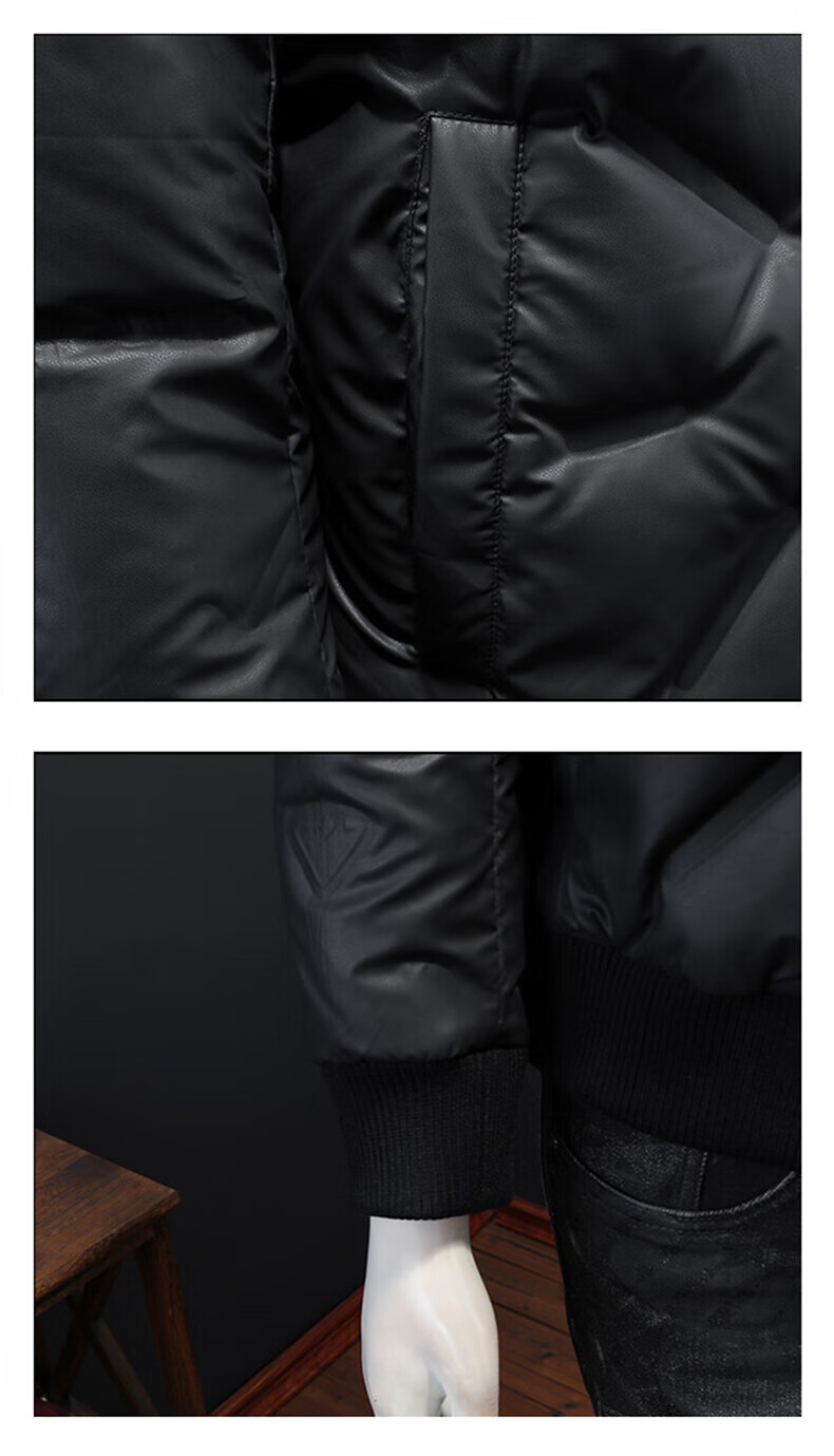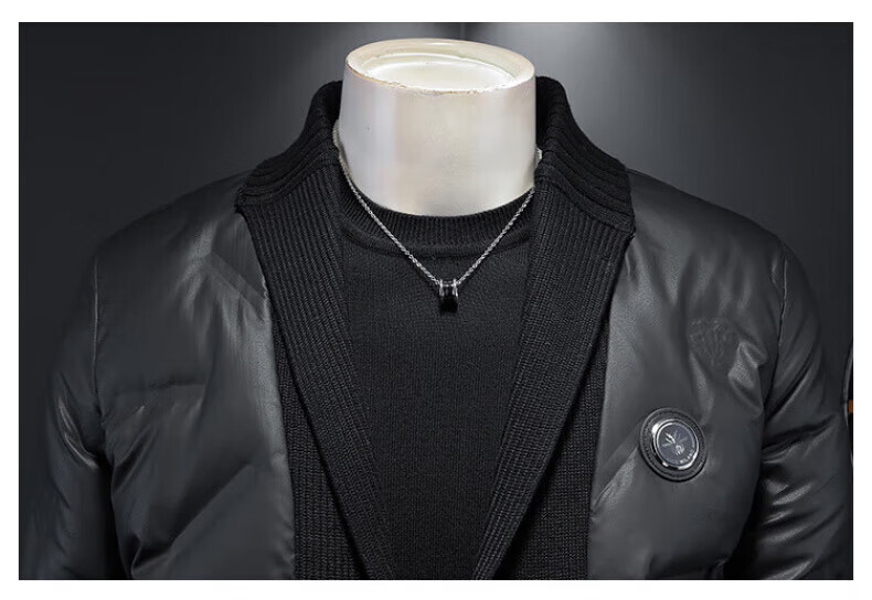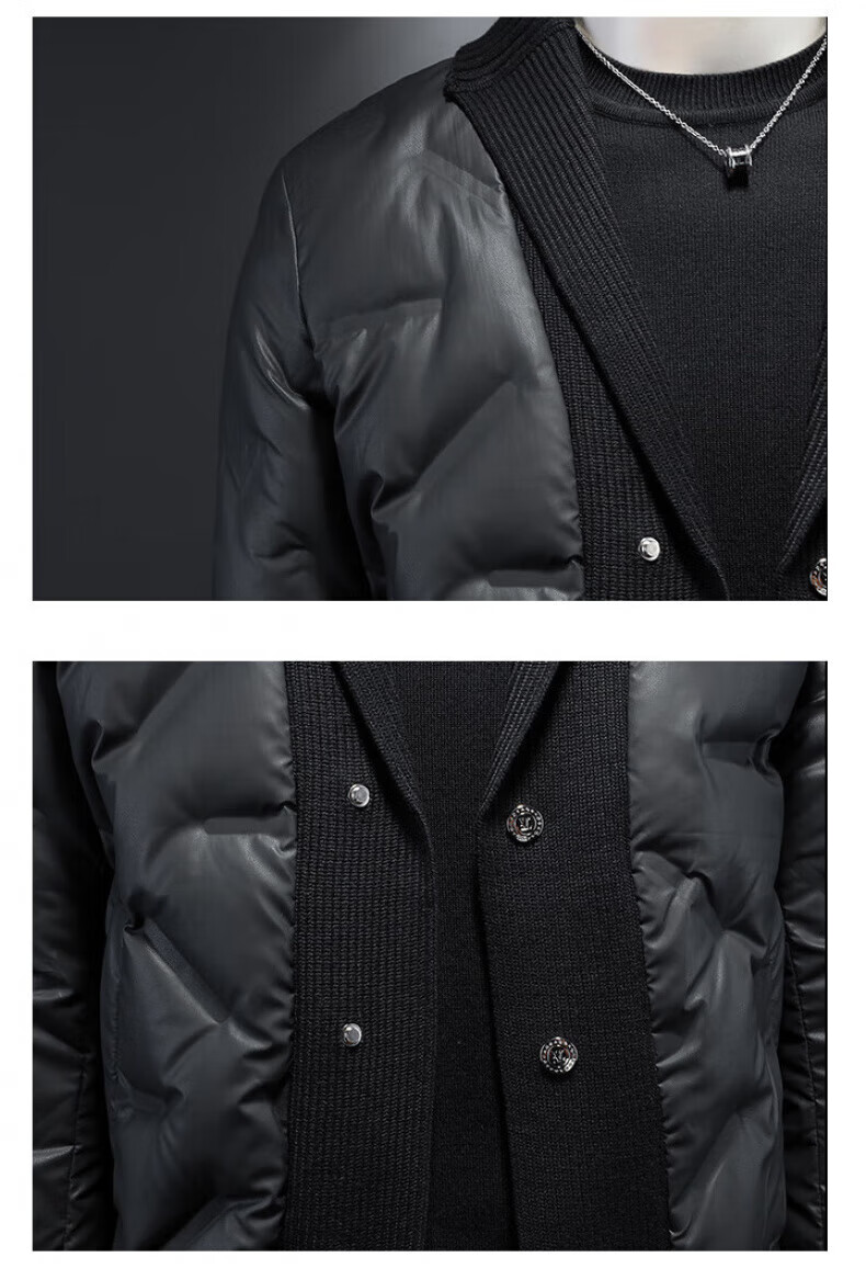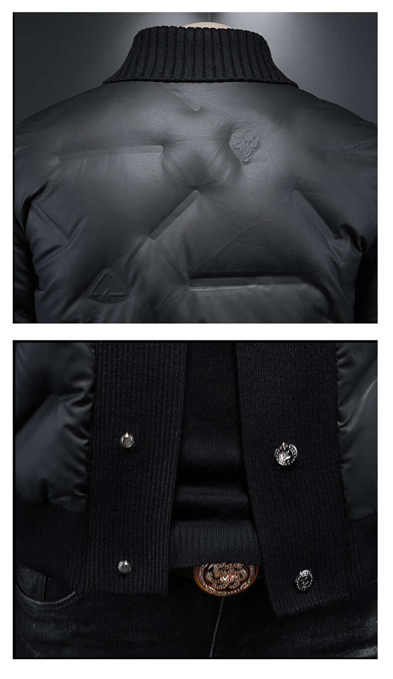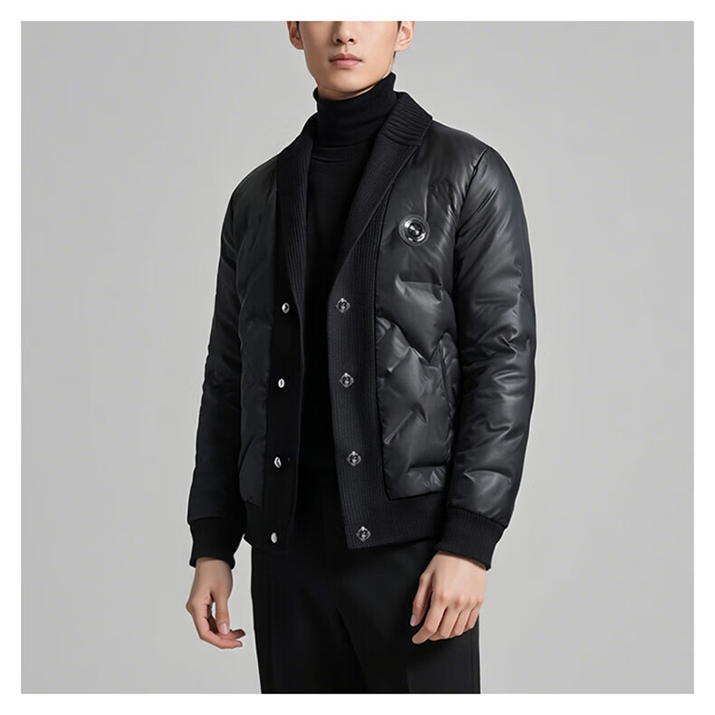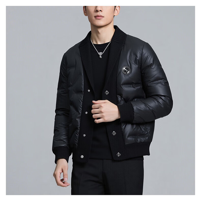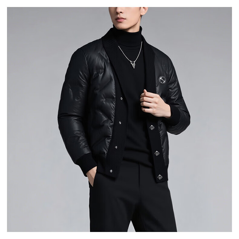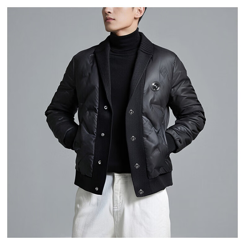KING WINNER 2025 autumn and winter new men's knitted collar down jacket large size solid color casual slim warm jacket black M