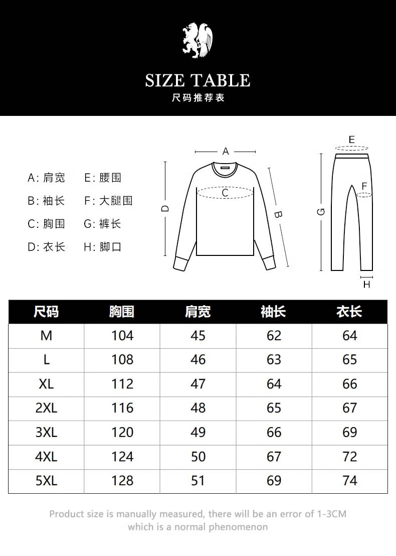 China (cm) 165 / 88-90 170 / 96-98 175 / 108-110 180 / 118-122 185 / 126-130