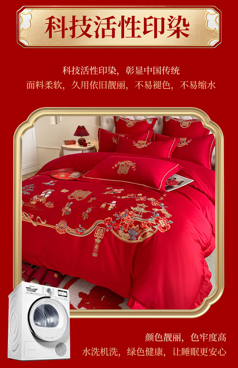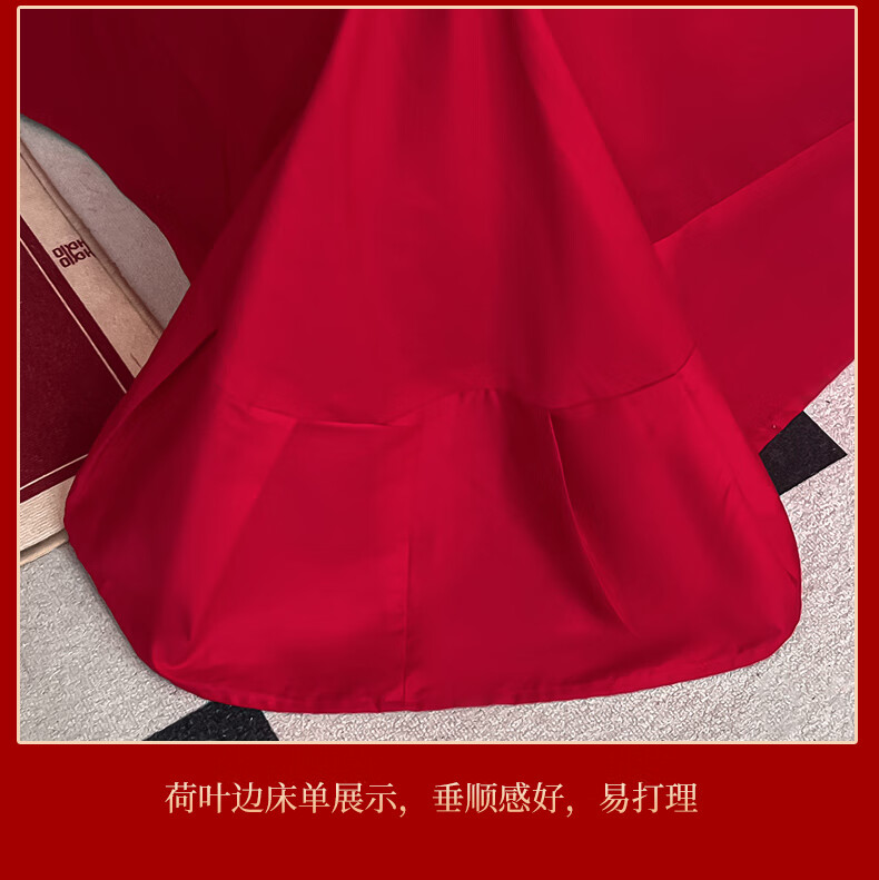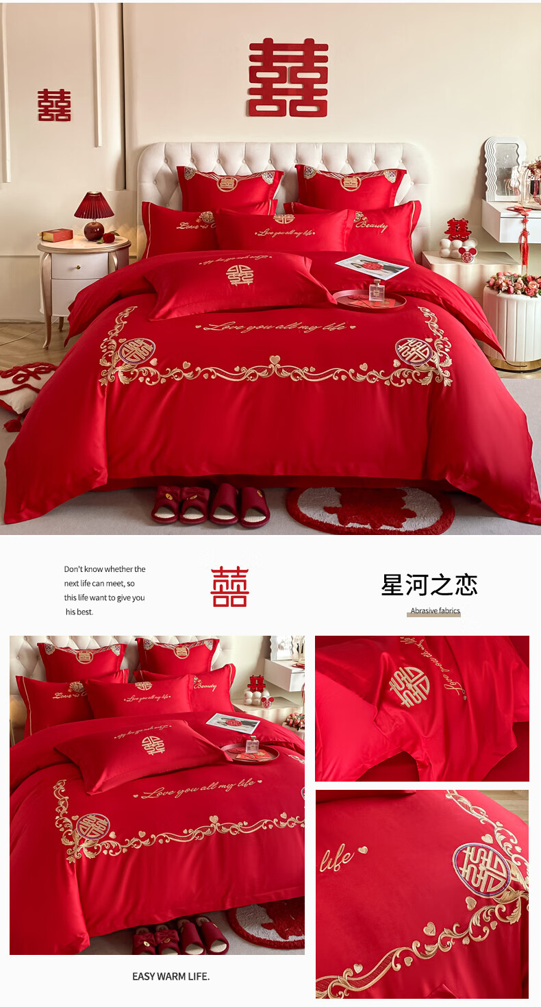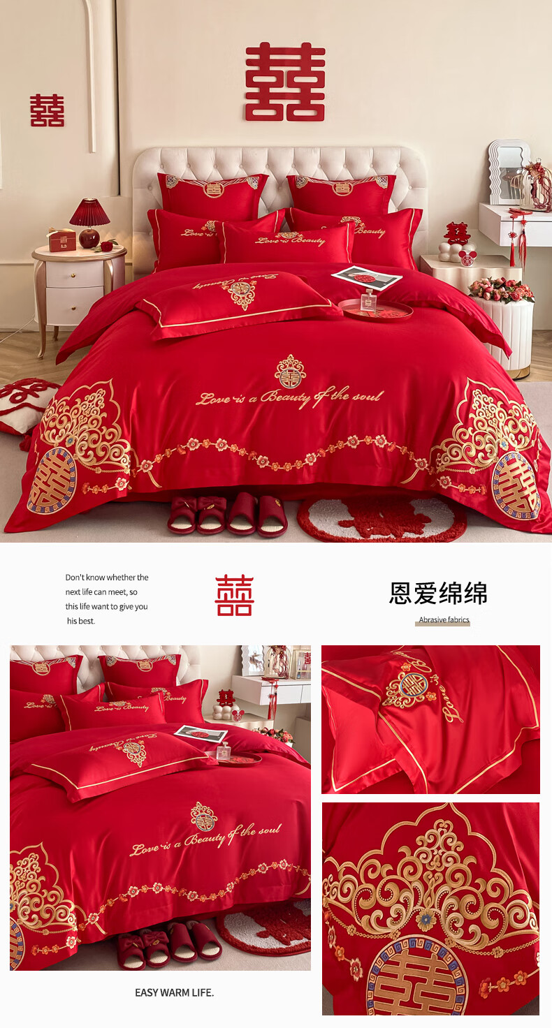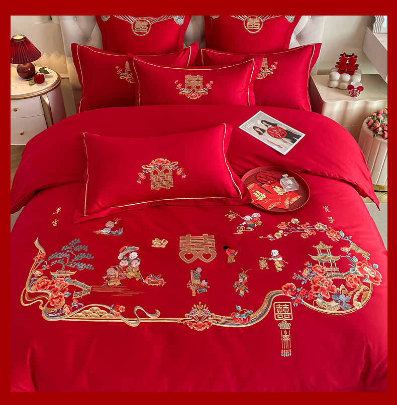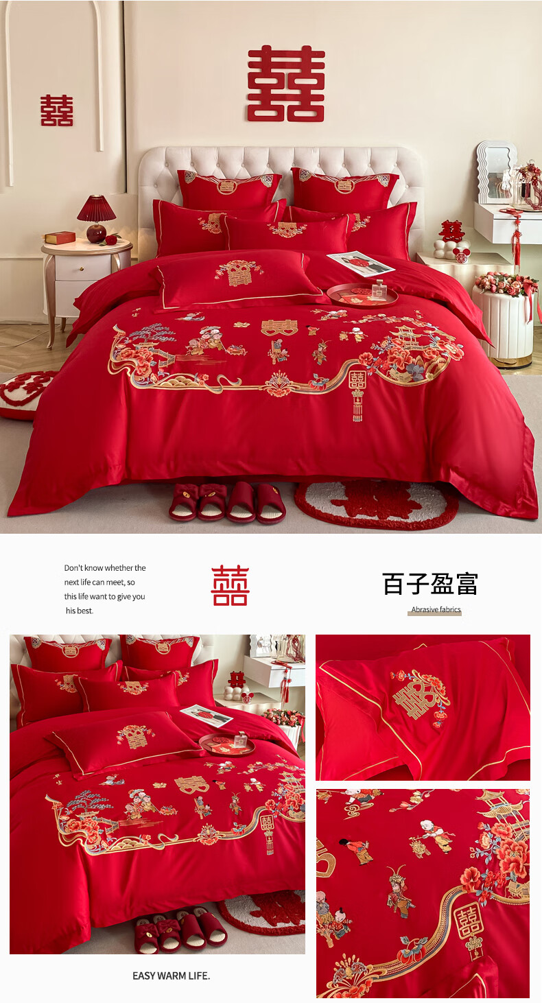 Mercury series home textile cotton wedding four-piece set big red embroidered wedding sheets bedding newlywed wedding room quilt kit dragon and phoenix dragon and phoenix Chengxiang 1.8m bed sheet four-piece set