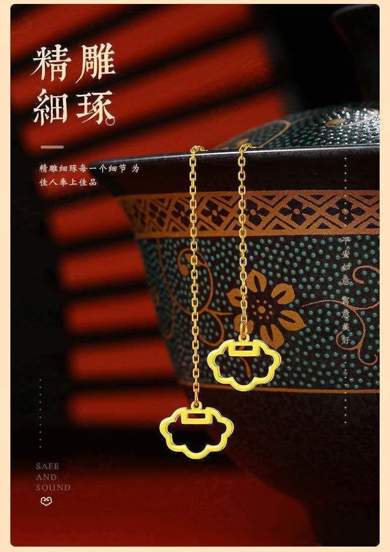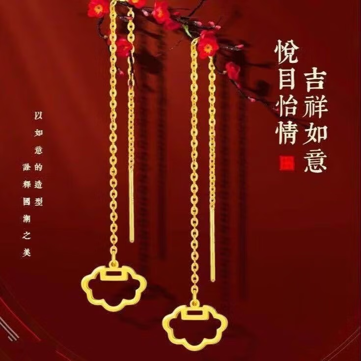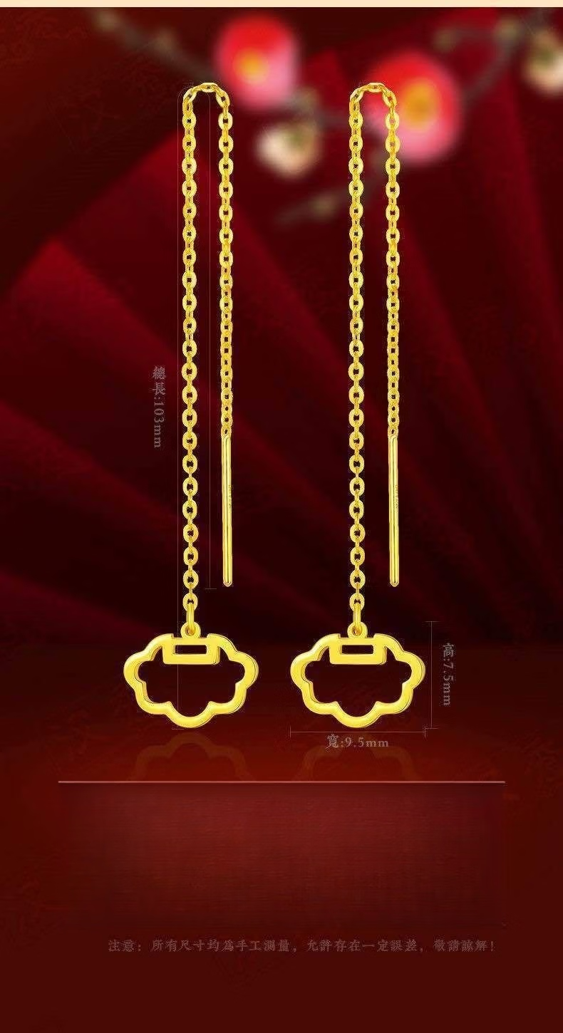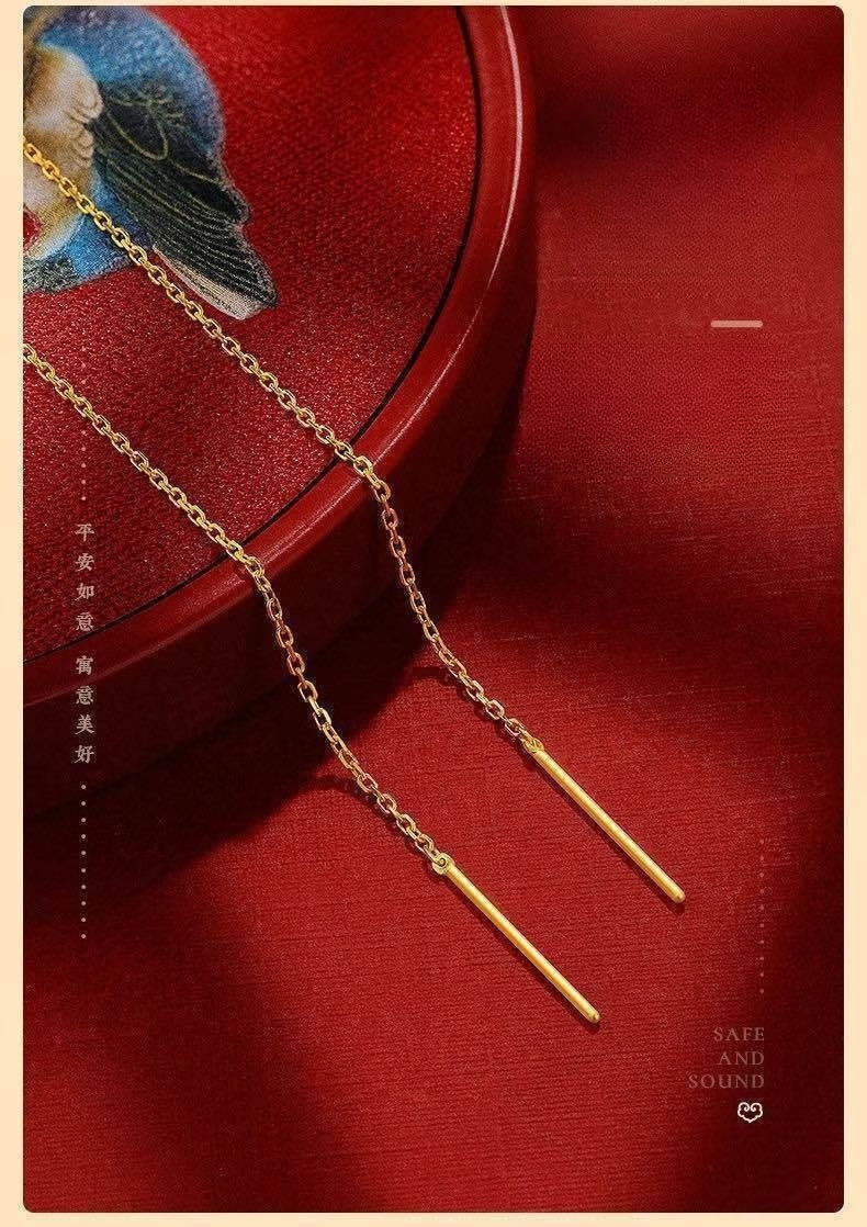 Luanjie Pure Gold 999 Ear Wire Gold Transfer Bead Ear Wire Women's Fashionable Gold Earrings Imitation Gold Color Valentine's Day Gift for Girlfriend Whisper Ear Wire Exquisite Gift Box 1.03g