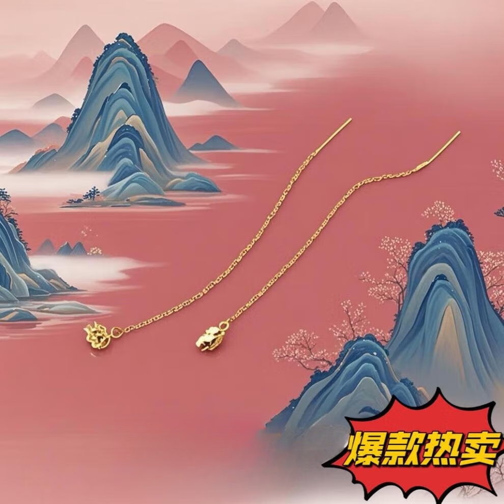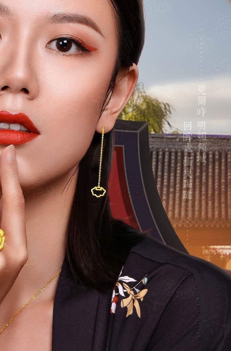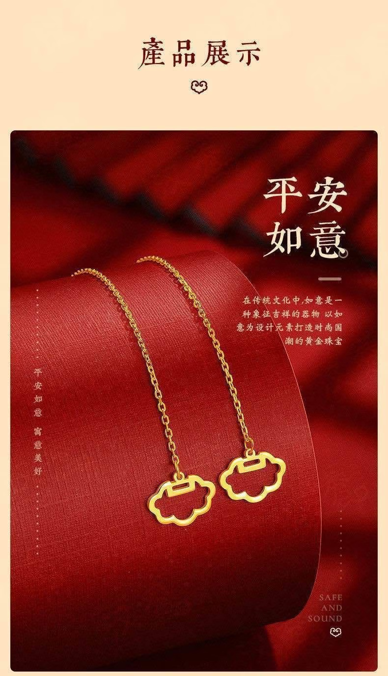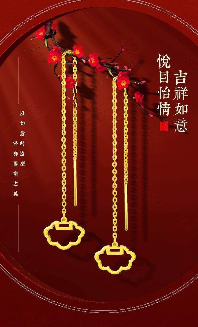 Luanjie Pure Gold 999 Ear Wire Gold Transfer Bead Ear Wire Women's Fashionable Gold Earrings Imitation Gold Color Valentine's Day Gift for Girlfriend Whisper Ear Wire Exquisite Gift Box 1.03g