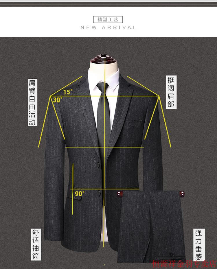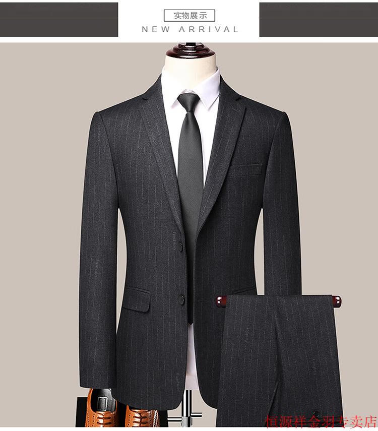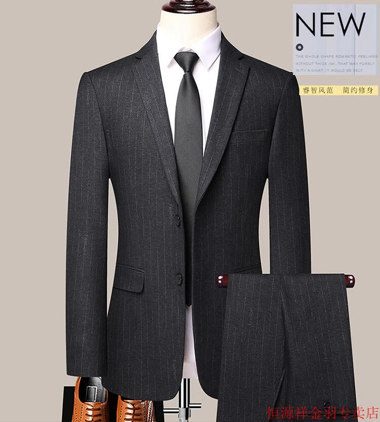 Hengyuanxiang Striped Suit Men's Slim Formal Professional Wedding Groom's Dress Business Casual Groomsman's Suit Black Gray 8983 Single Top M 170 Recommended 95-115 Jin Jin equals 0.5 kg