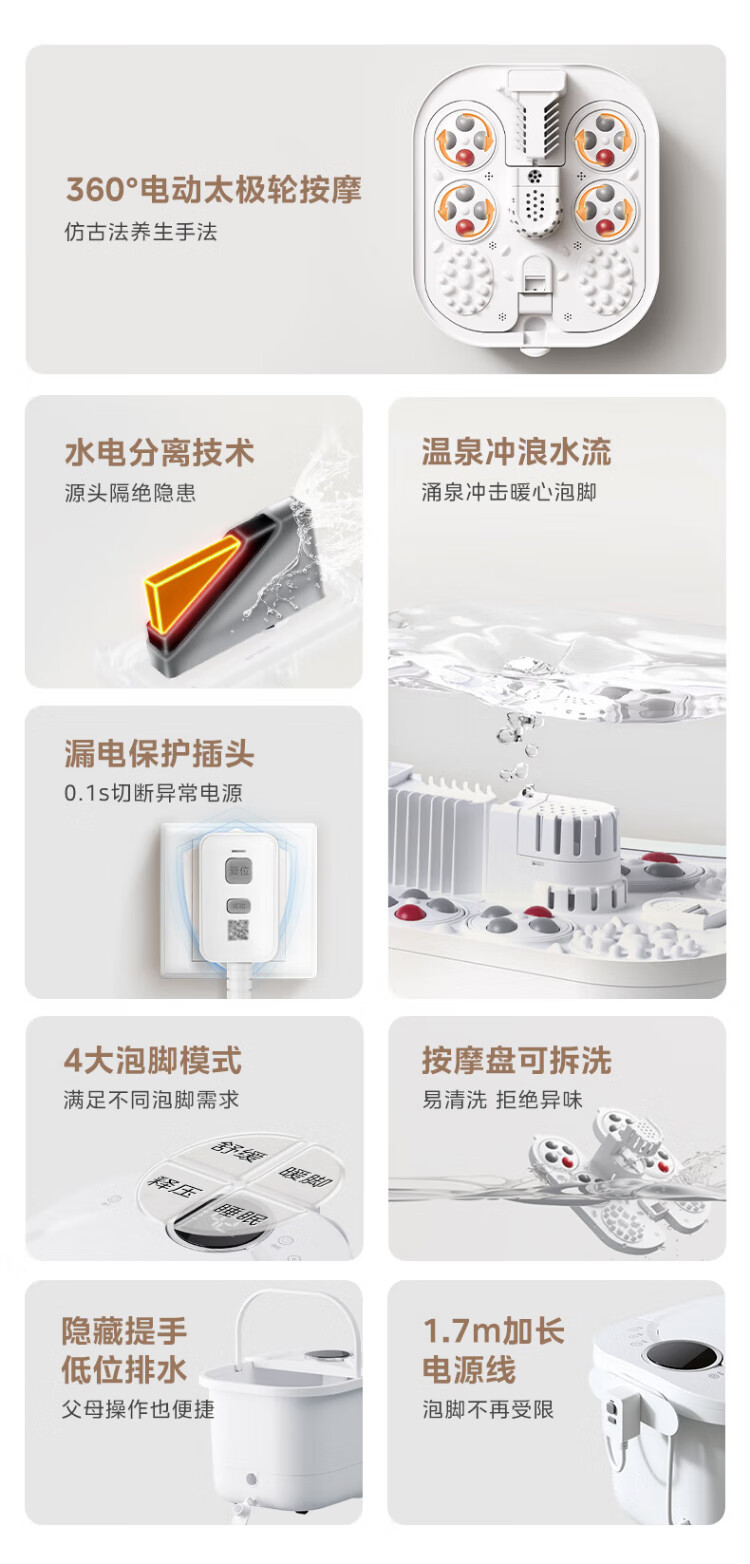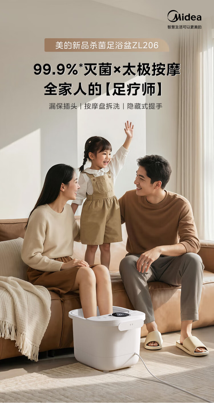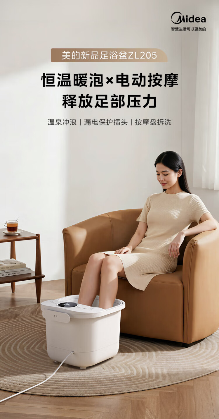 Midea sterilization foot bath electric massage foot bath heated constant temperature foot massager foot bath practical high-end holiday birthday and New Year gift for parents and elders 25 years of warm winter new products hot spring surfing water flow + 3D bionic massage wheel