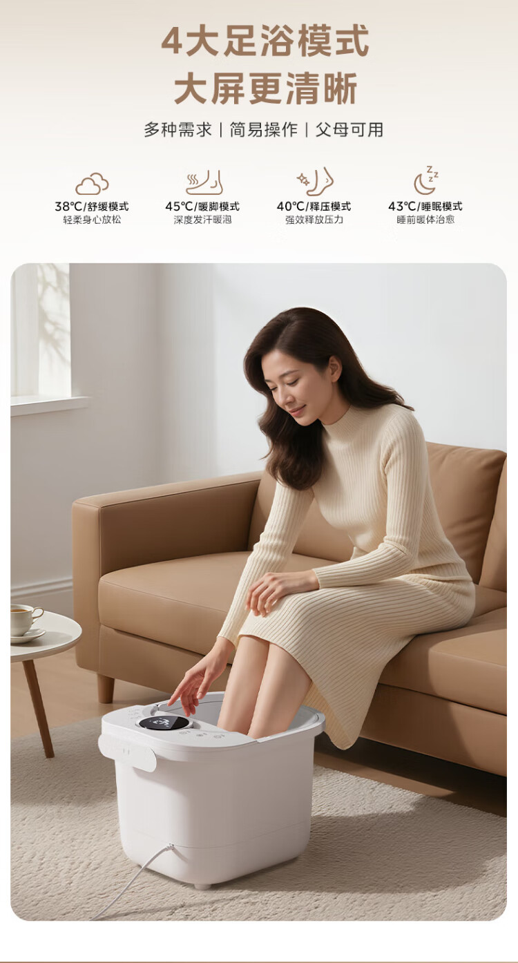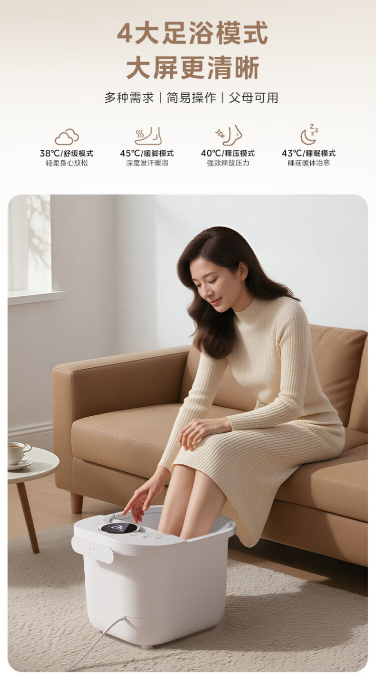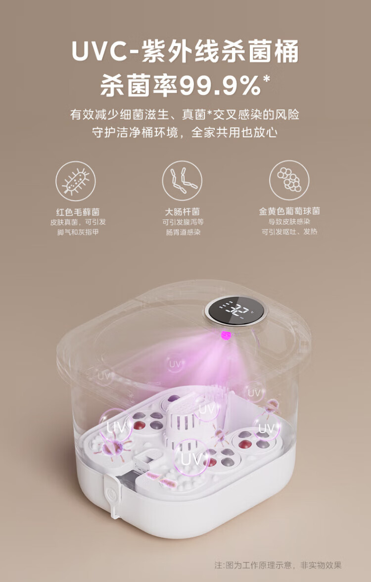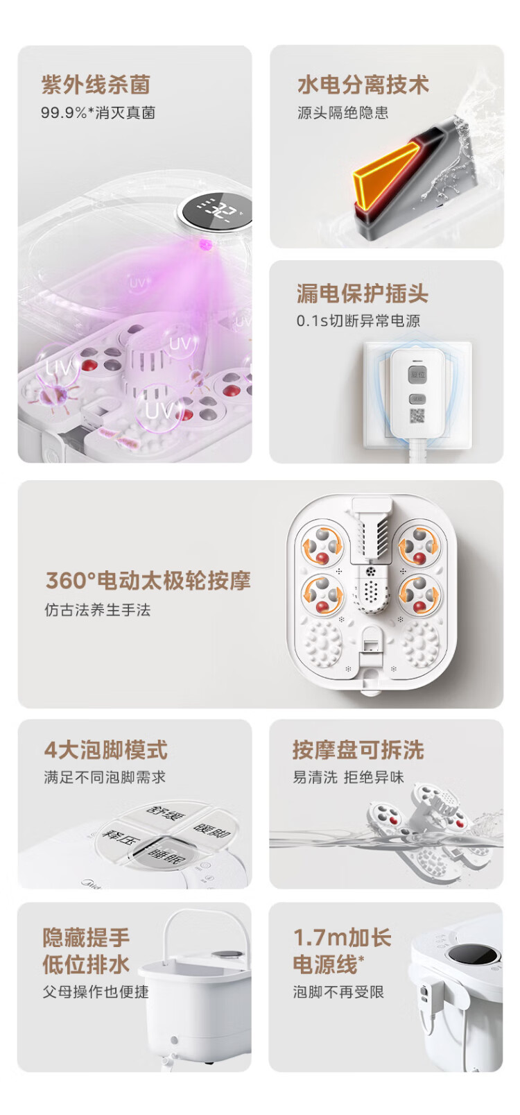 Midea sterilization foot bath electric massage foot bath heated constant temperature foot massager foot bath practical high-end holiday birthday and New Year gift for parents and elders 25 years of warm winter new products hot spring surfing water flow + 3D bionic massage wheel