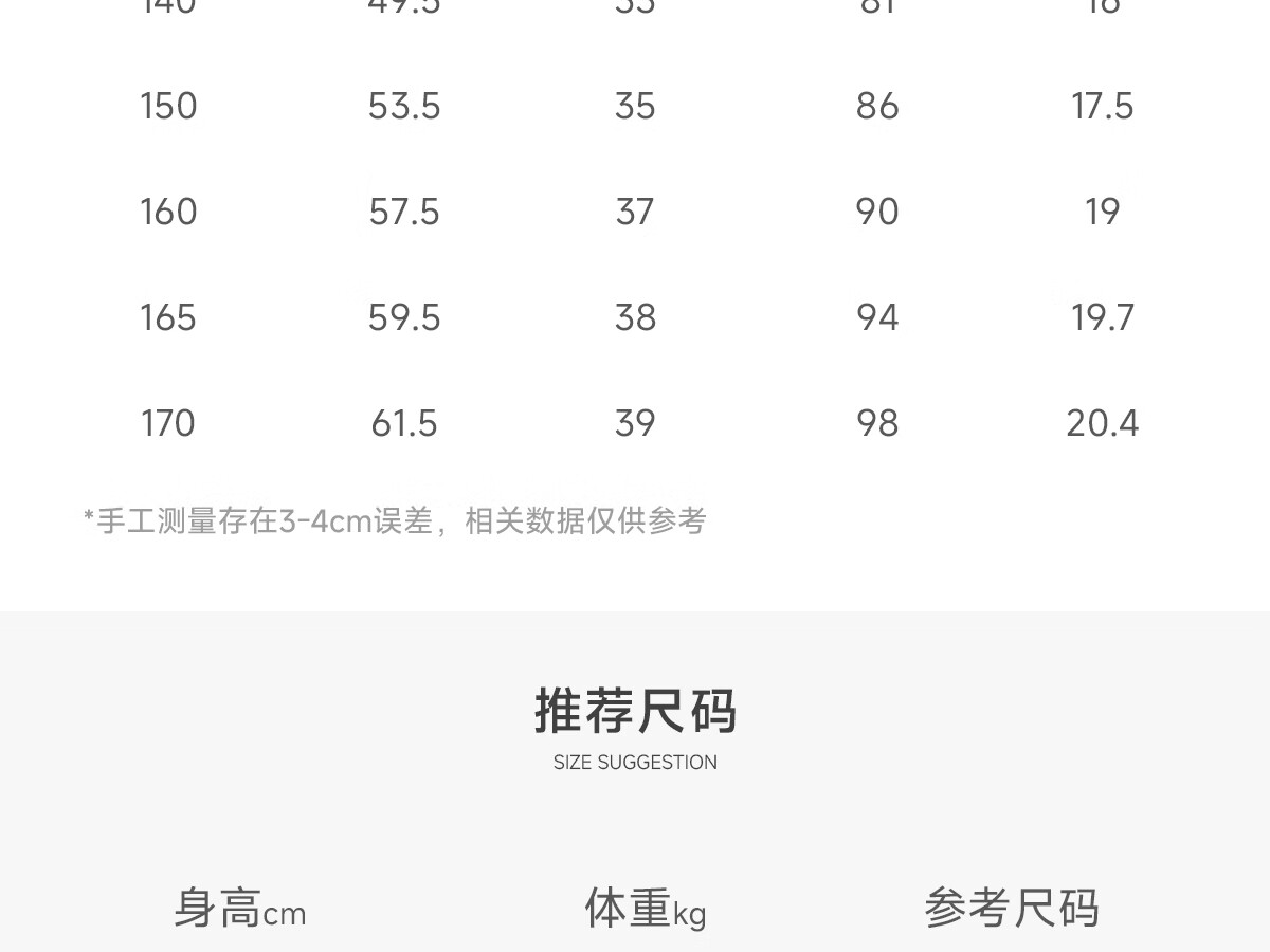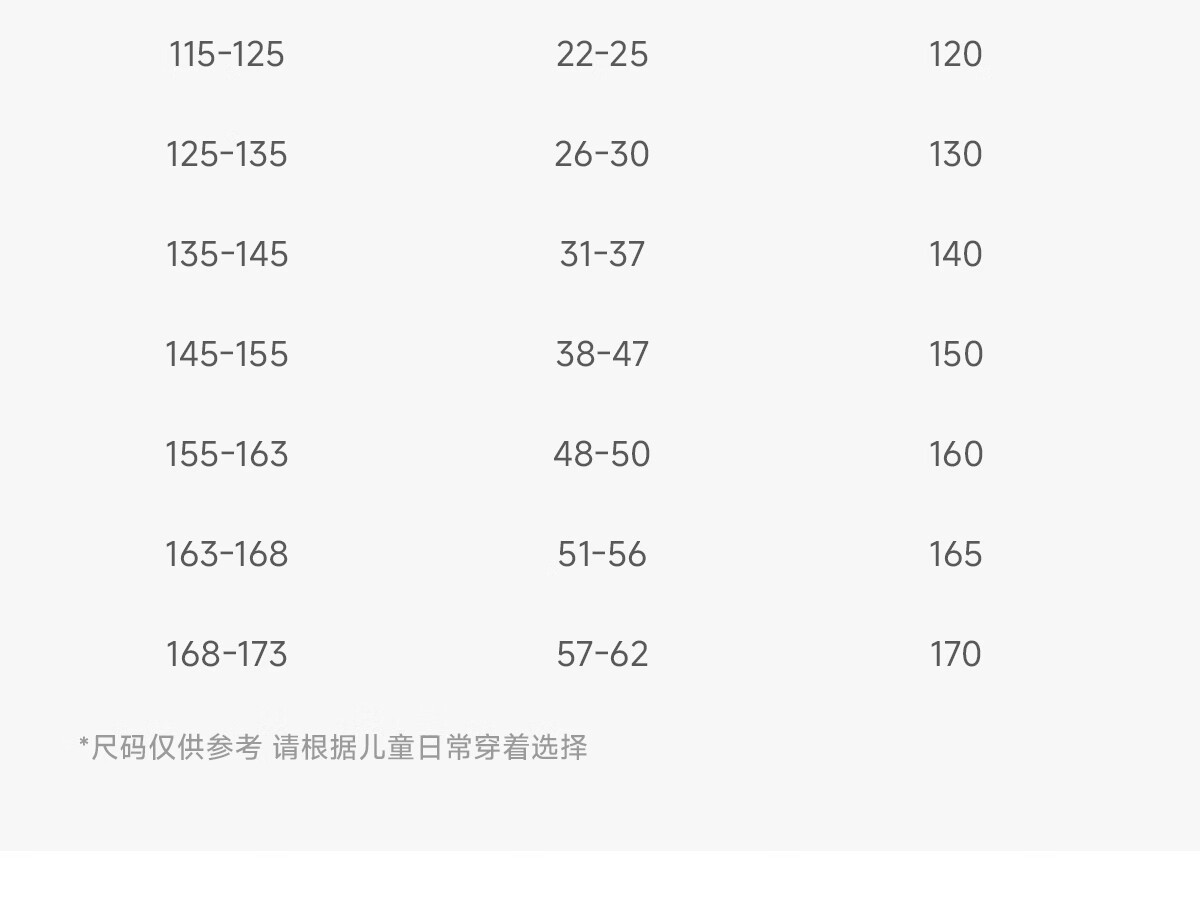 China (cm) 160-165/84-86 165-170 / 88-90 167-172 / 92-96 168-173 / 98-102 170-176 / 106-110