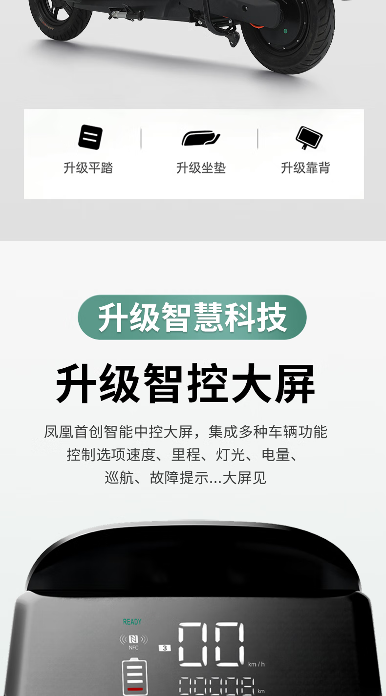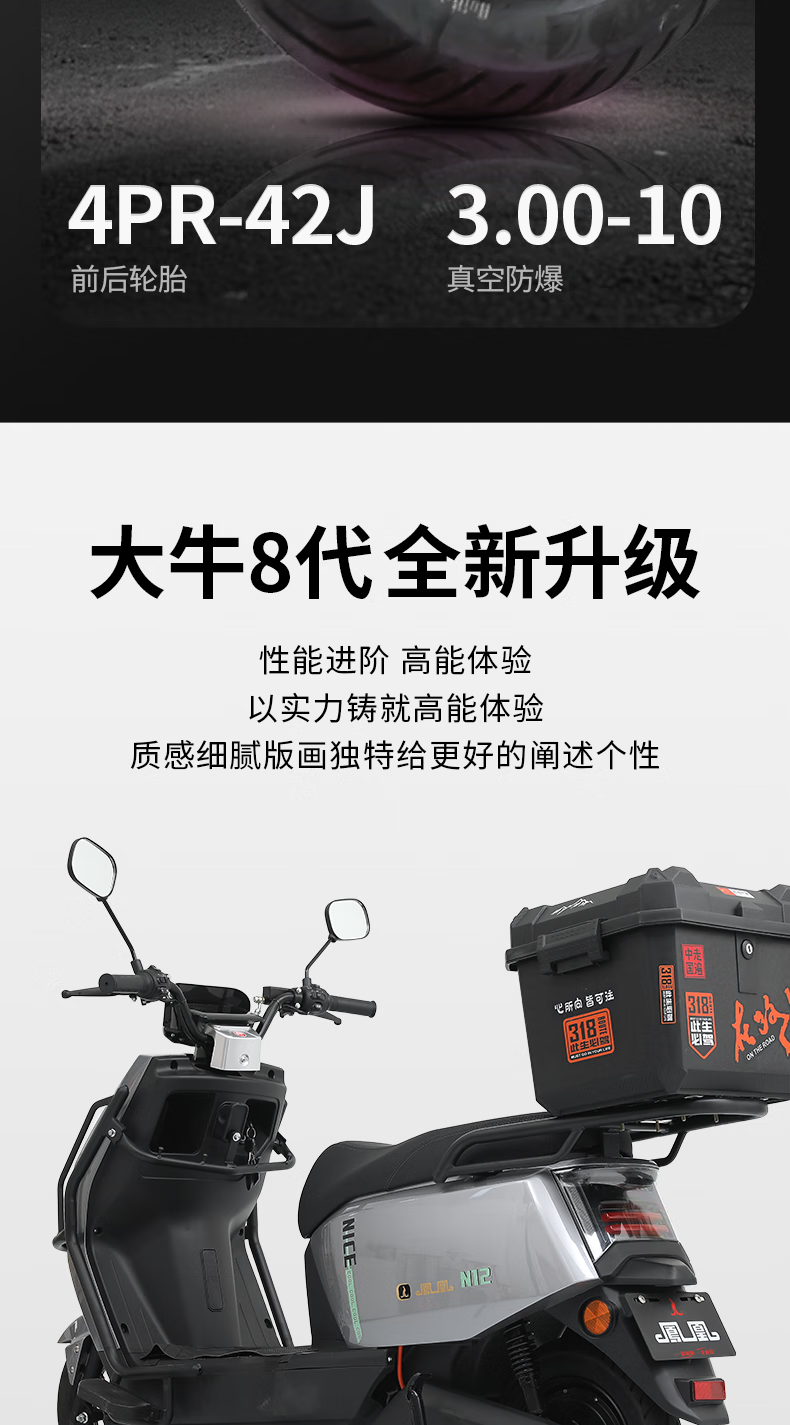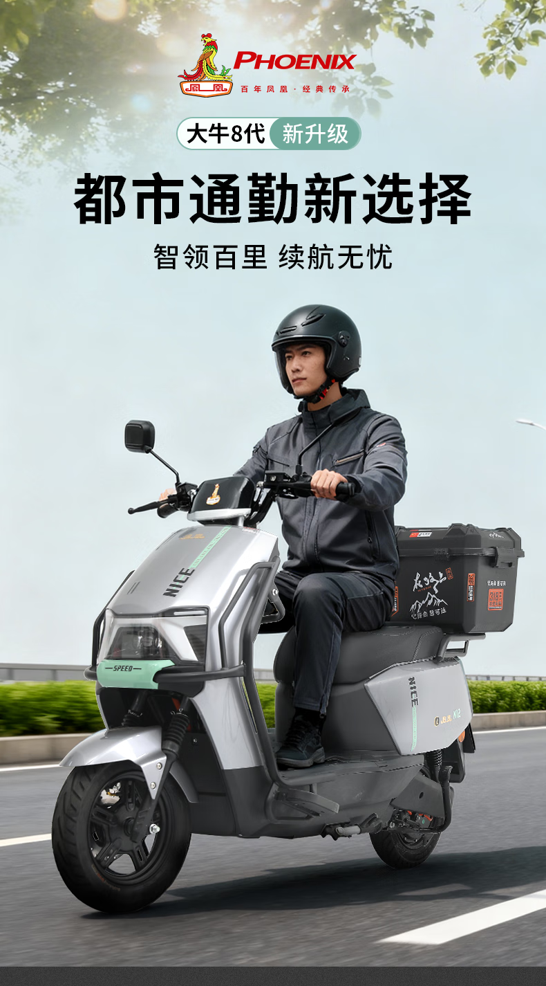 Phoenix (Phoenix) 2025 new electric motorcycle M95 electric car 72V ultra-long range electric scooter for men and women battery car front and rear disc brake two-wheel long-distance running king electric motorcycle high-speed scooter upgraded model Daniu eighth generation gun gray guardrail + tail box 72V35A energy-carrying lithium battery - battery life about 120 kilometers