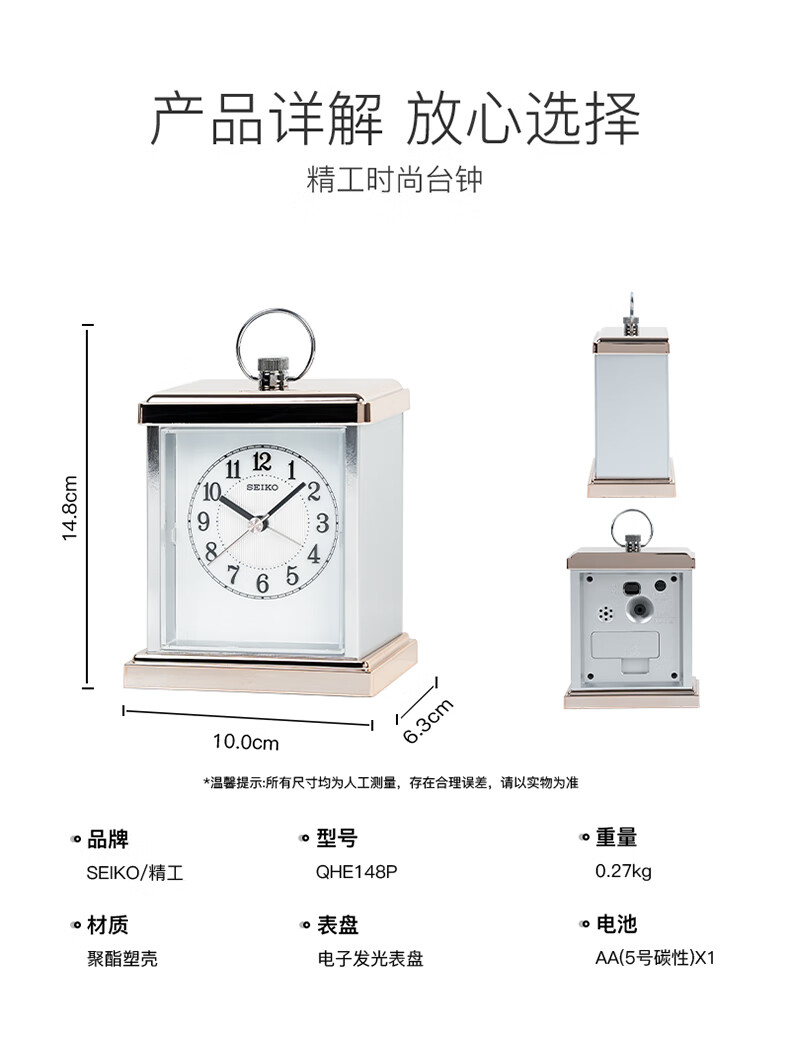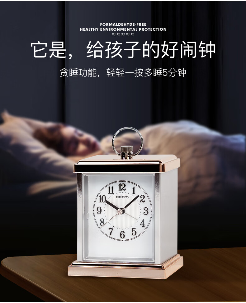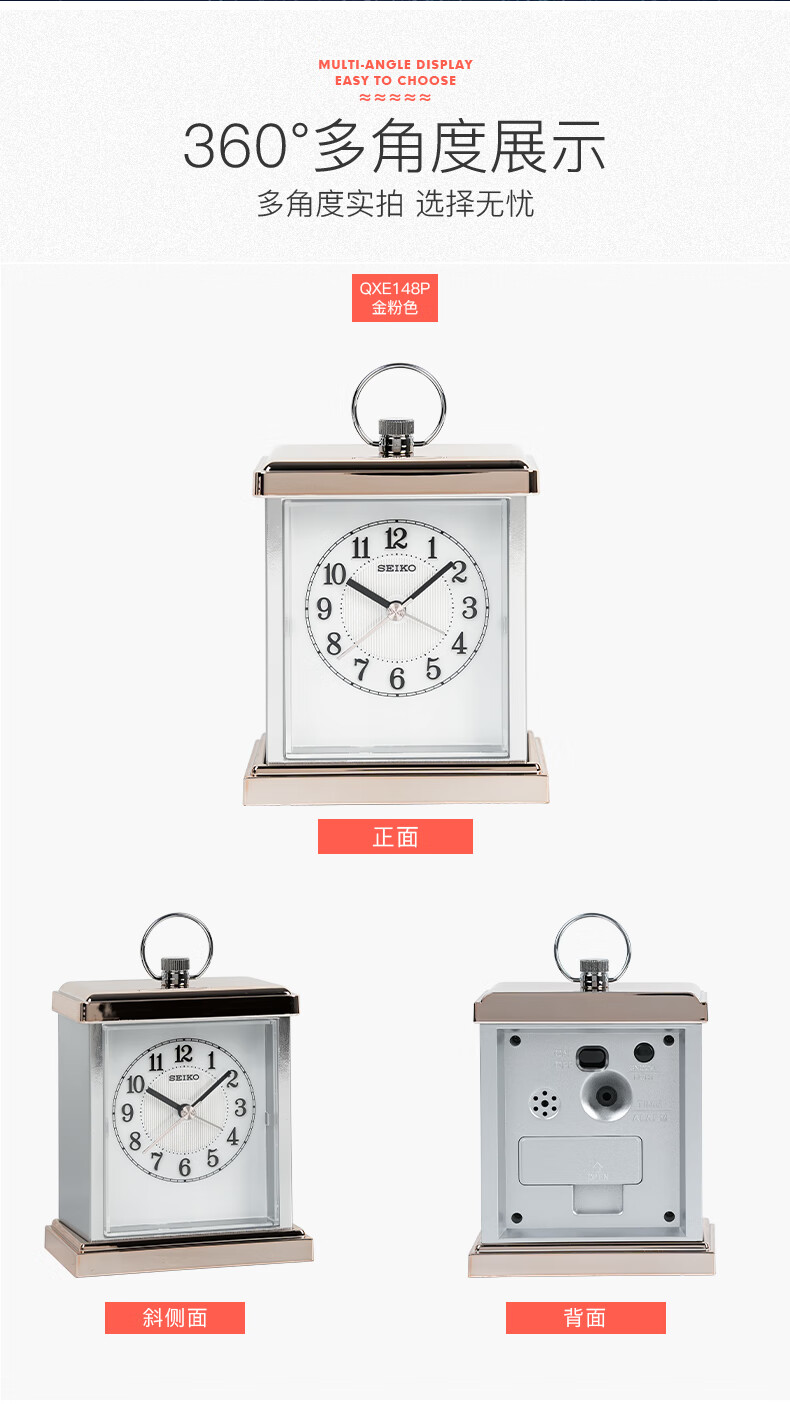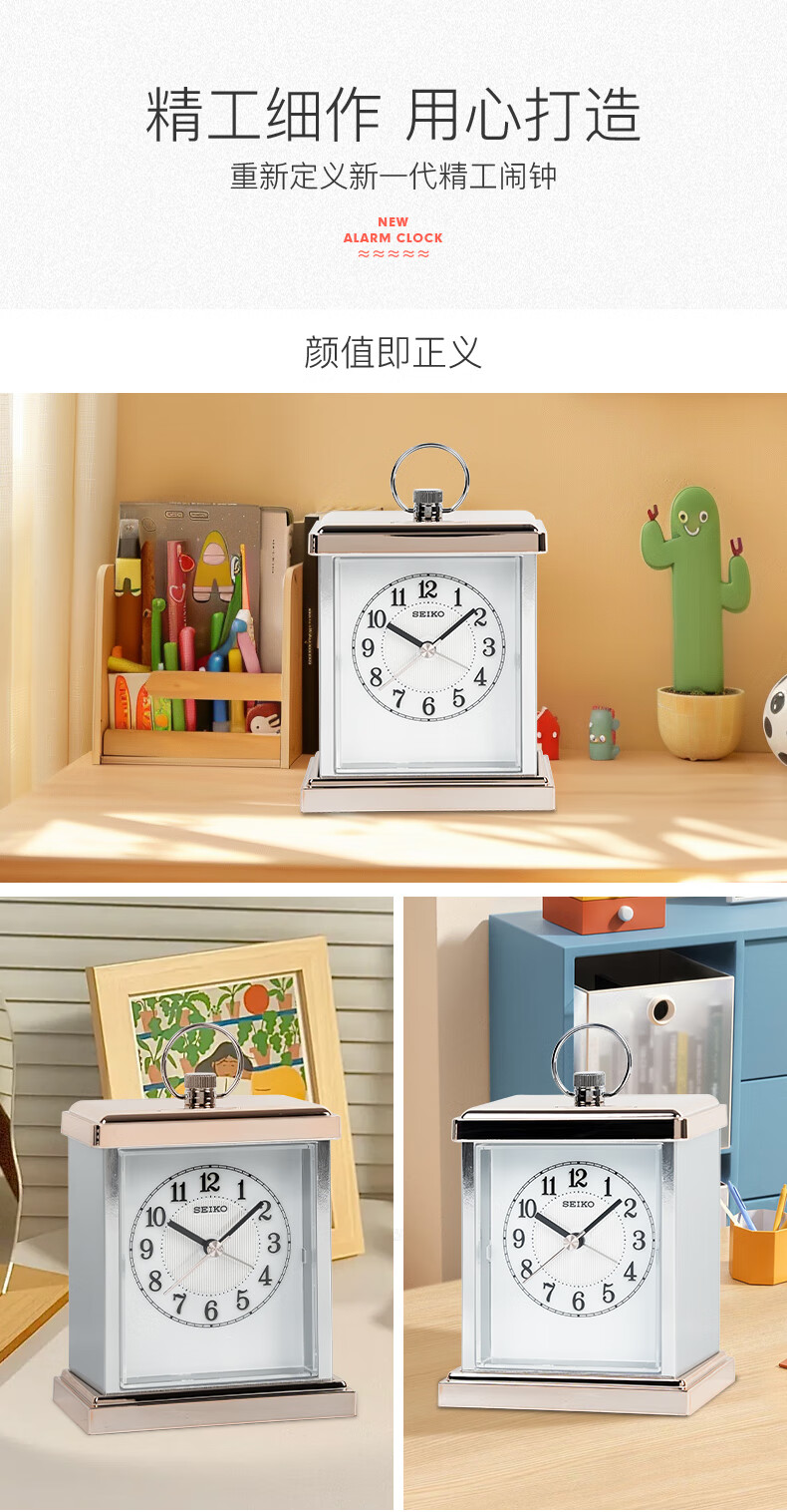 Seiko table clock metal shell bedroom European classical ornaments alarm clock home table clock clock QHE148P