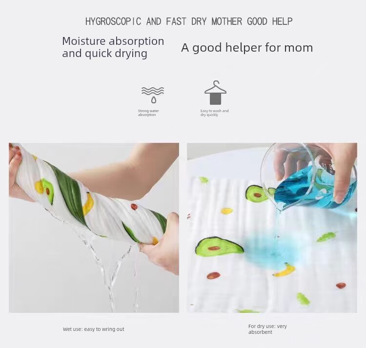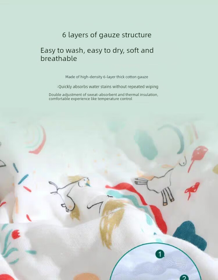 Baby six-layer bath towel gauze newborn blanket baby absorbent bath towel pure cotton newborn super soft A01 Fruit Party 1.5x2m