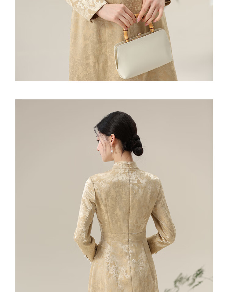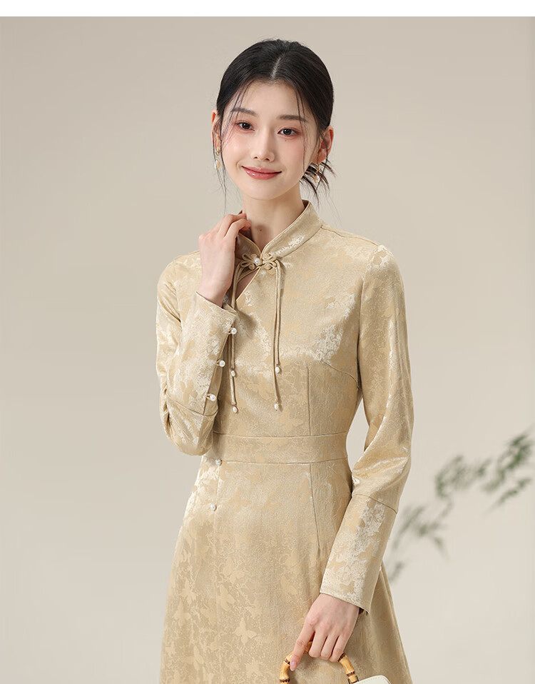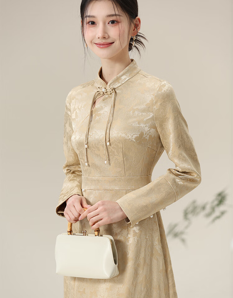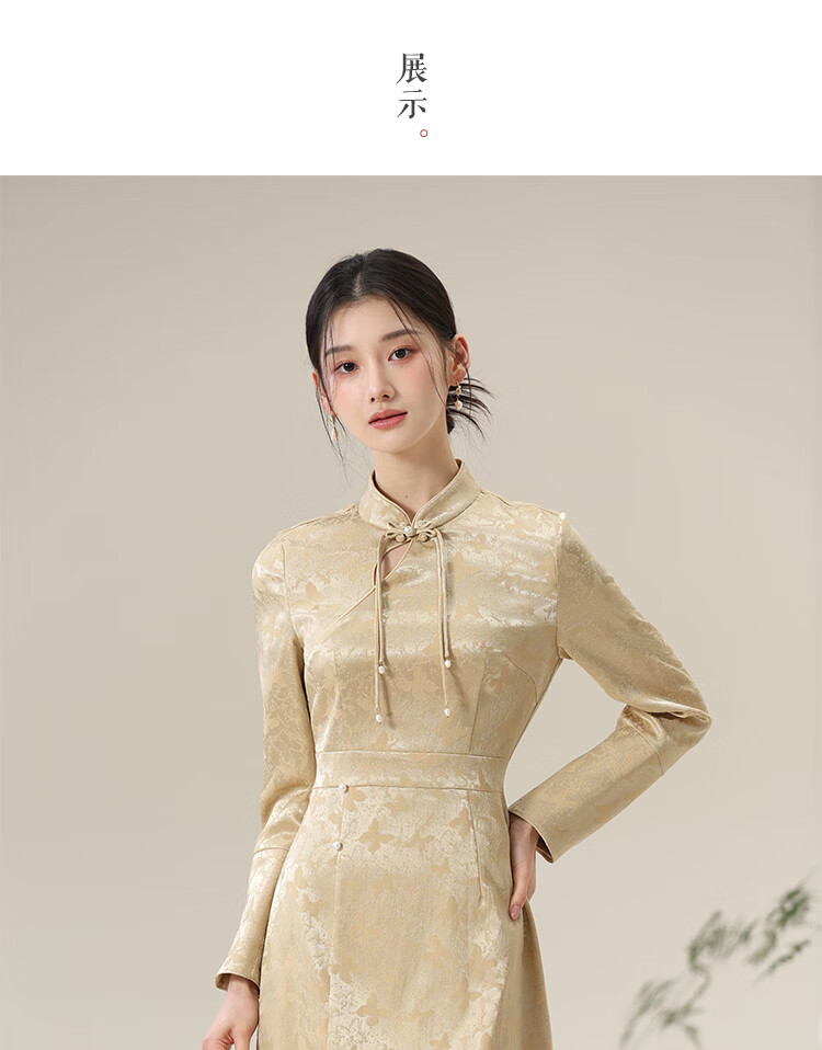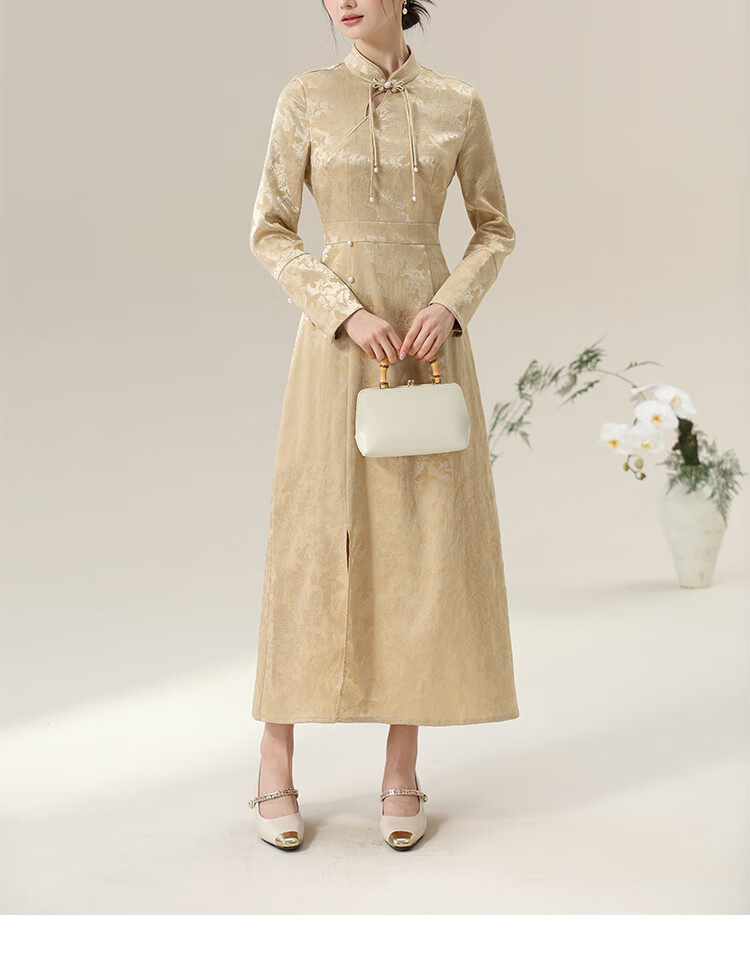 Chuchan Clothing Improved Cheongsam Women's Autumn 2025 New Long Sleeve Waist Temperament Noble Brown Slim Chinese Style National Style Dress Brown XL Ready in Stock