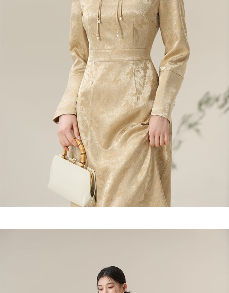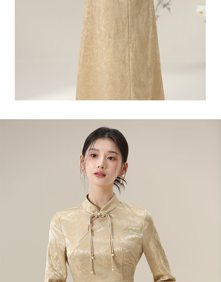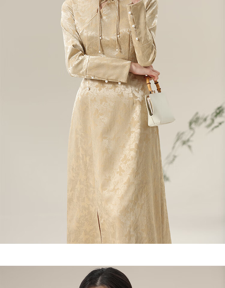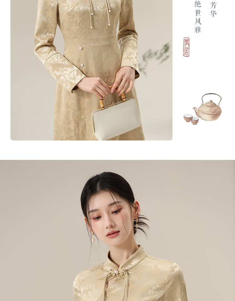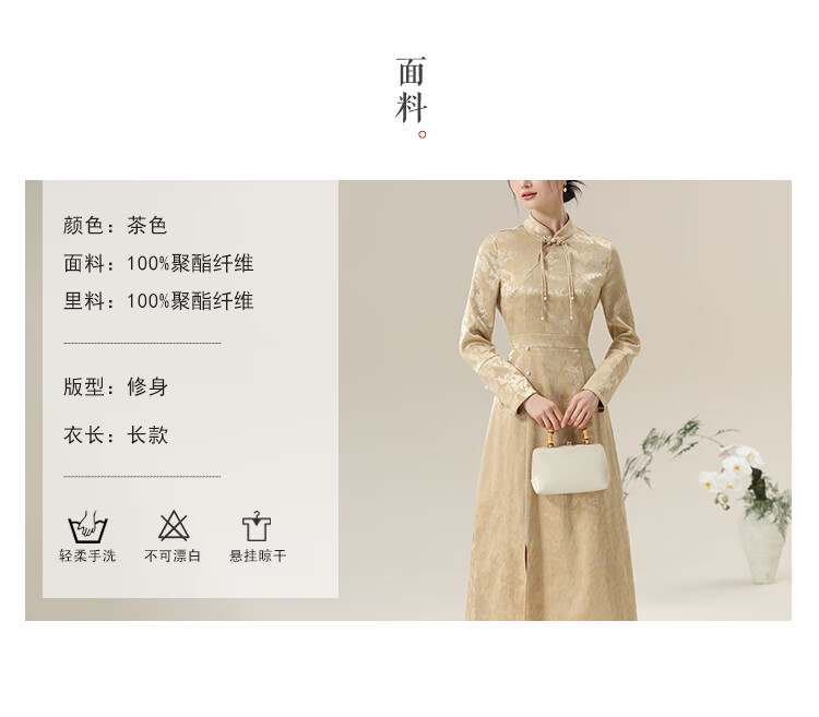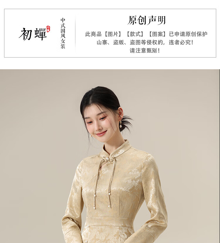 Chuchan Clothing Improved Cheongsam Women's Autumn 2025 New Long Sleeve Waist Temperament Noble Brown Slim Chinese Style National Style Dress Brown XL Ready in Stock